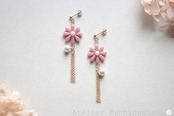 【受注製作】レジンアート お花とコットンパールとフリンジのピアス〈祝福されしもの〉