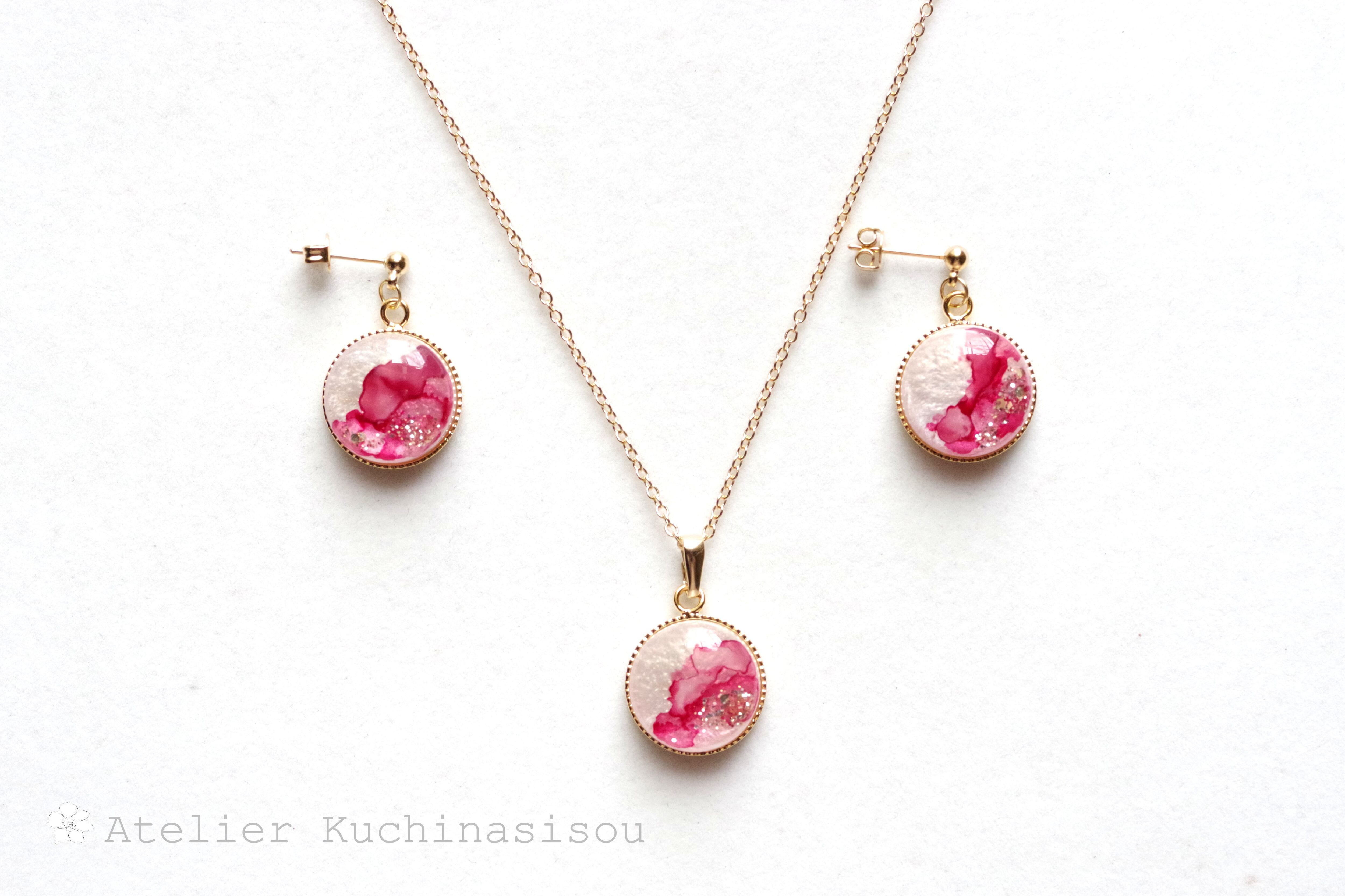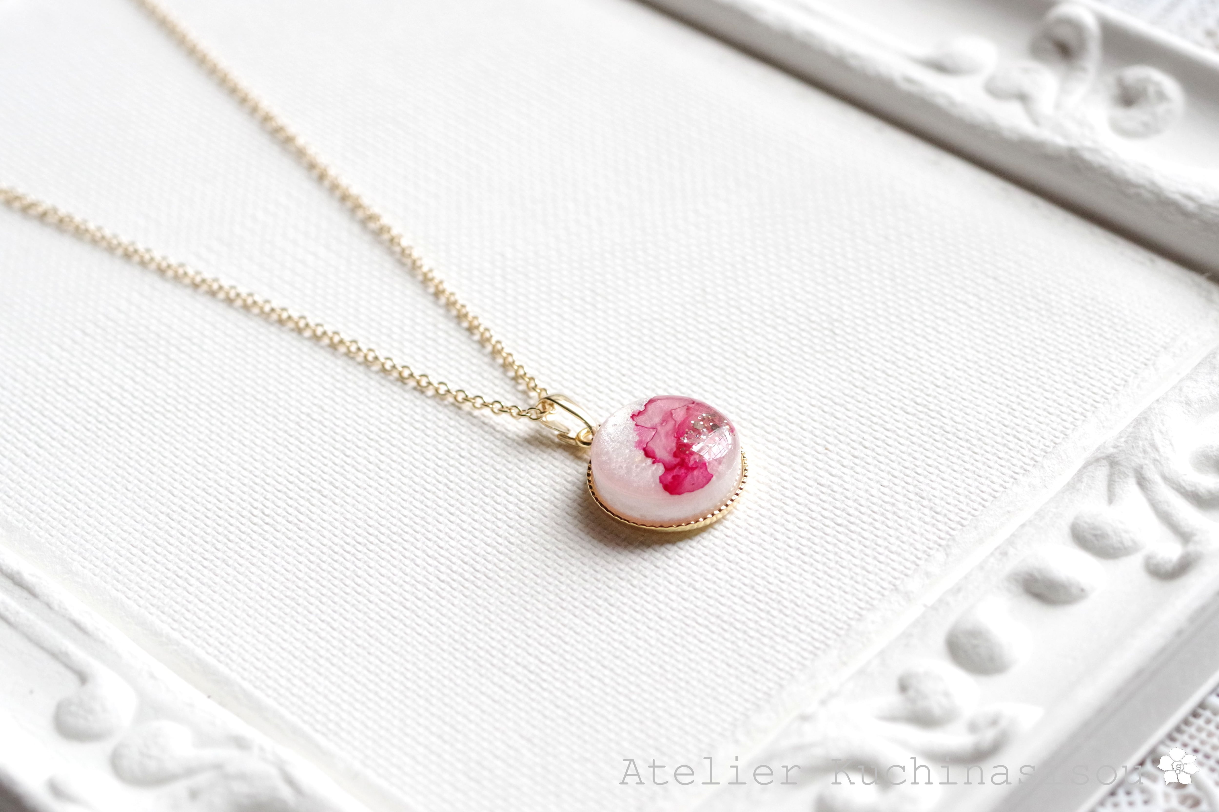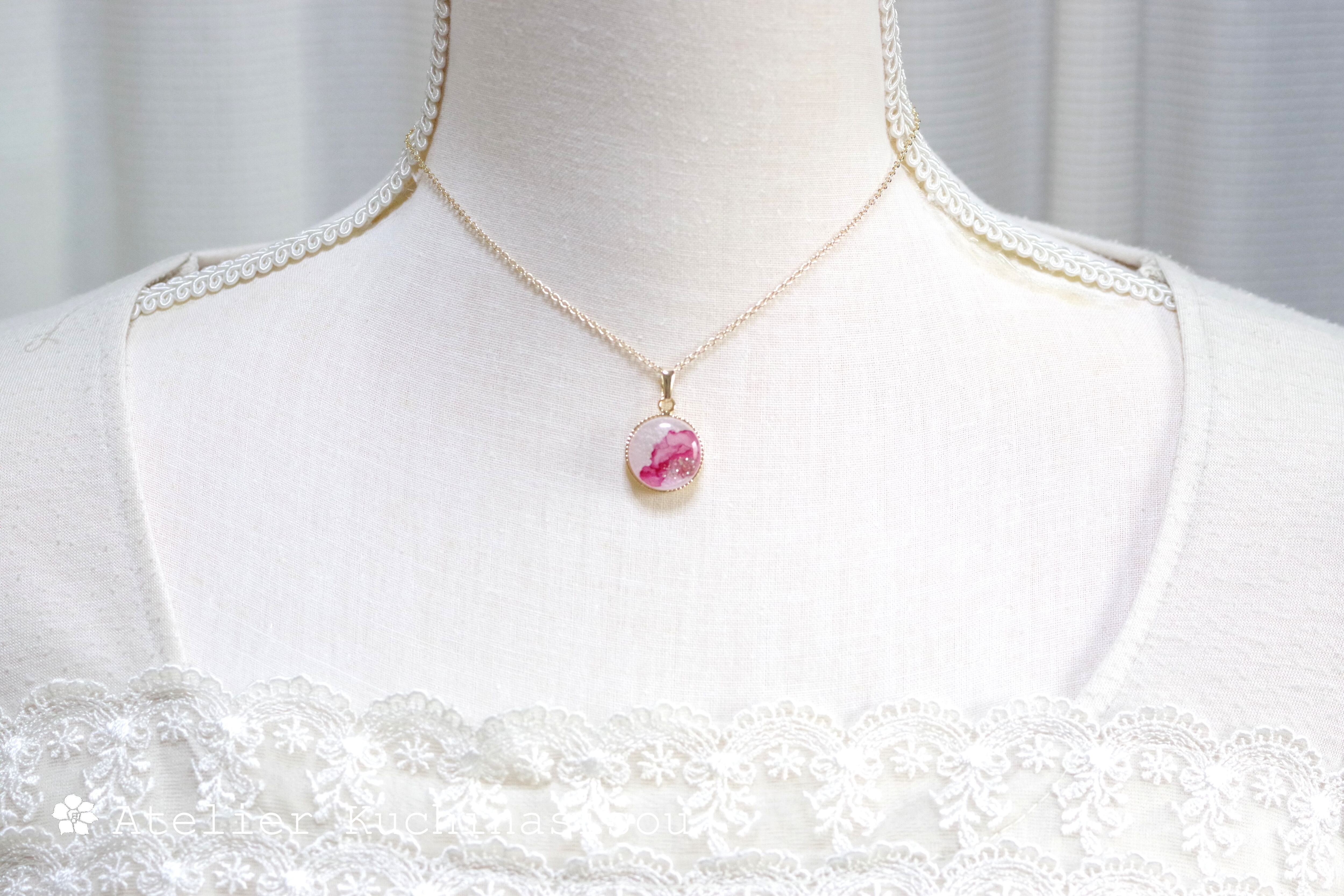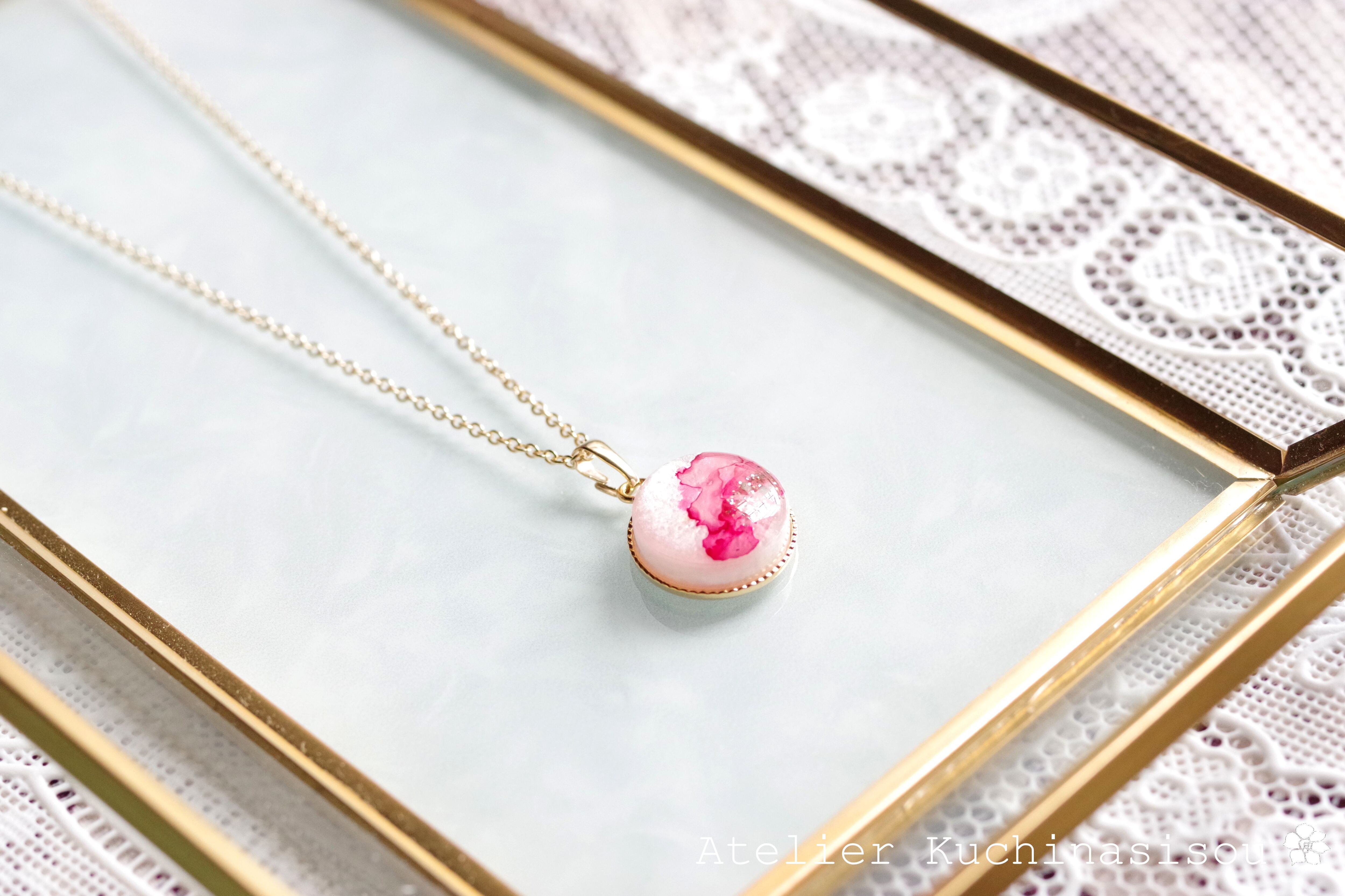 レジンアート ラウンドペンダント〈花衣〉