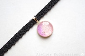 【受注製作】レジンアート ラウンドモチーフとタティングレースとベルベットリボンのチョーカー〈黄昏花〉