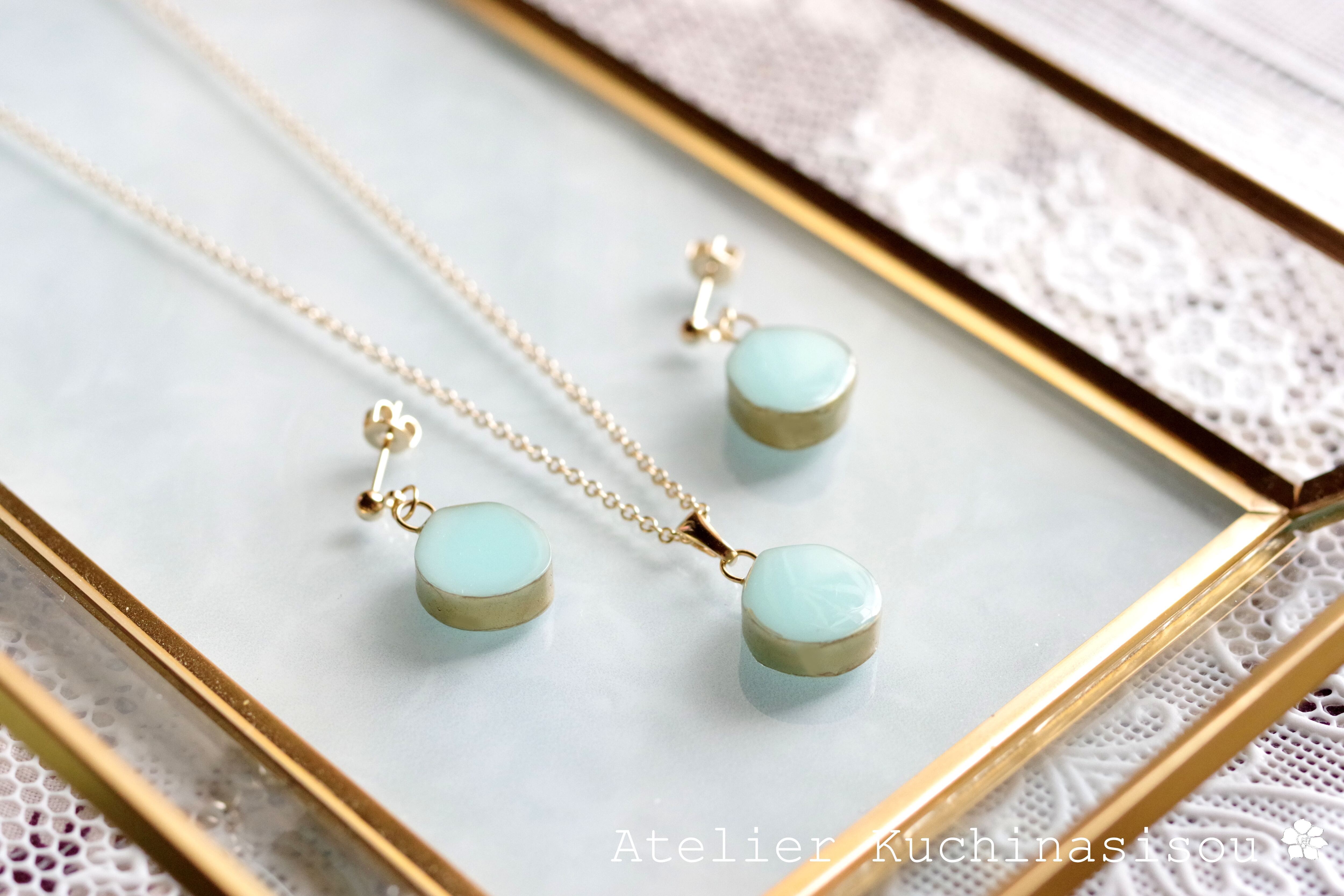 レジンで金彩風のピアスを作りました♪