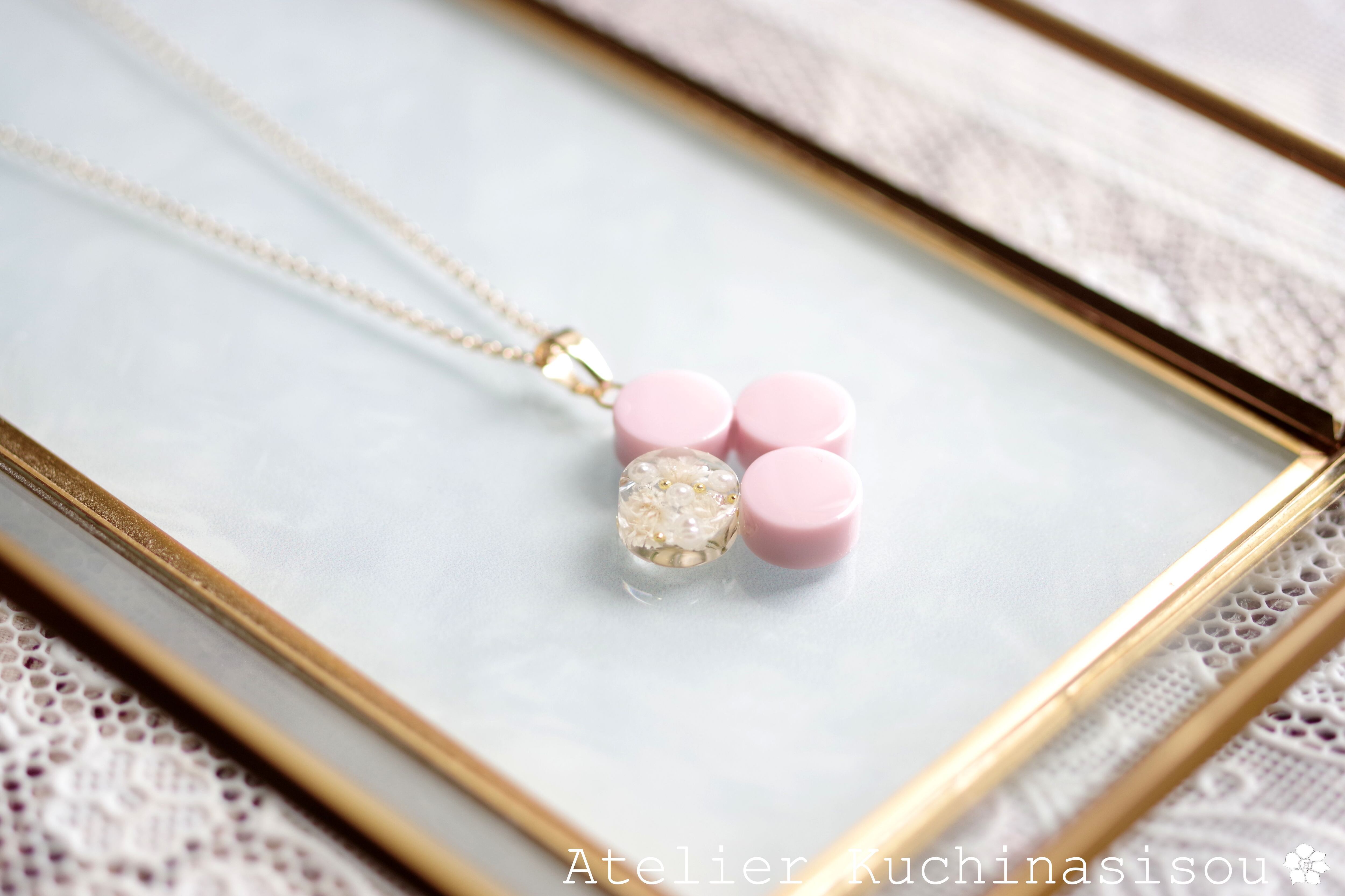 レジンアート 丸を連ねてペンダント〈花の便り〉