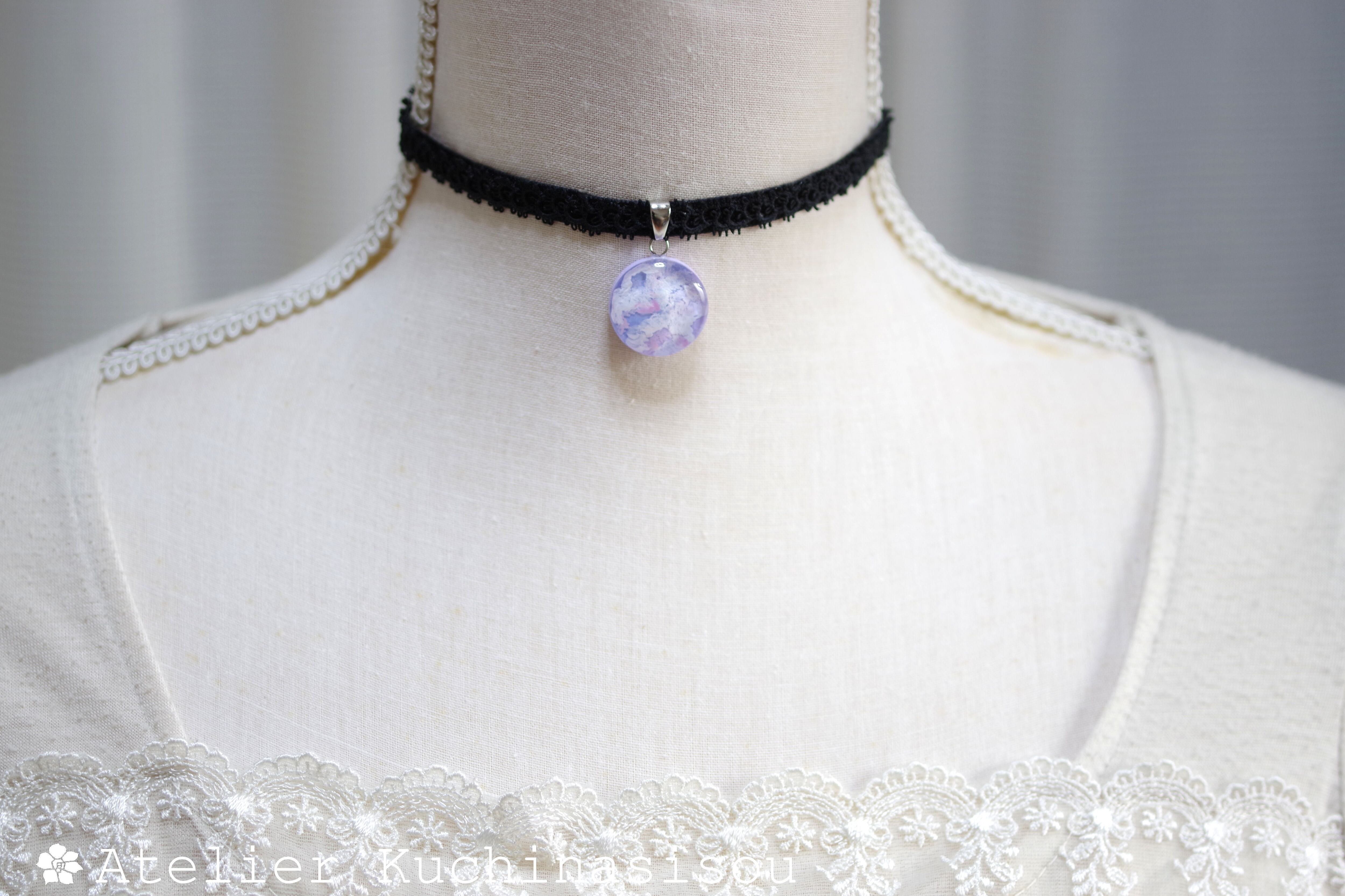 【受注製作】レジンアート ラウンドモチーフとタティングレースとベルベットリボンのチョーカー〈紫雲②〉20㎜
