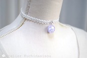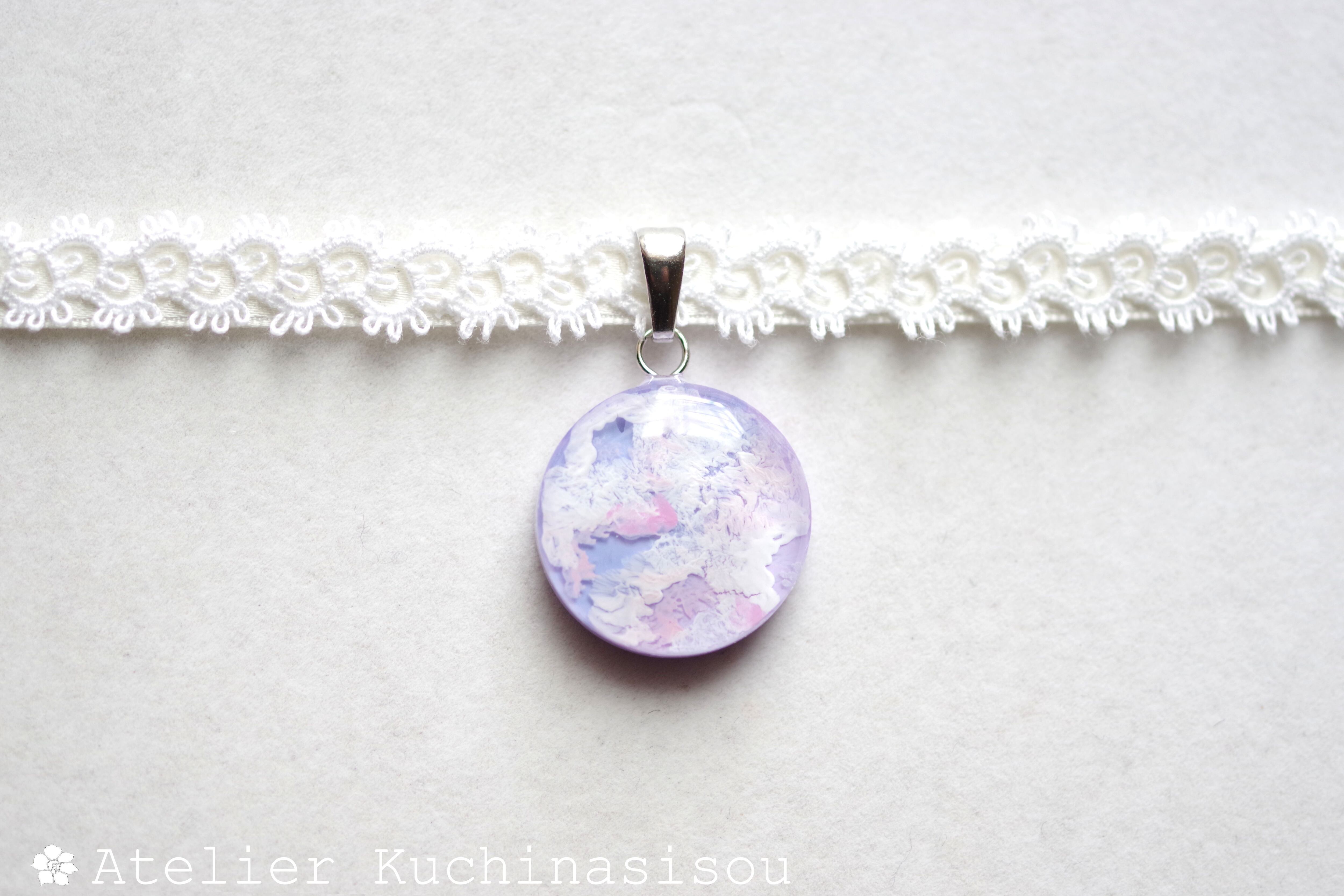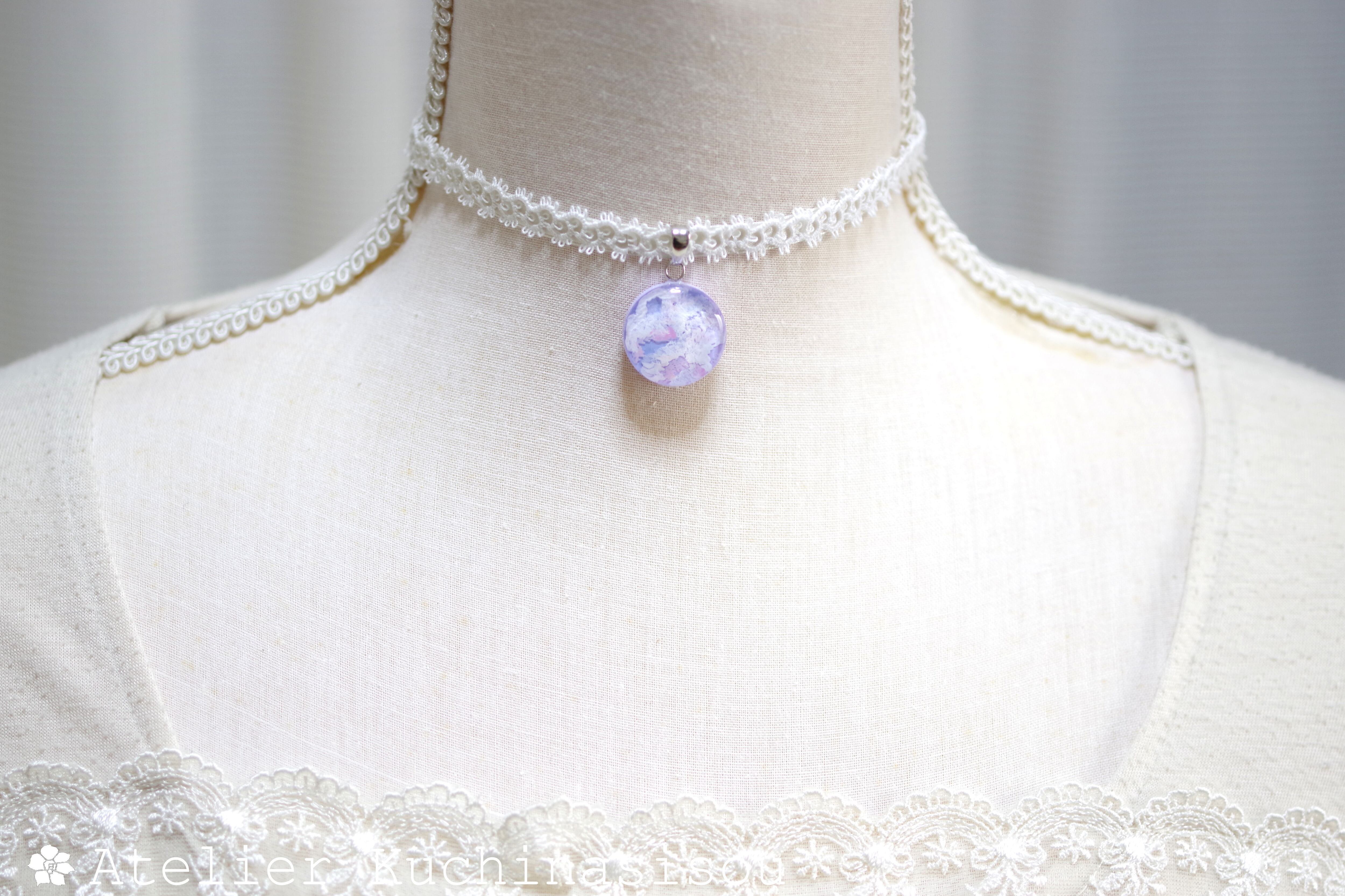 【受注製作】レジンアート ラウンドモチーフとタティングレースとサテンリボンのチョーカー〈紫雲②〉20㎜