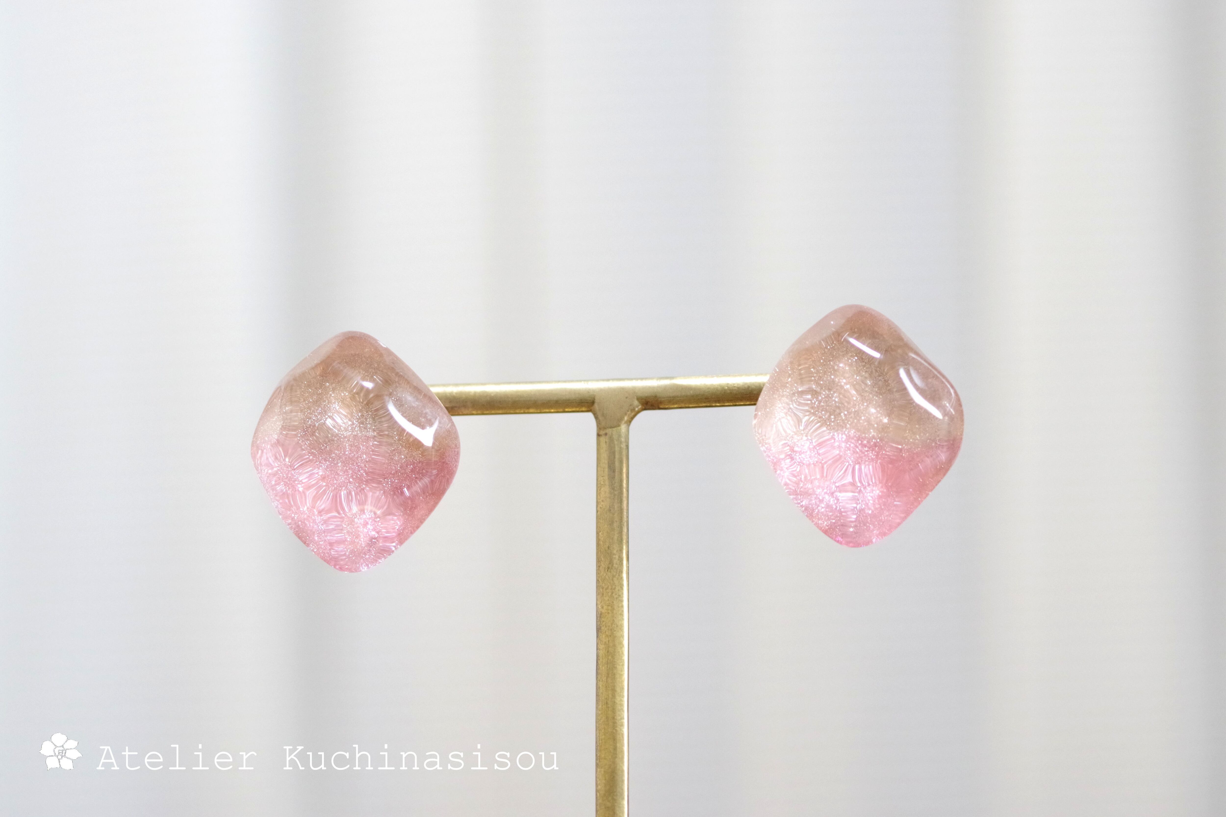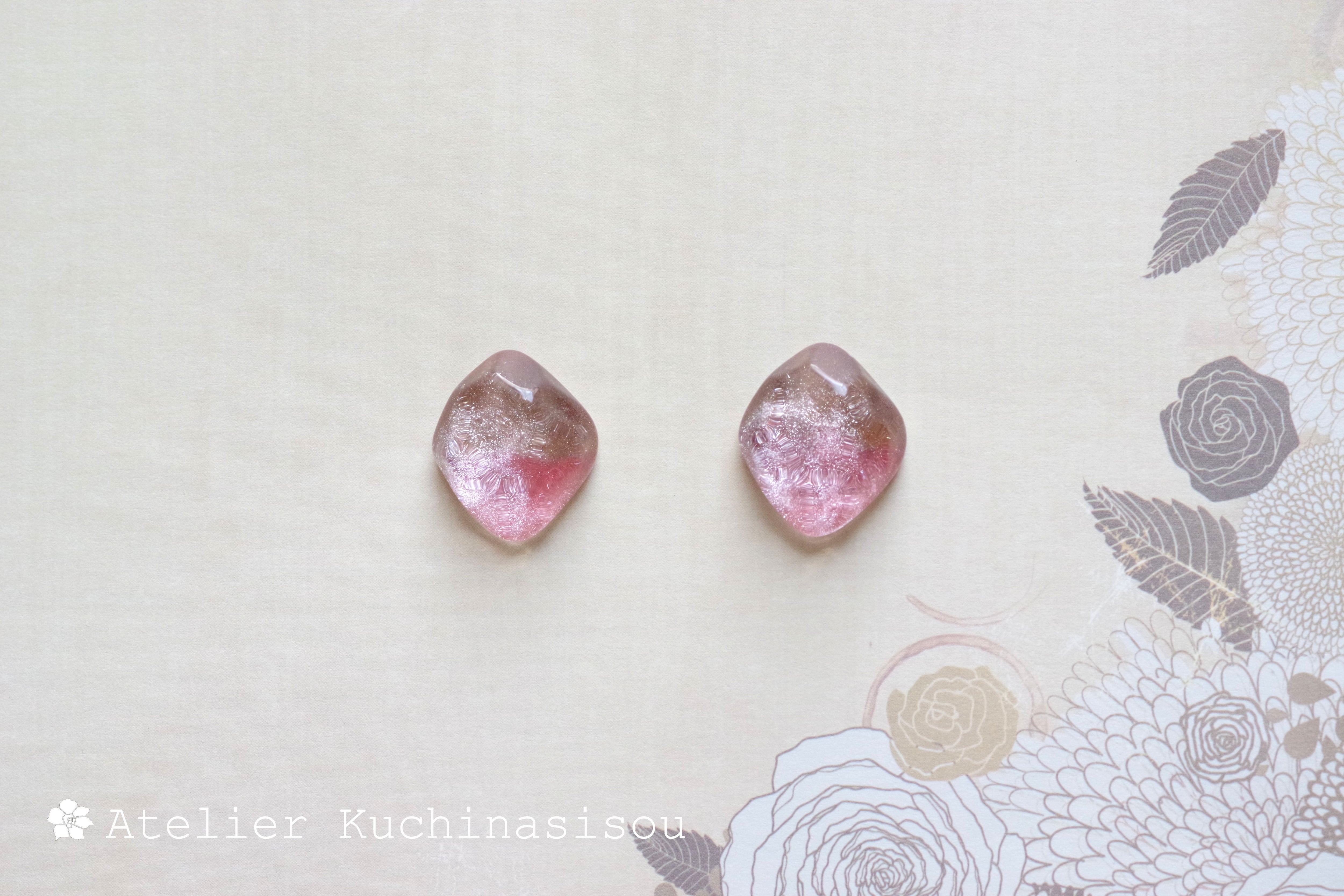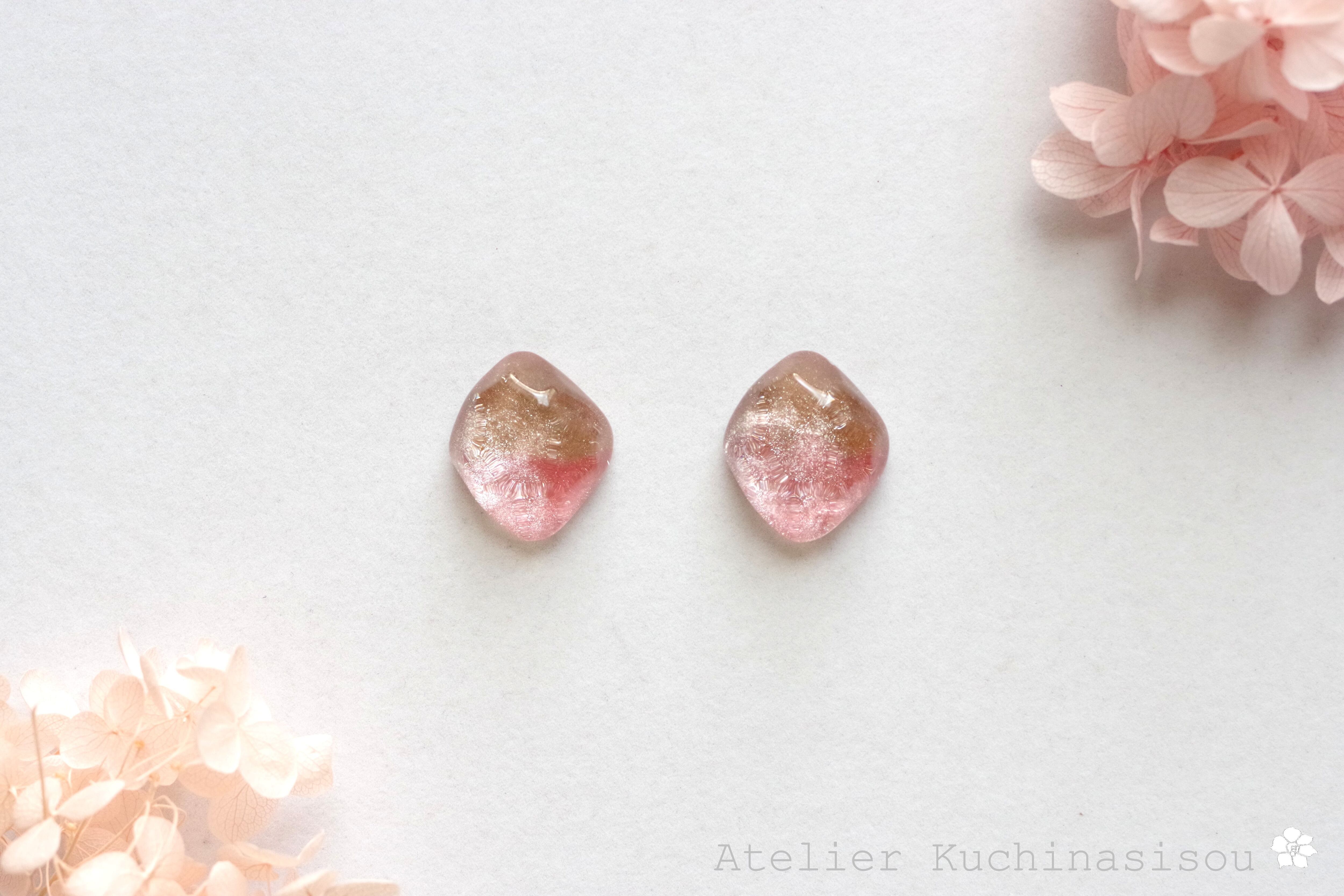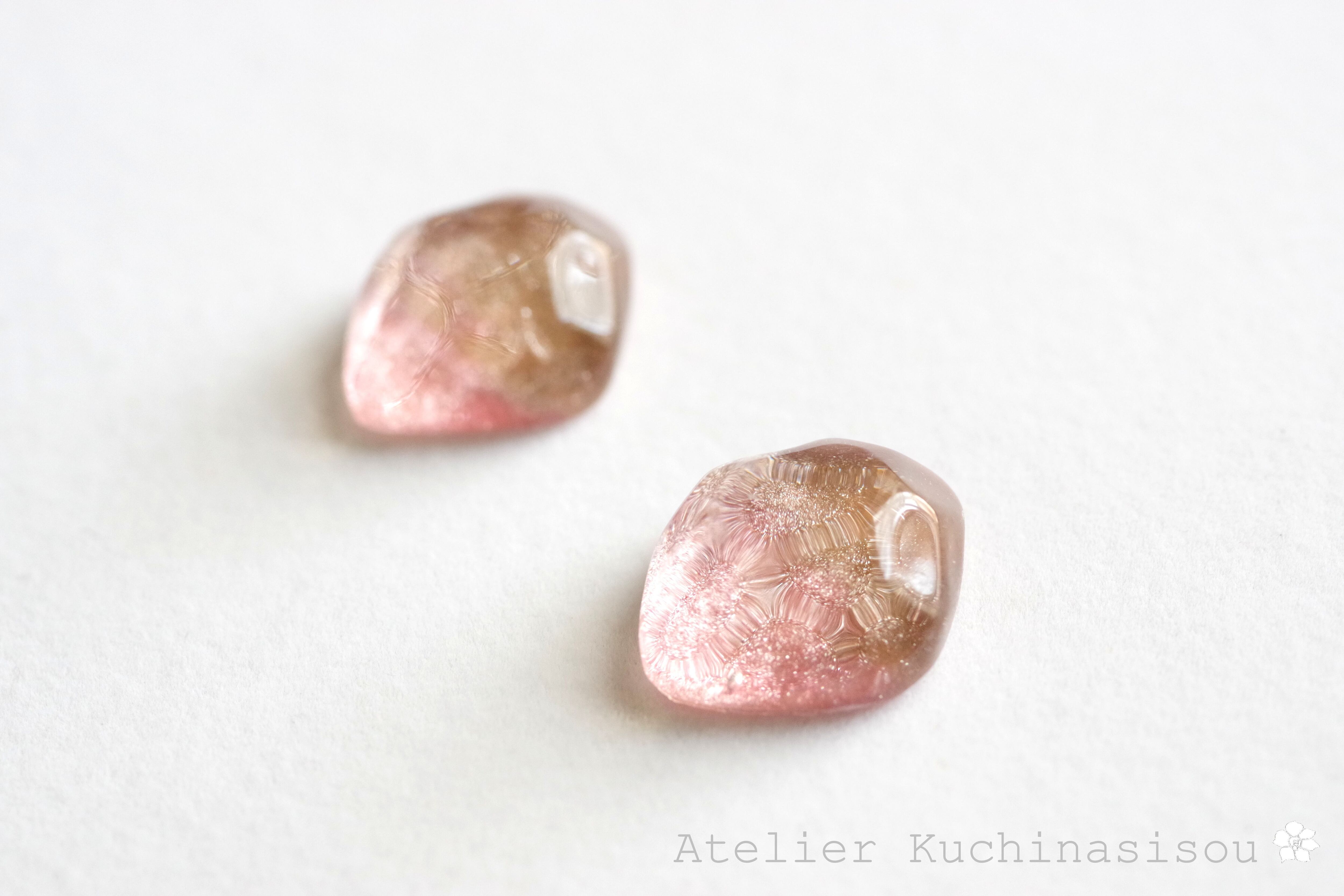 二種類のピンクが作る水面をのぞき込んだような、うららかなカラーリングが特徴のピアス。