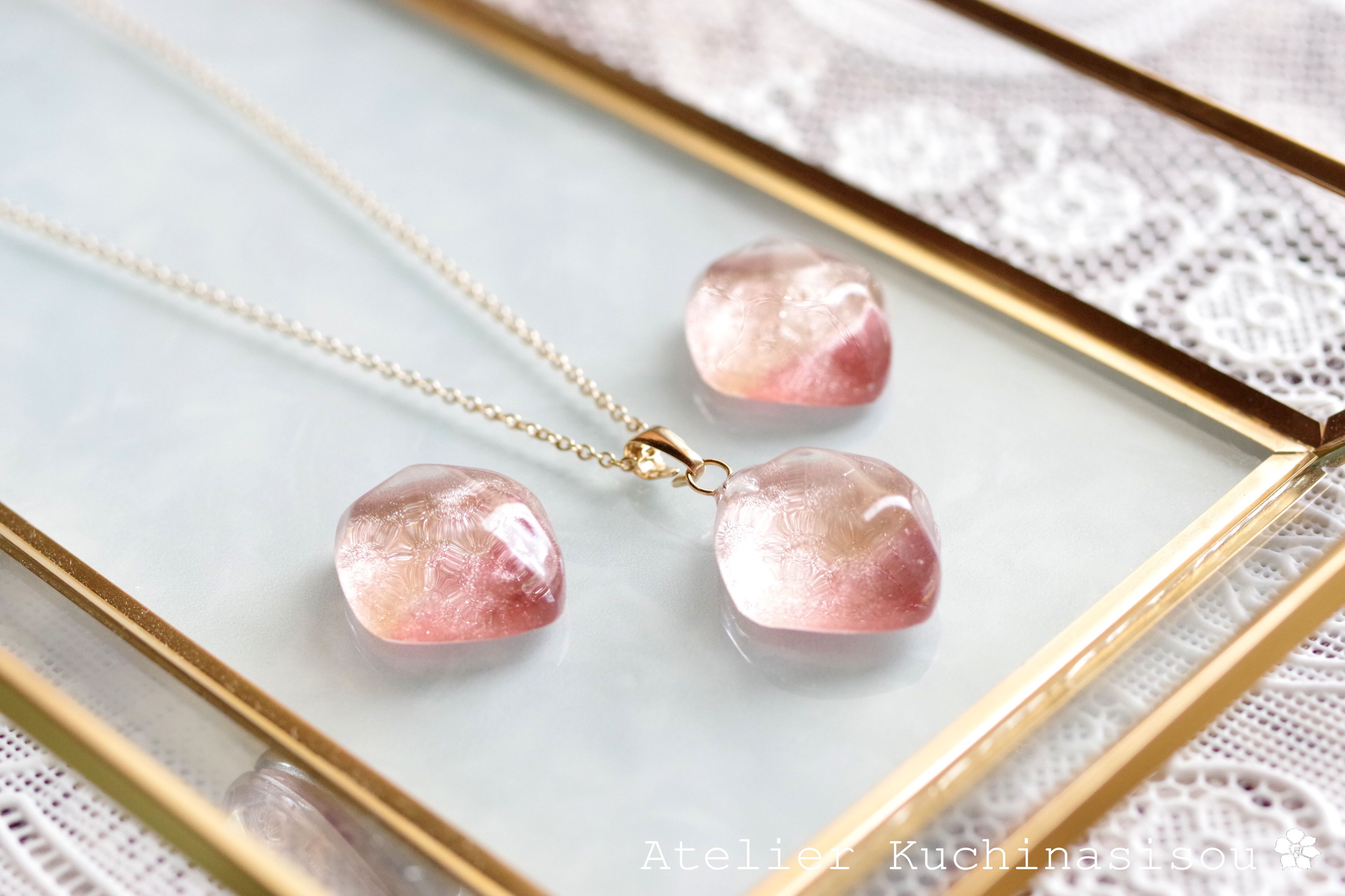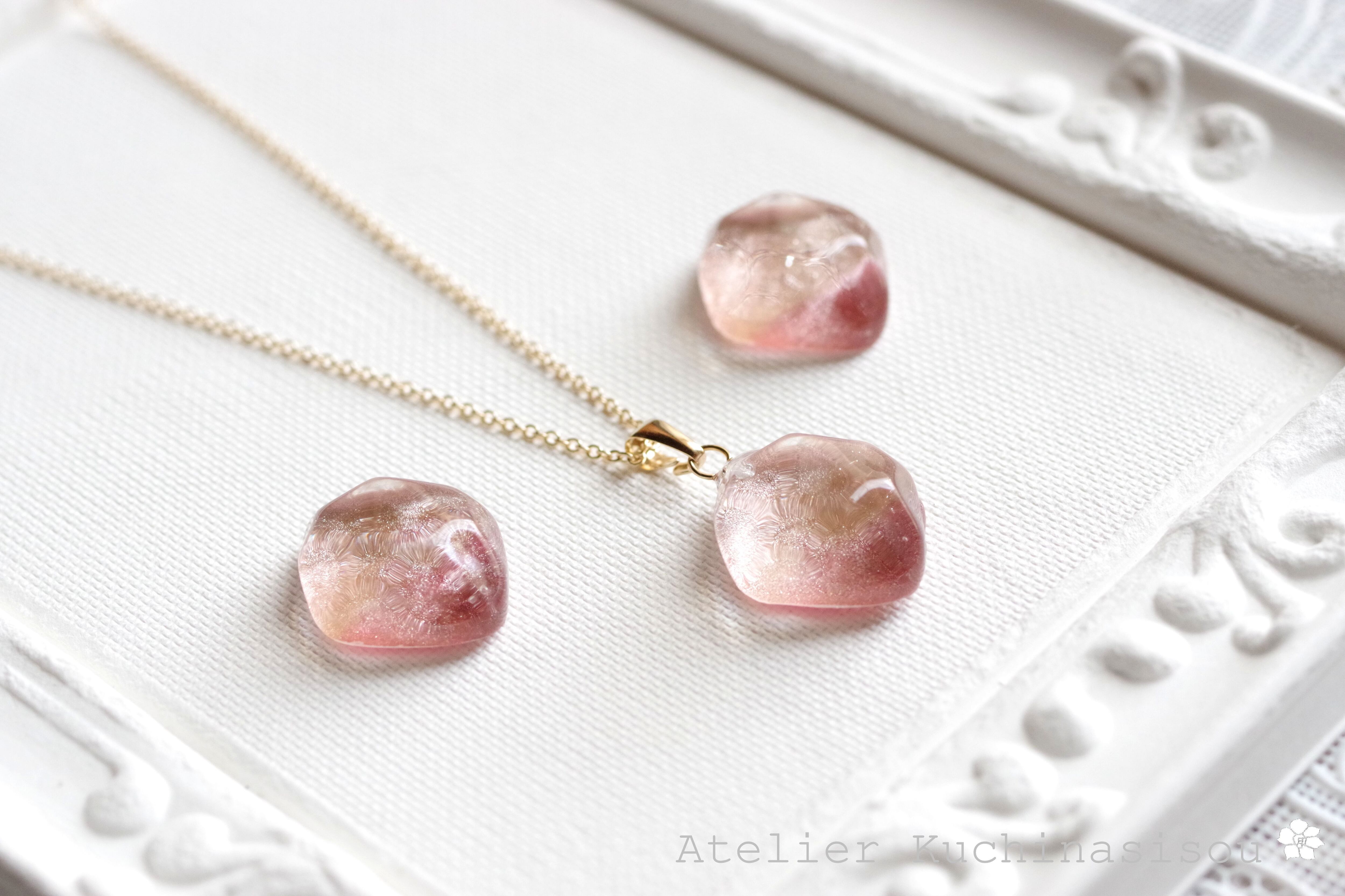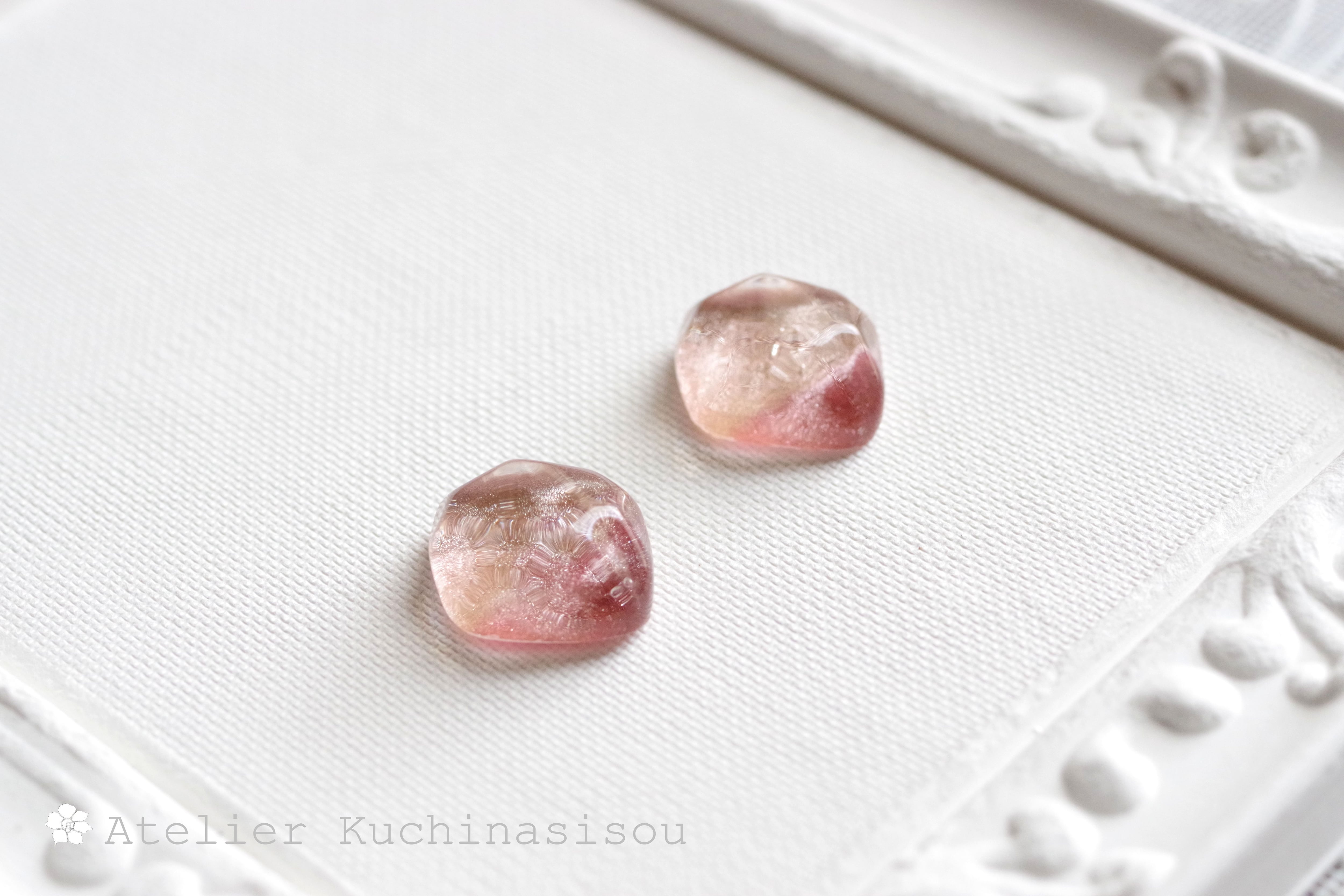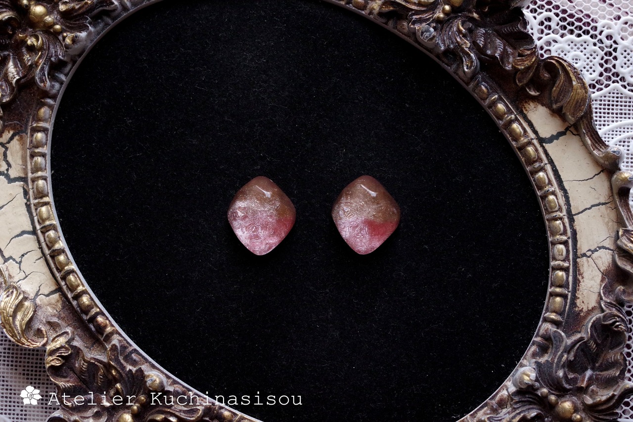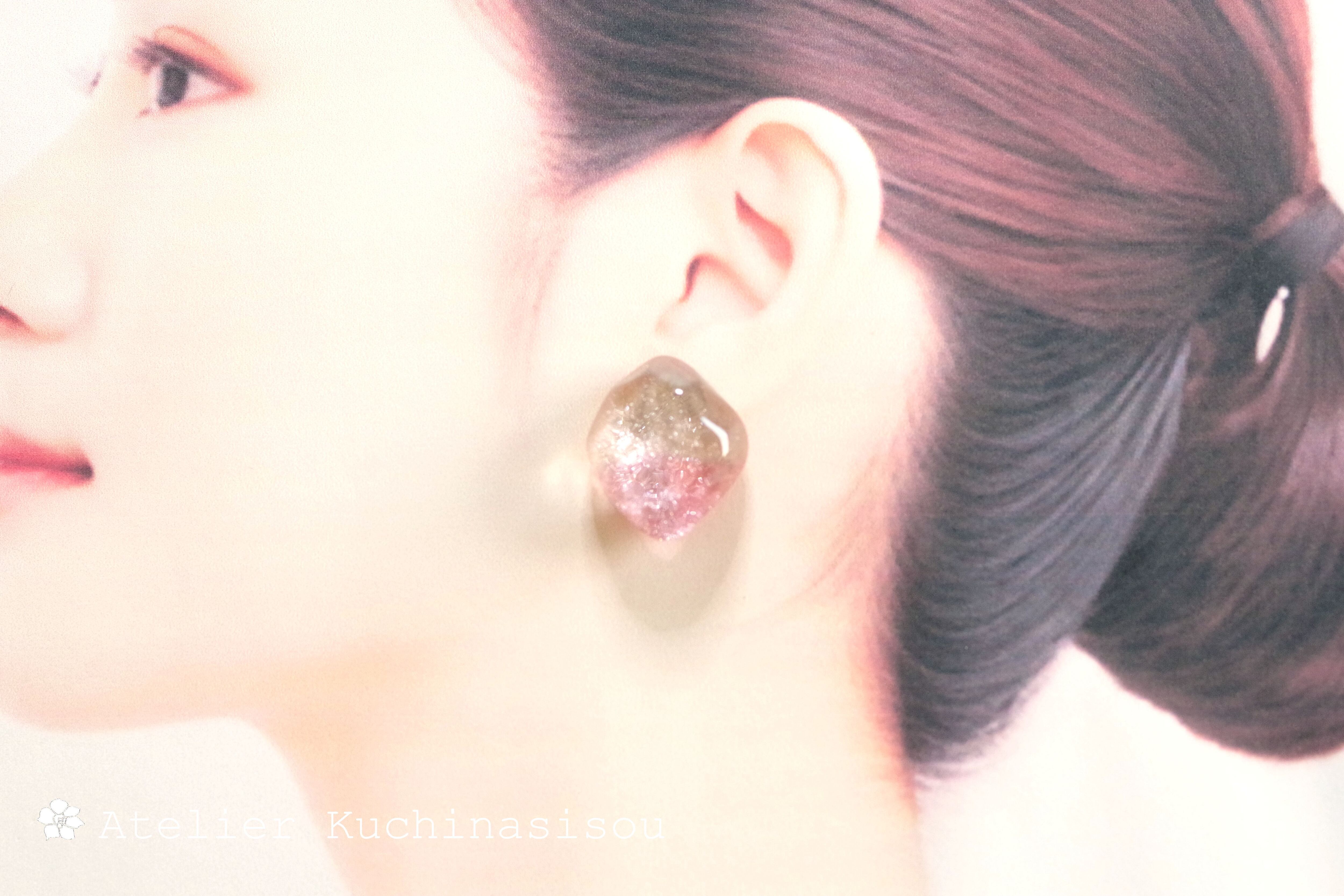 二種類のピンクが作る水面をのぞき込んだような、うららかなカラーリングが特徴のピアス。