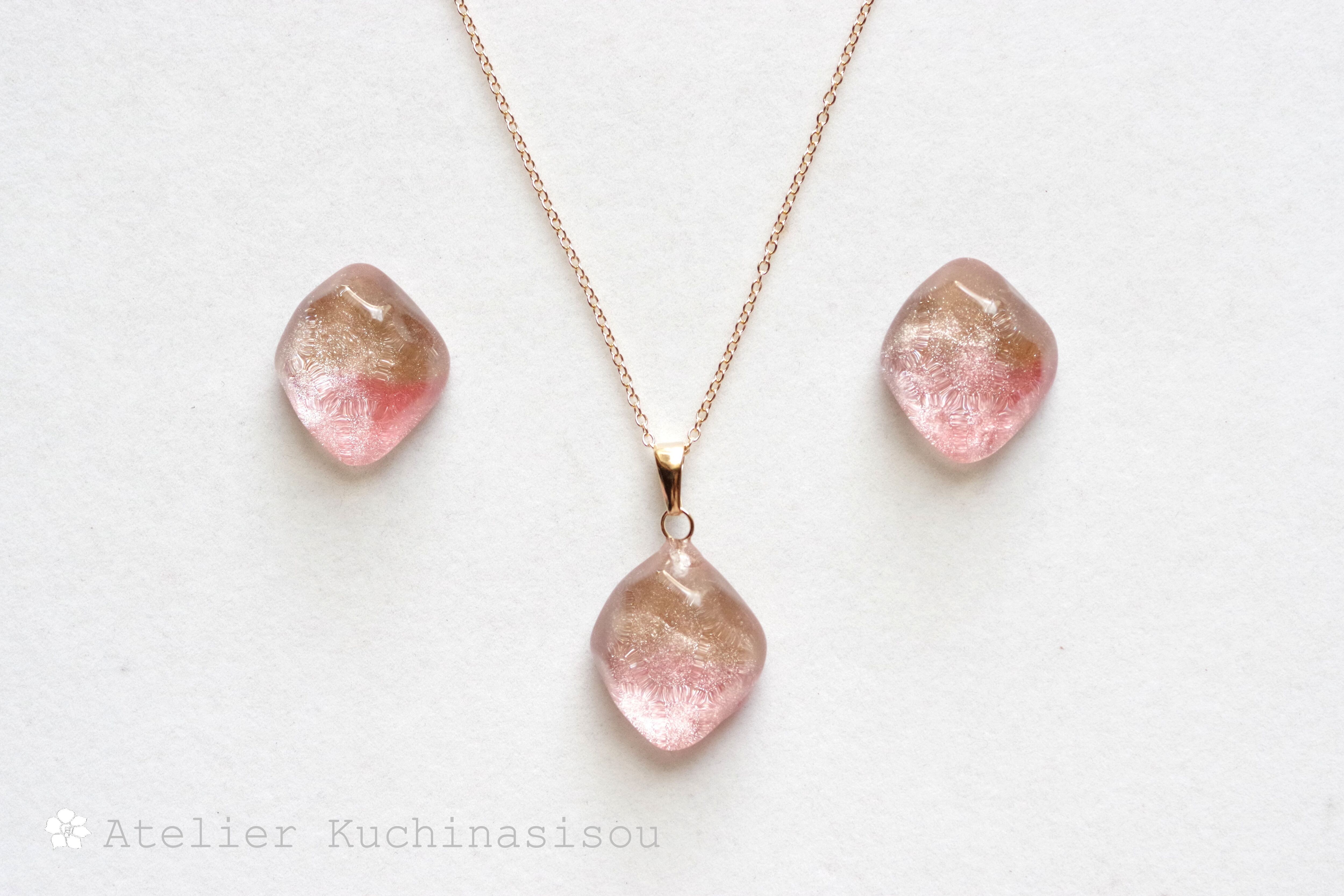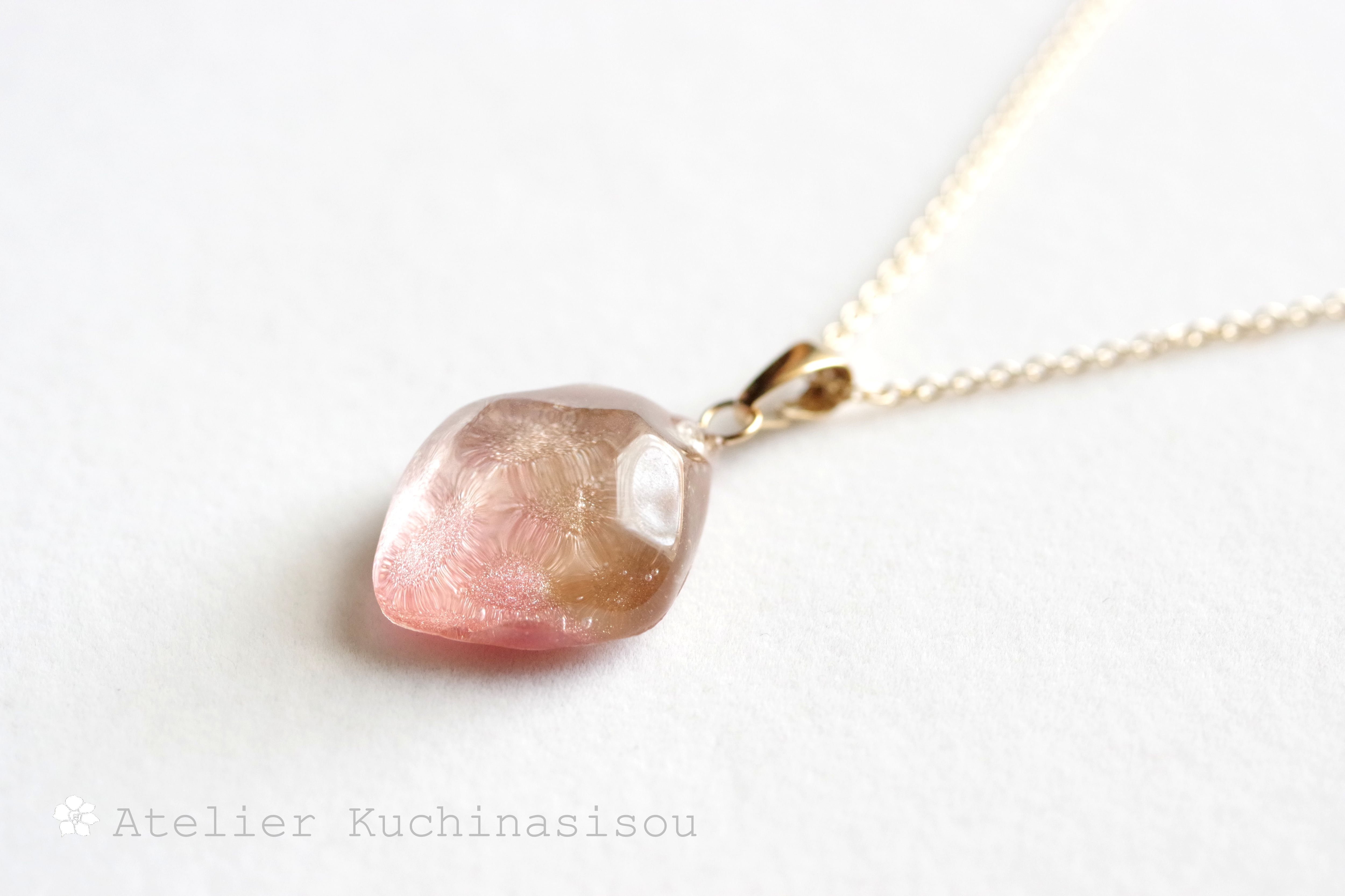 二種類のピンクが作る水面をのぞき込んだような、うららかなカラーリングが特徴のペンダント。
