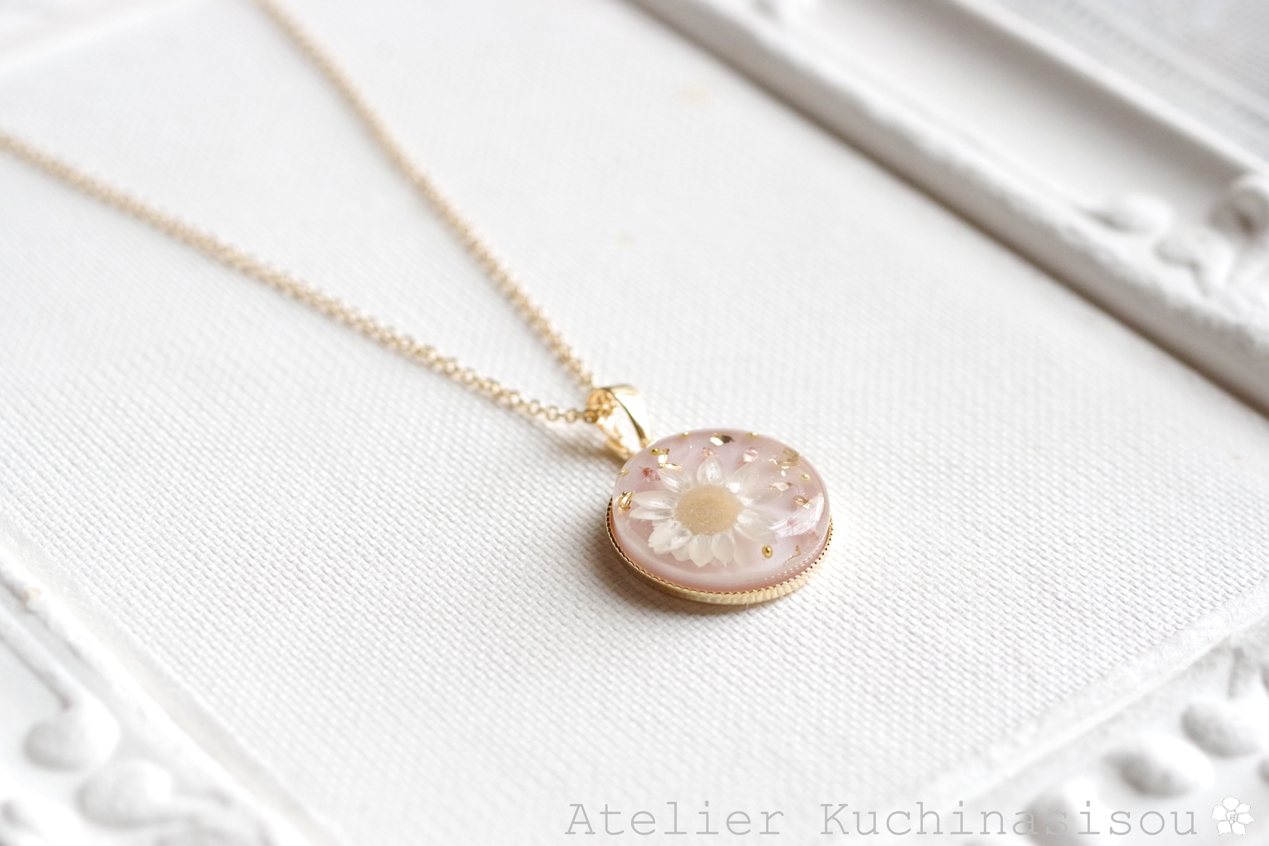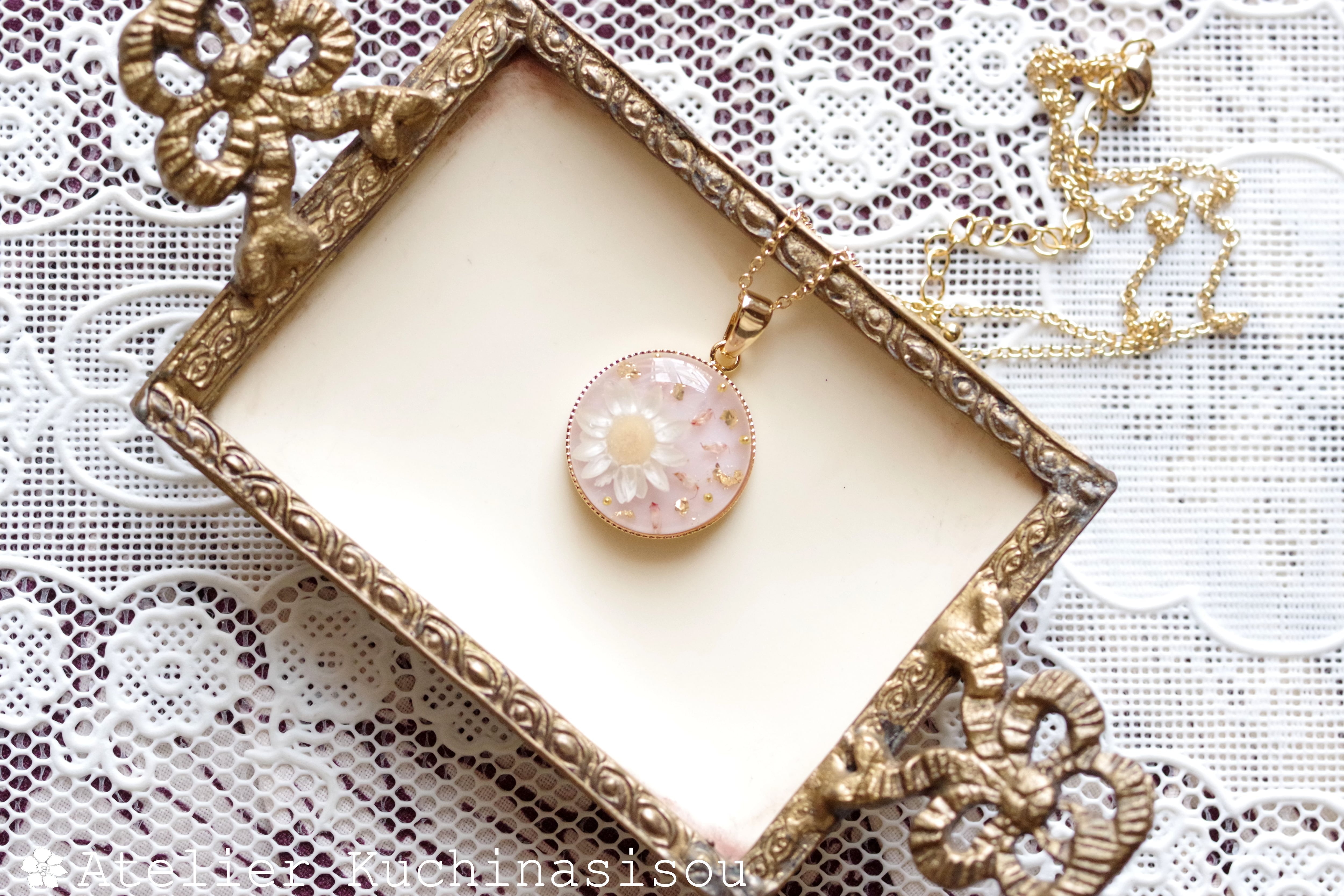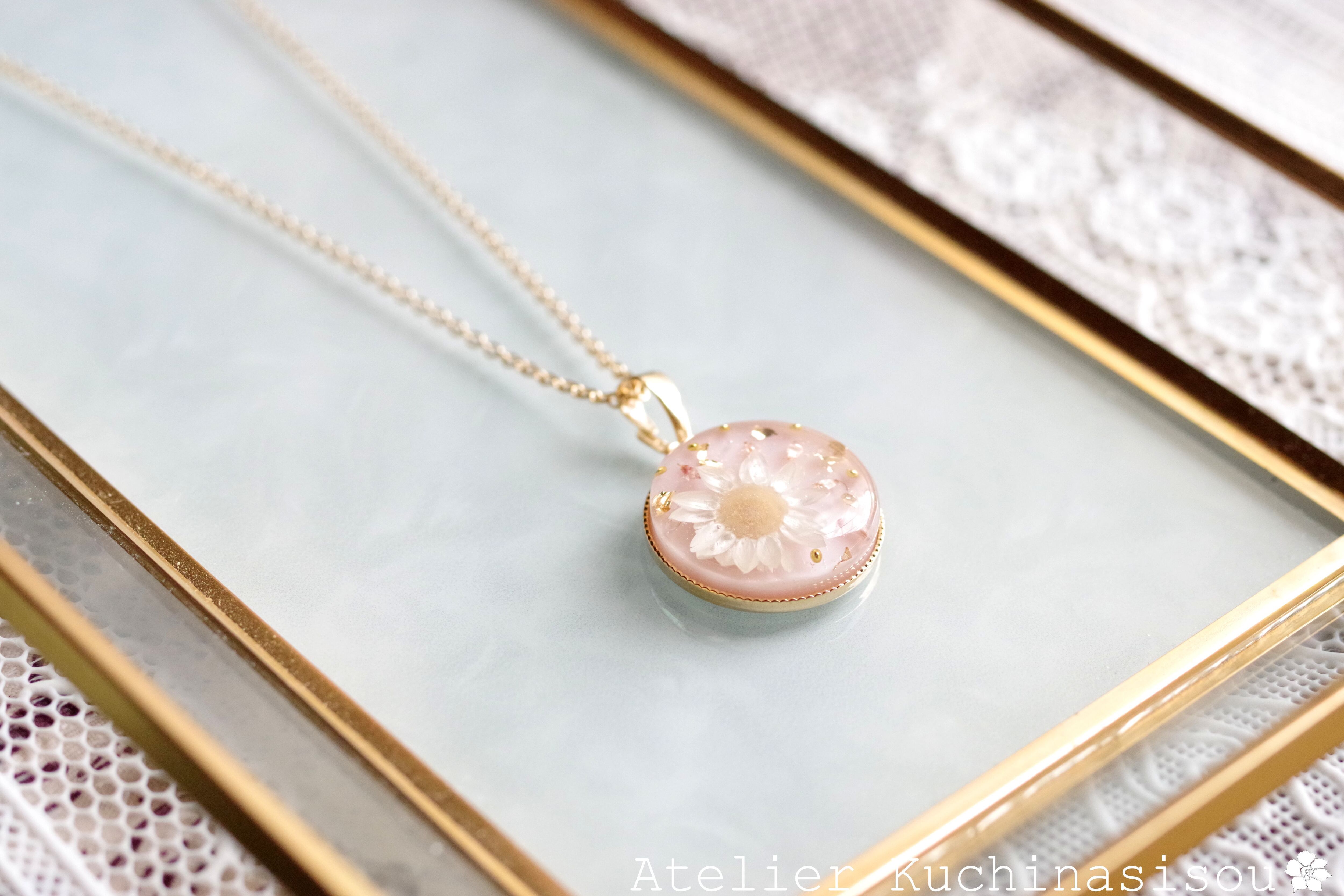 レジンアート ラウンドペンダント〈一輪の華やぎ〉