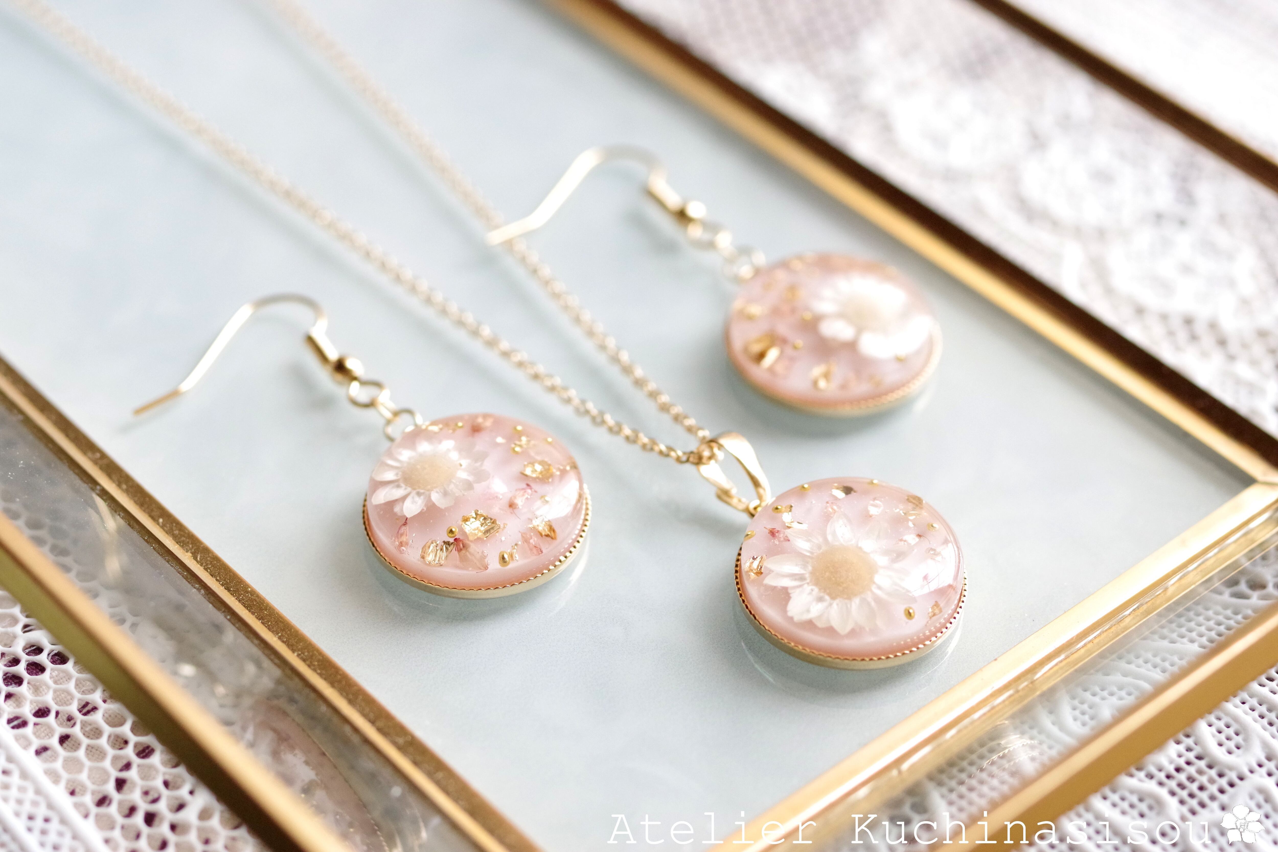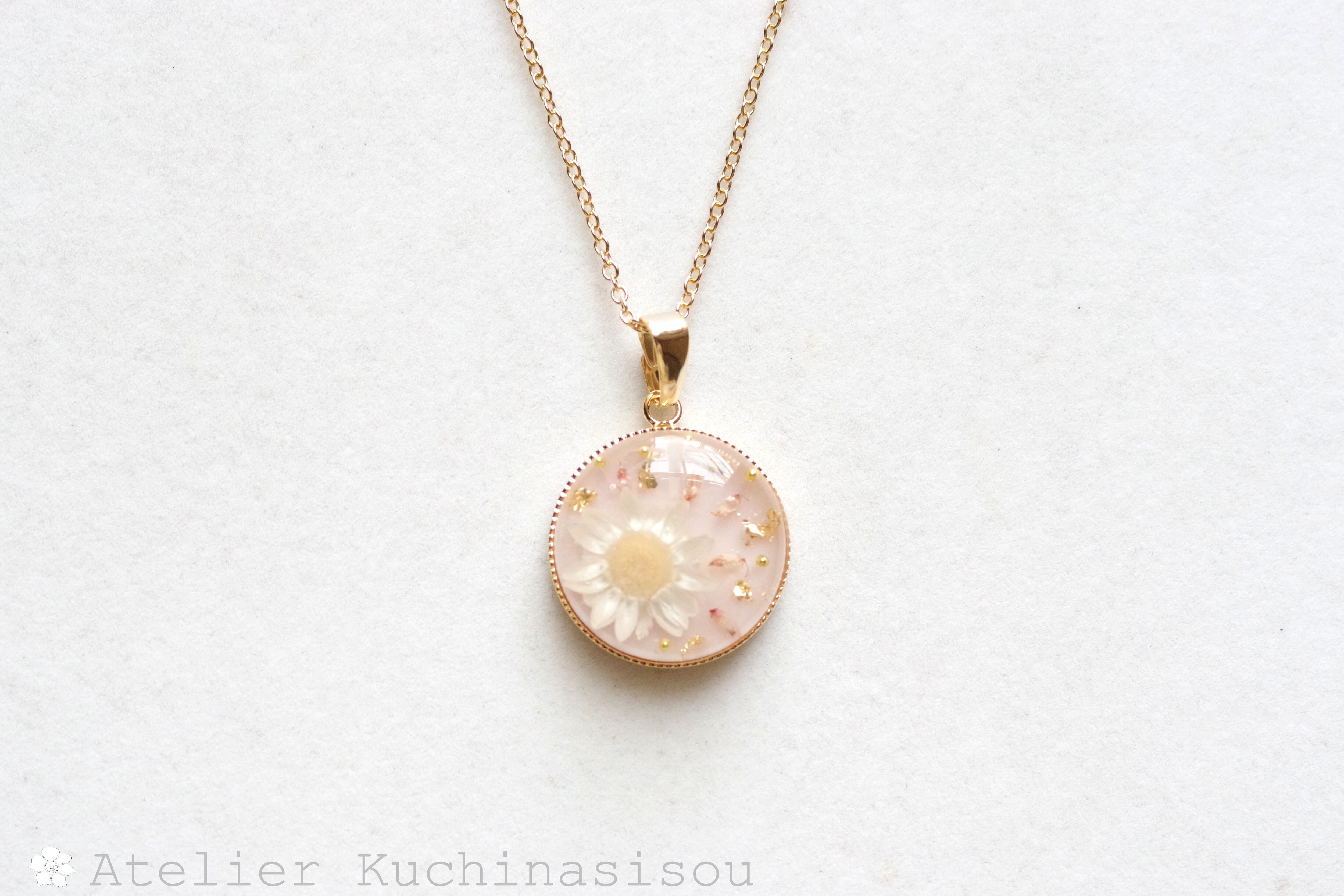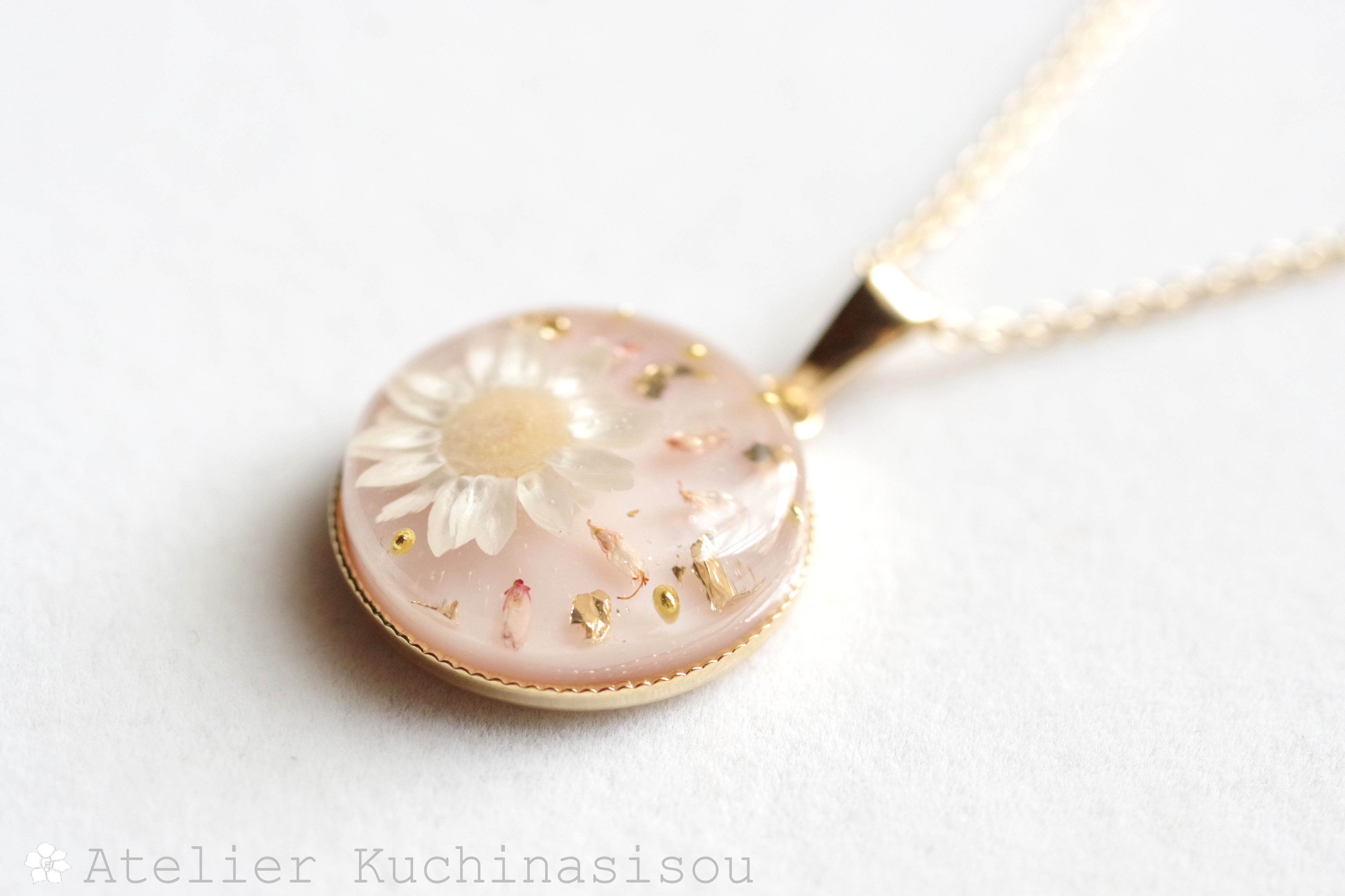 レジンアート ラウンドペンダント〈一輪の華やぎ〉