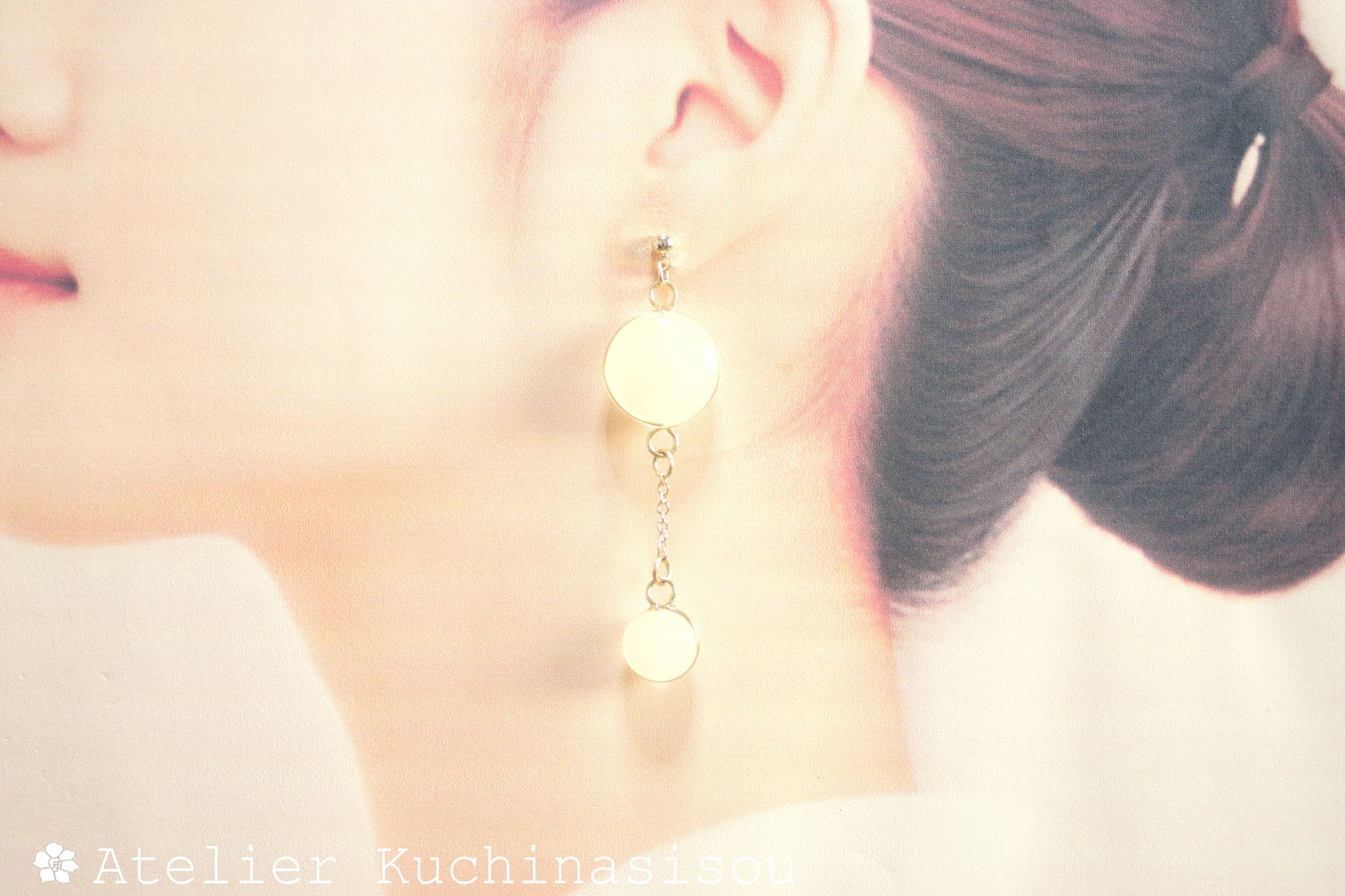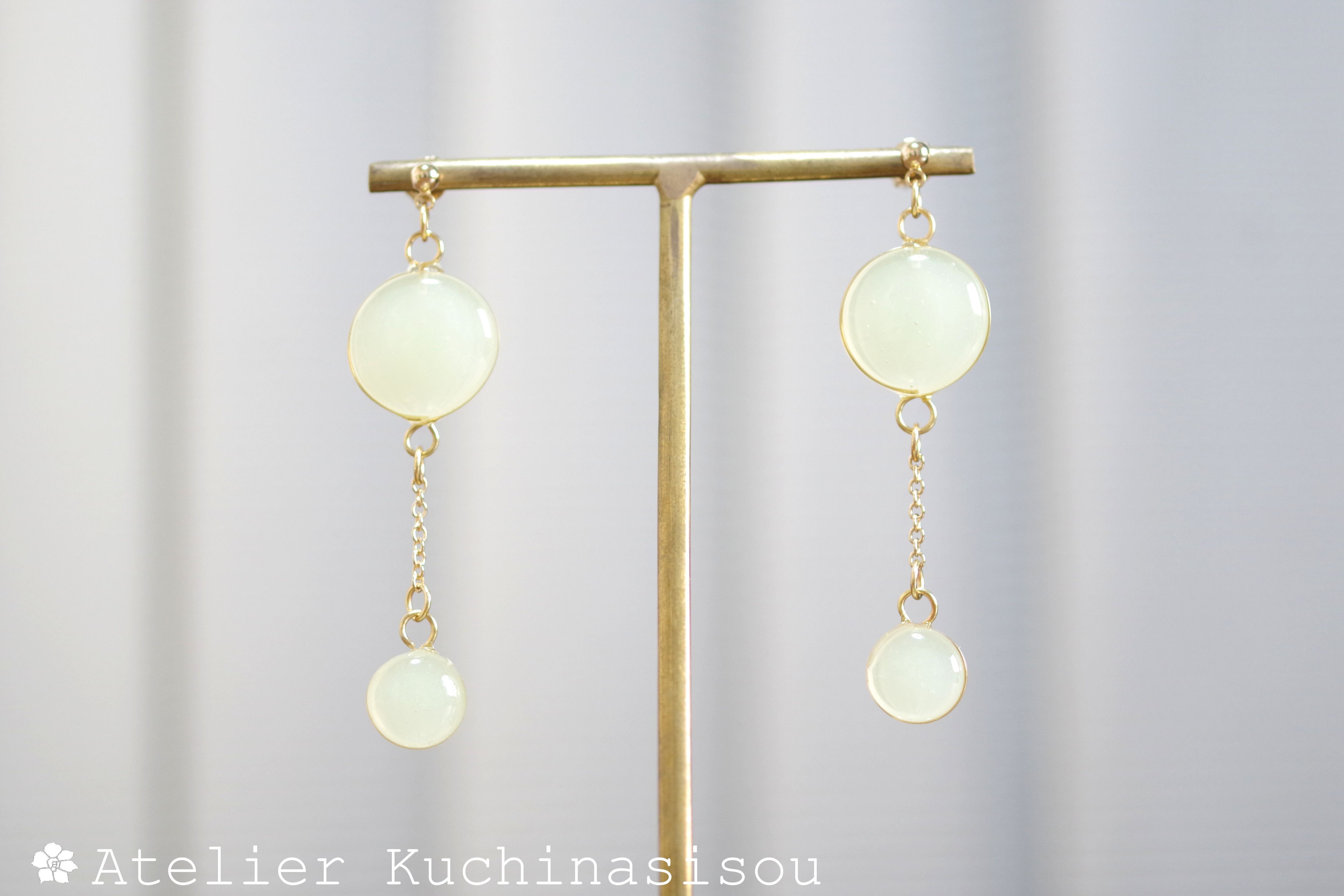 レジンアート 二粒の水滴ピアス〈月輪〉