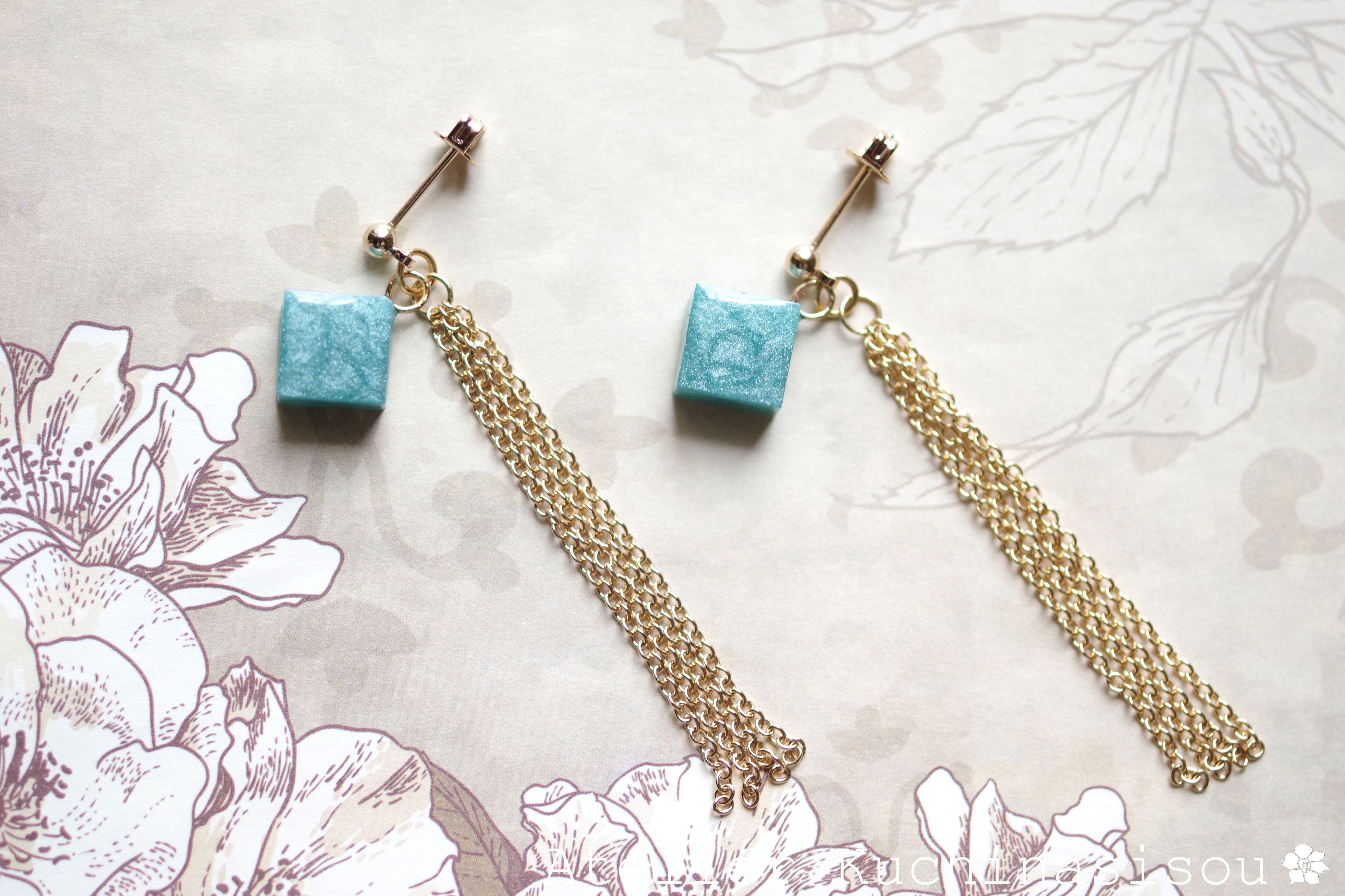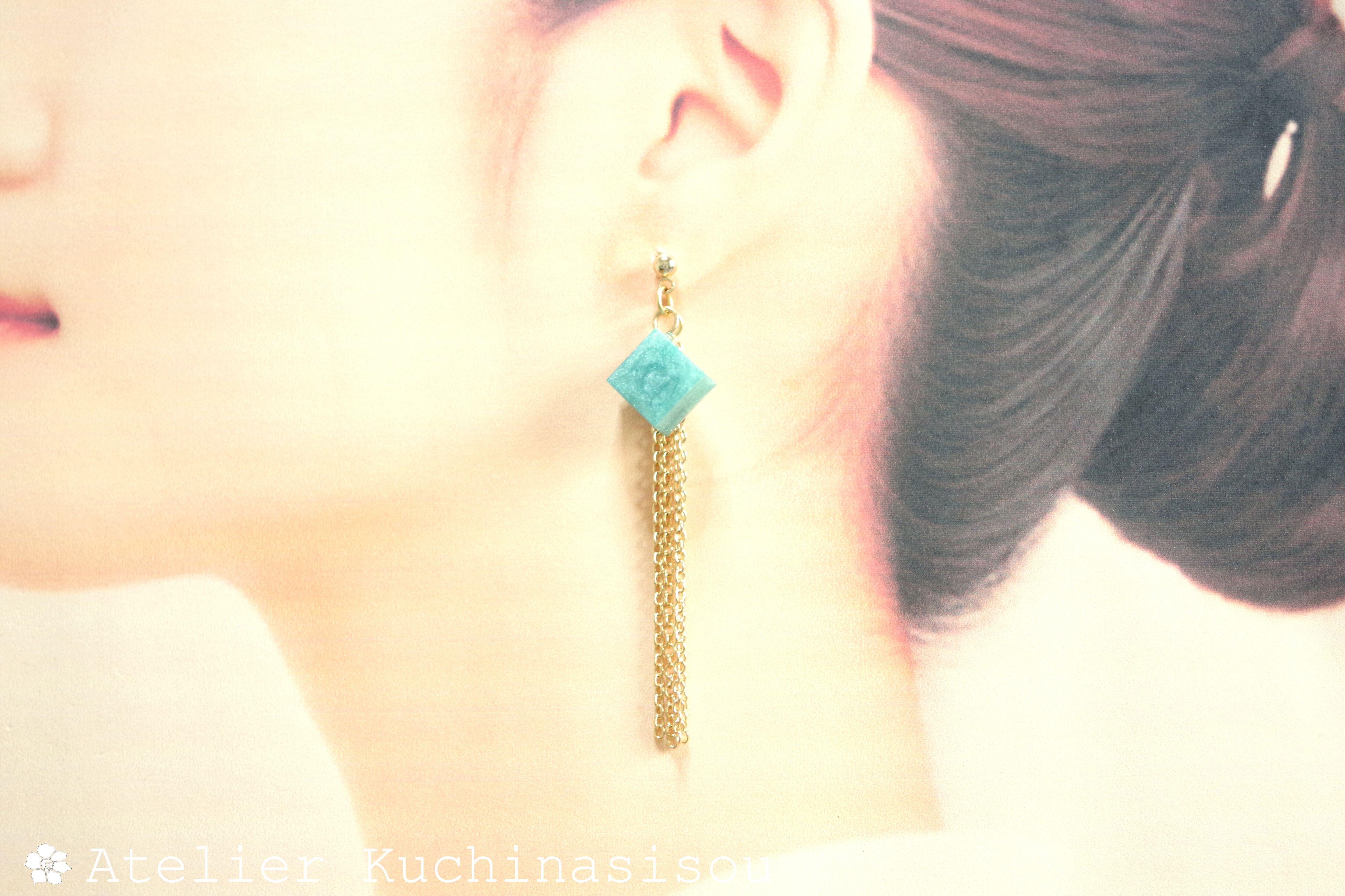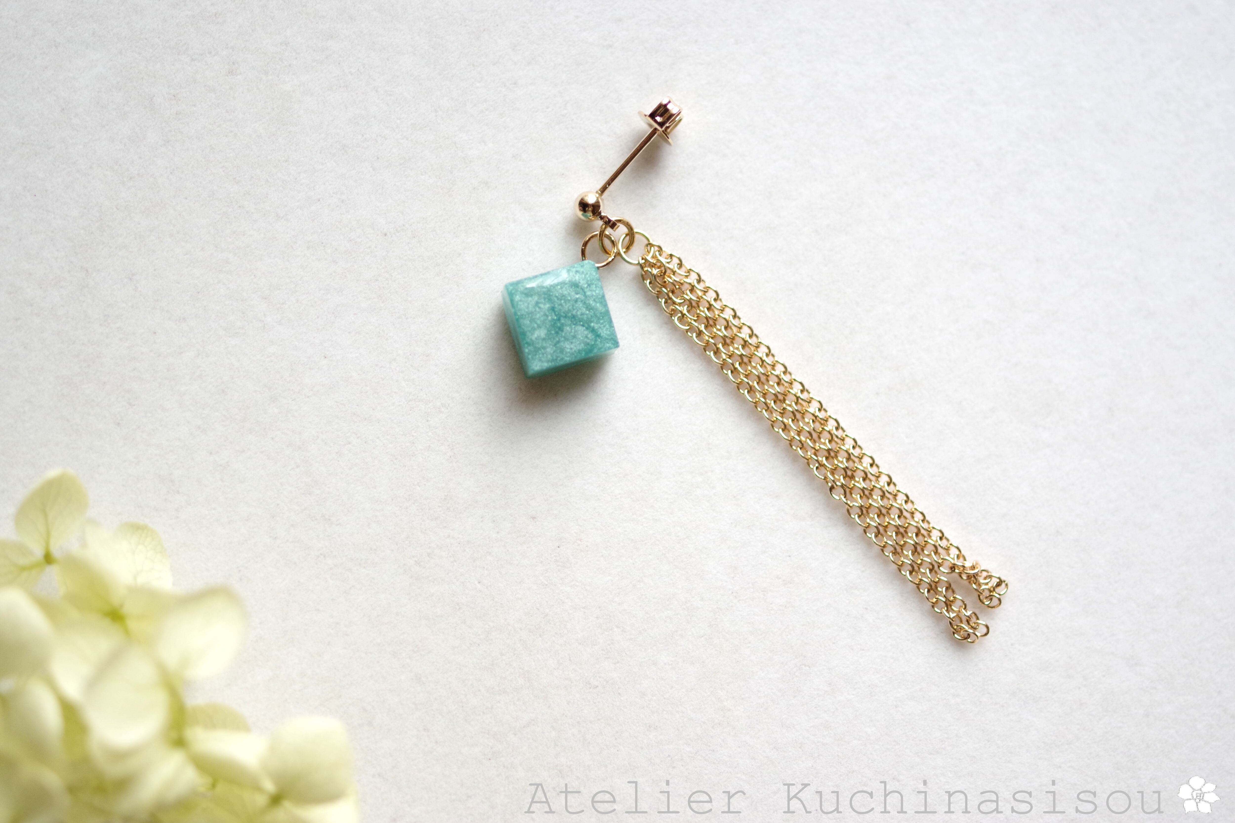 レジンでキューブとフリンジのピアスを作りました♪