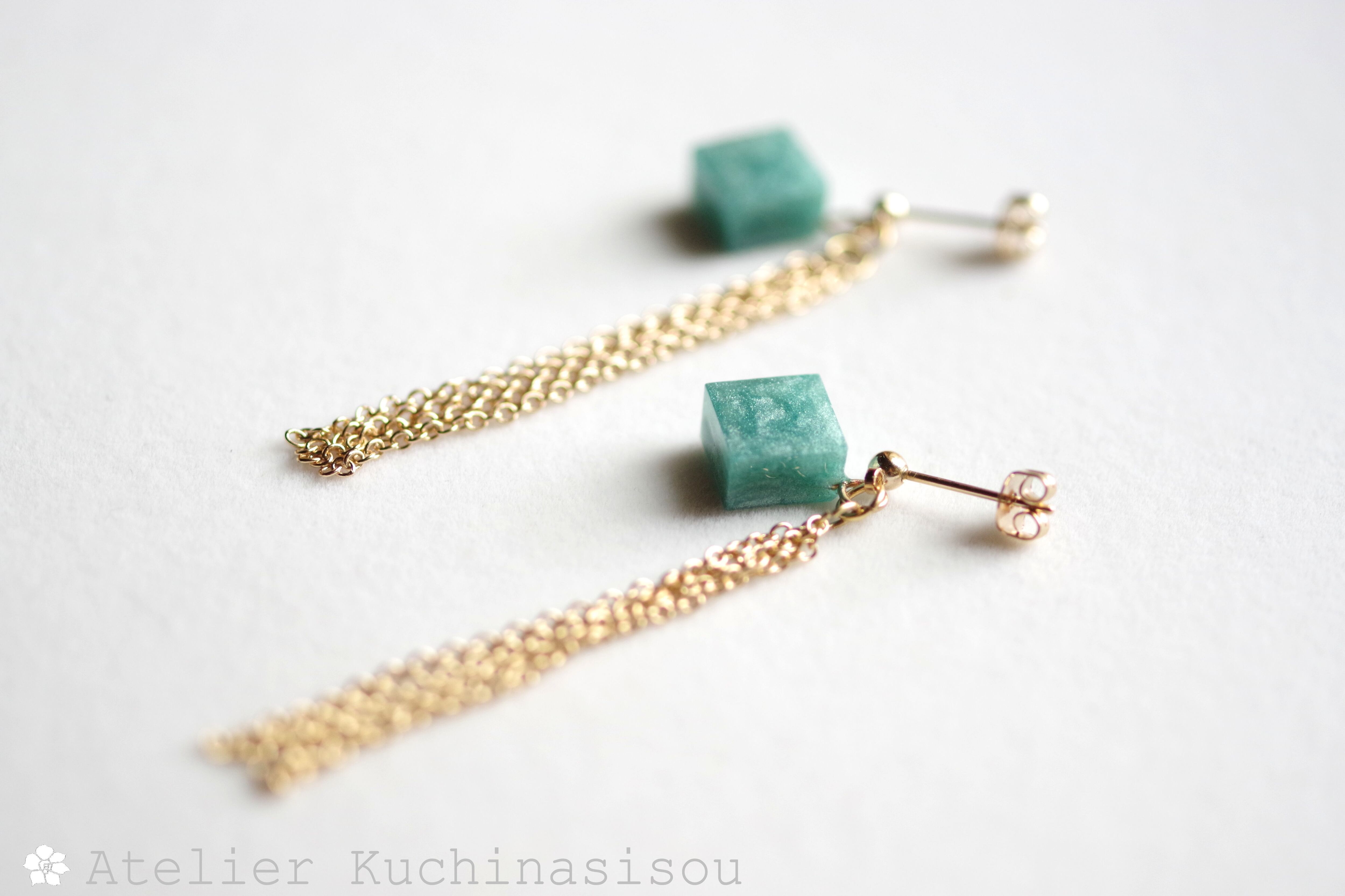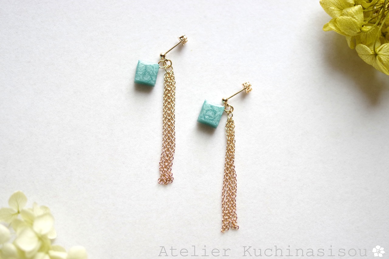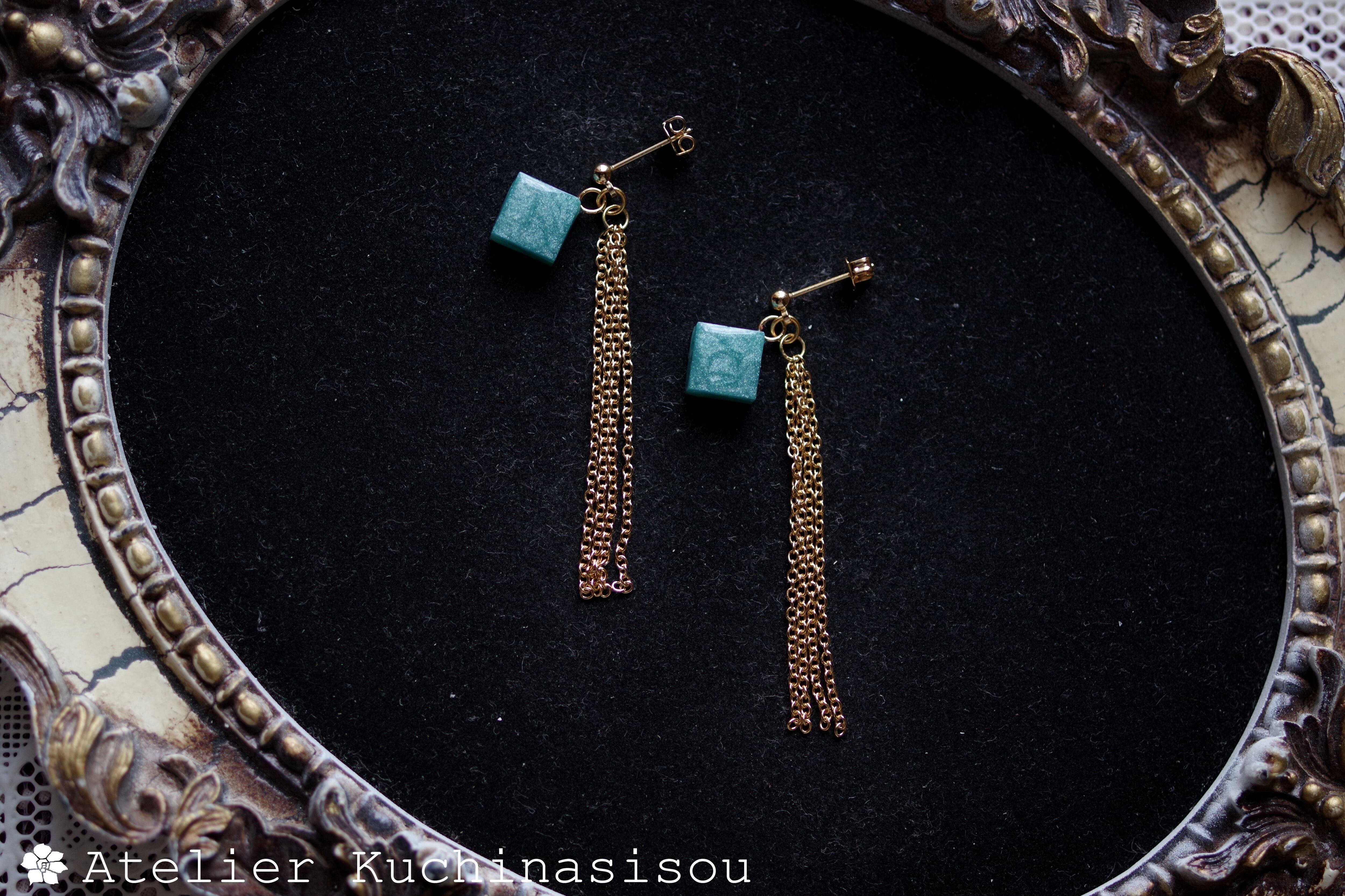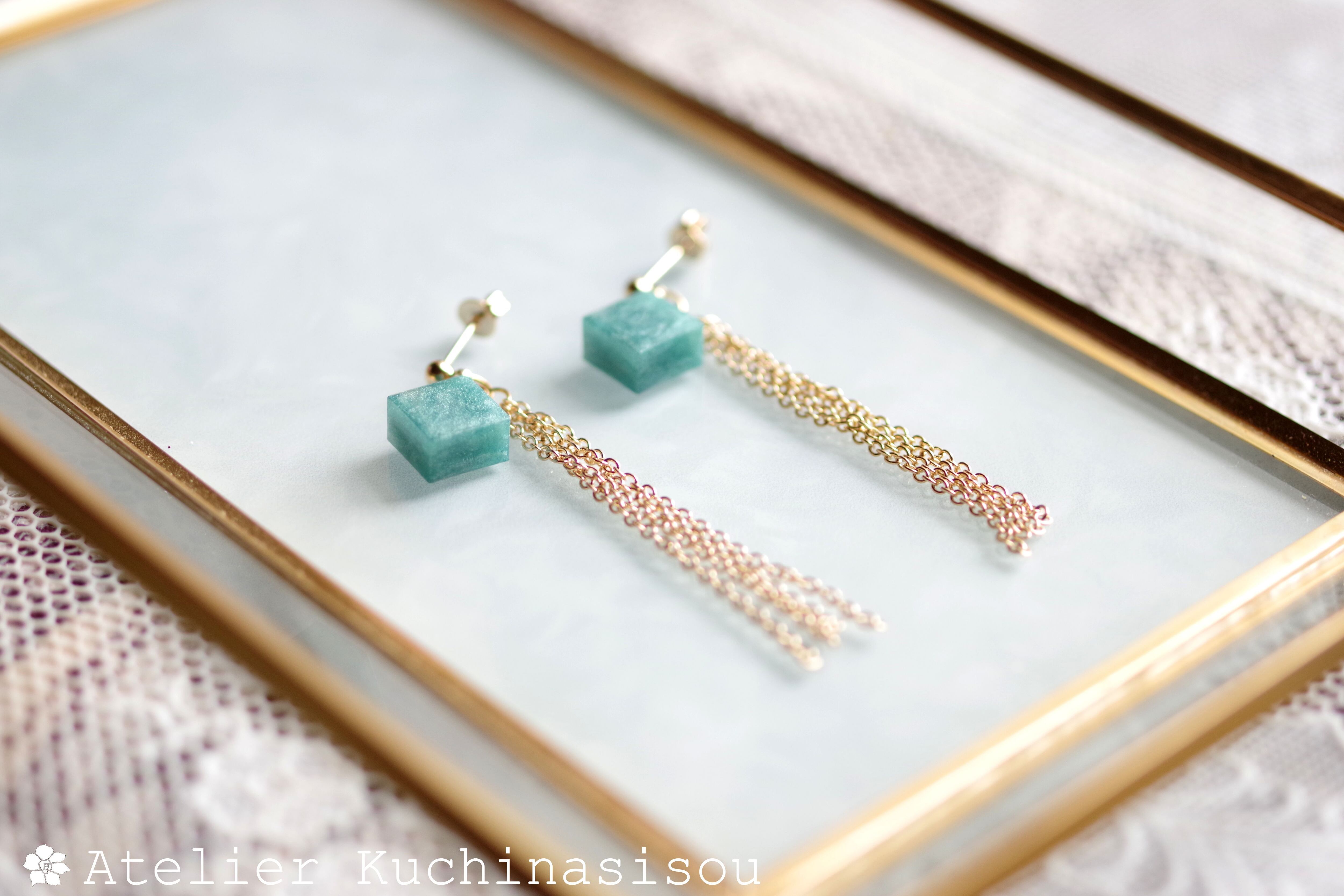 レジンでキューブとフリンジのピアスを作りました♪