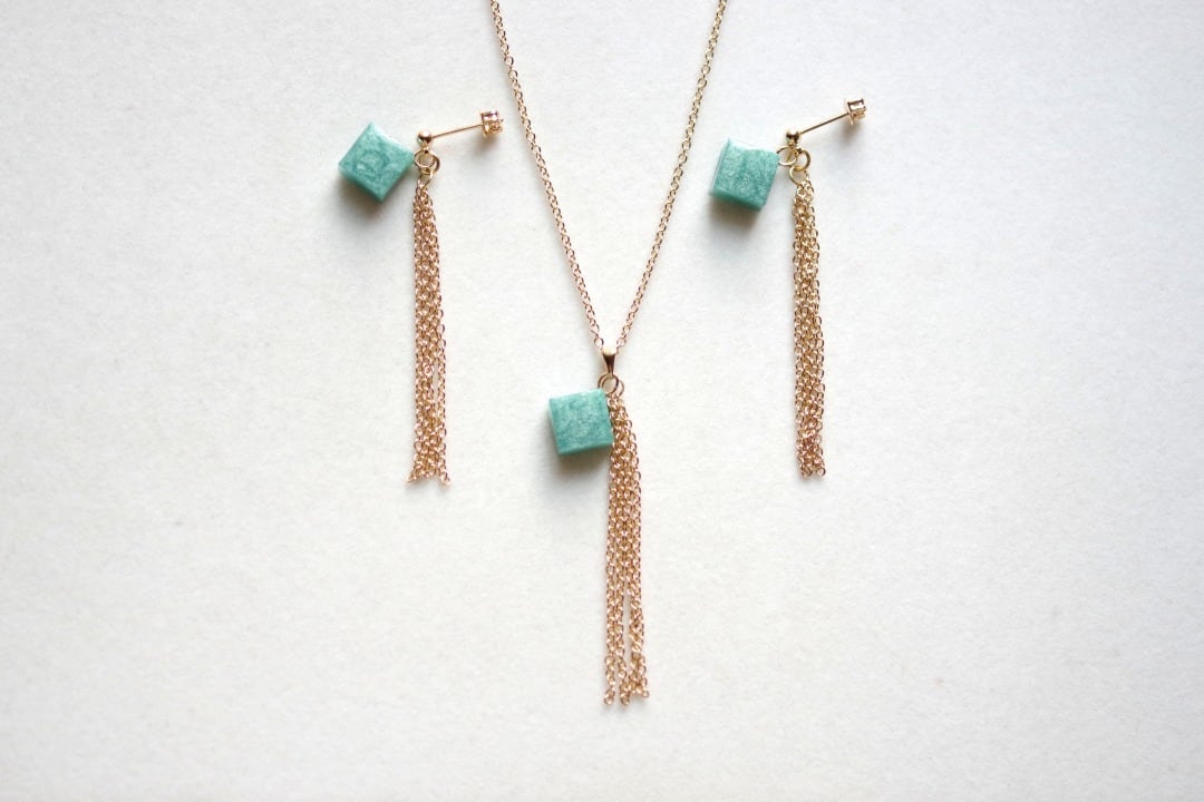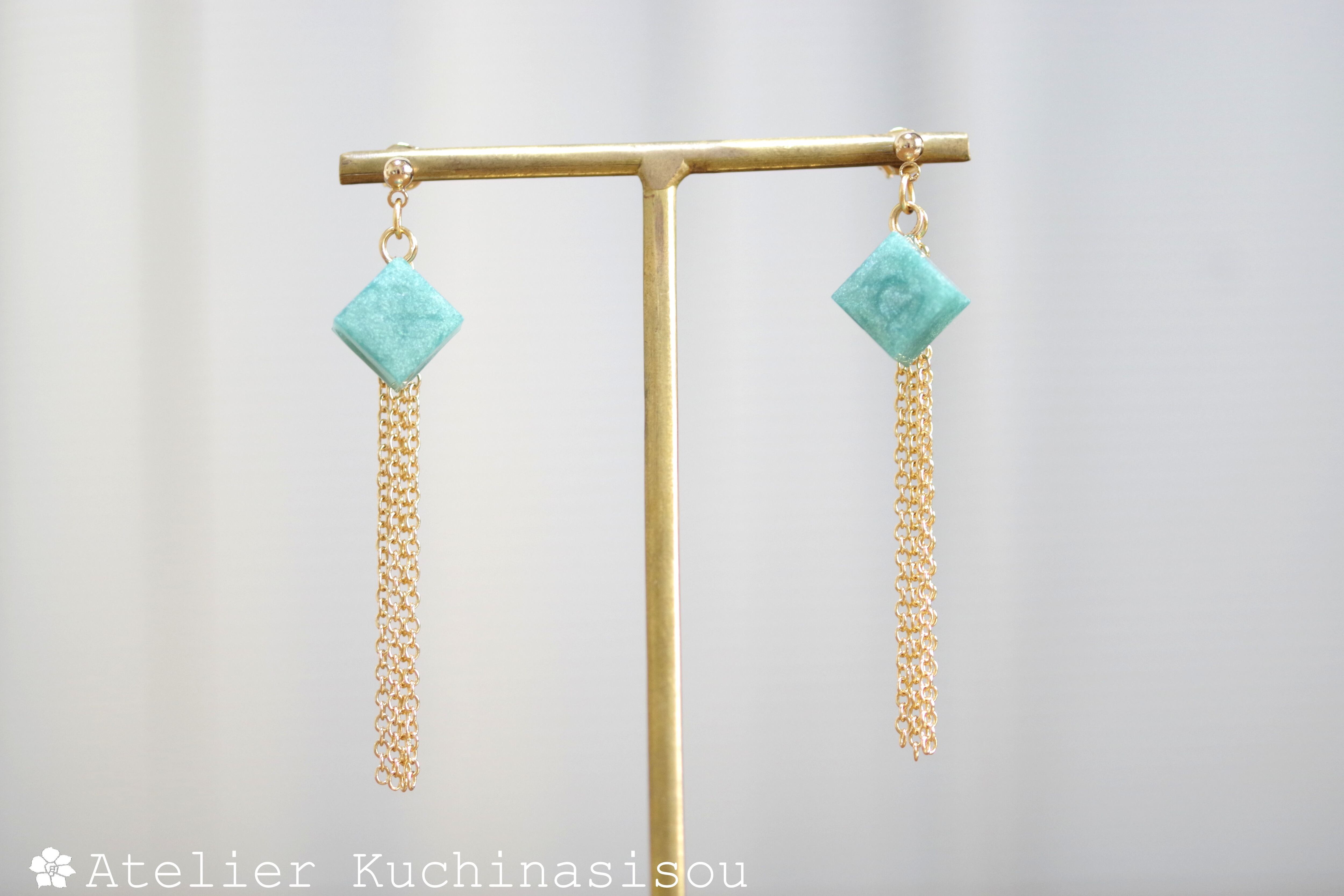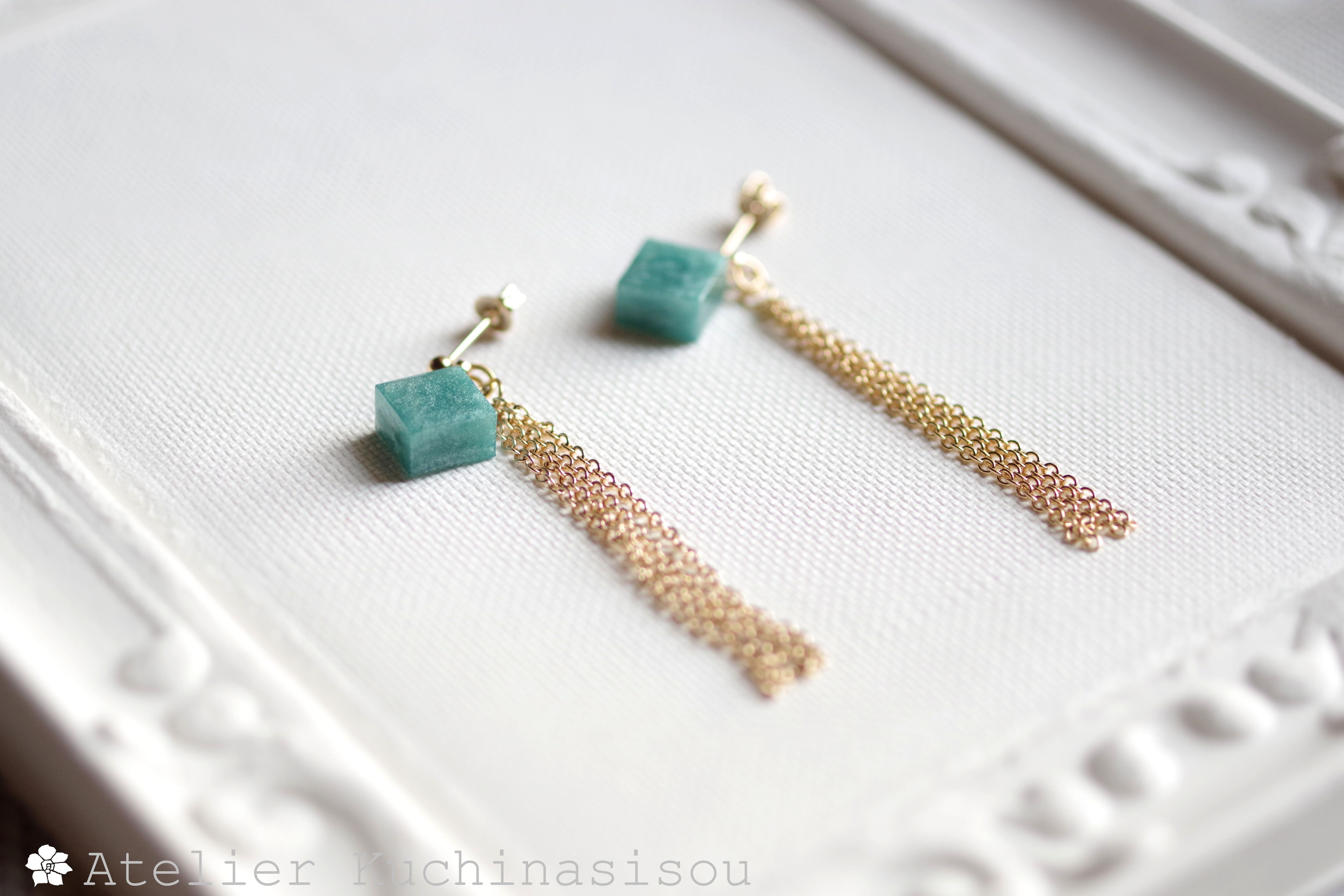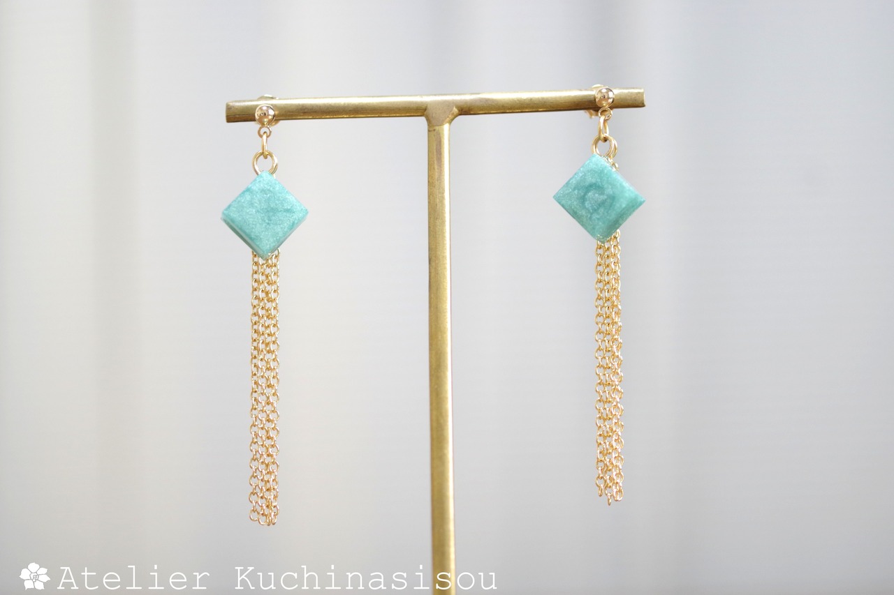 レジンでキューブとフリンジのピアスを作りました♪