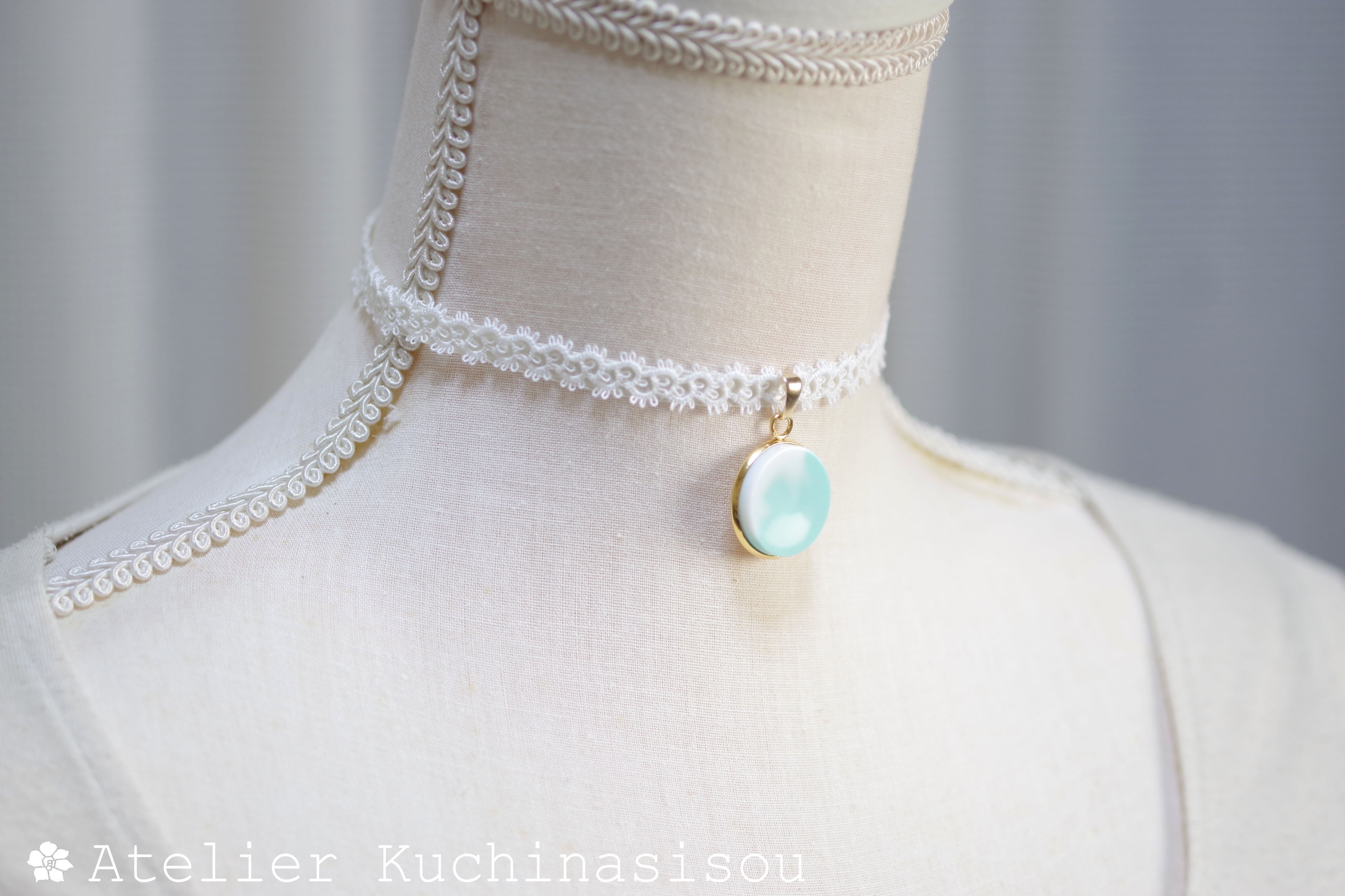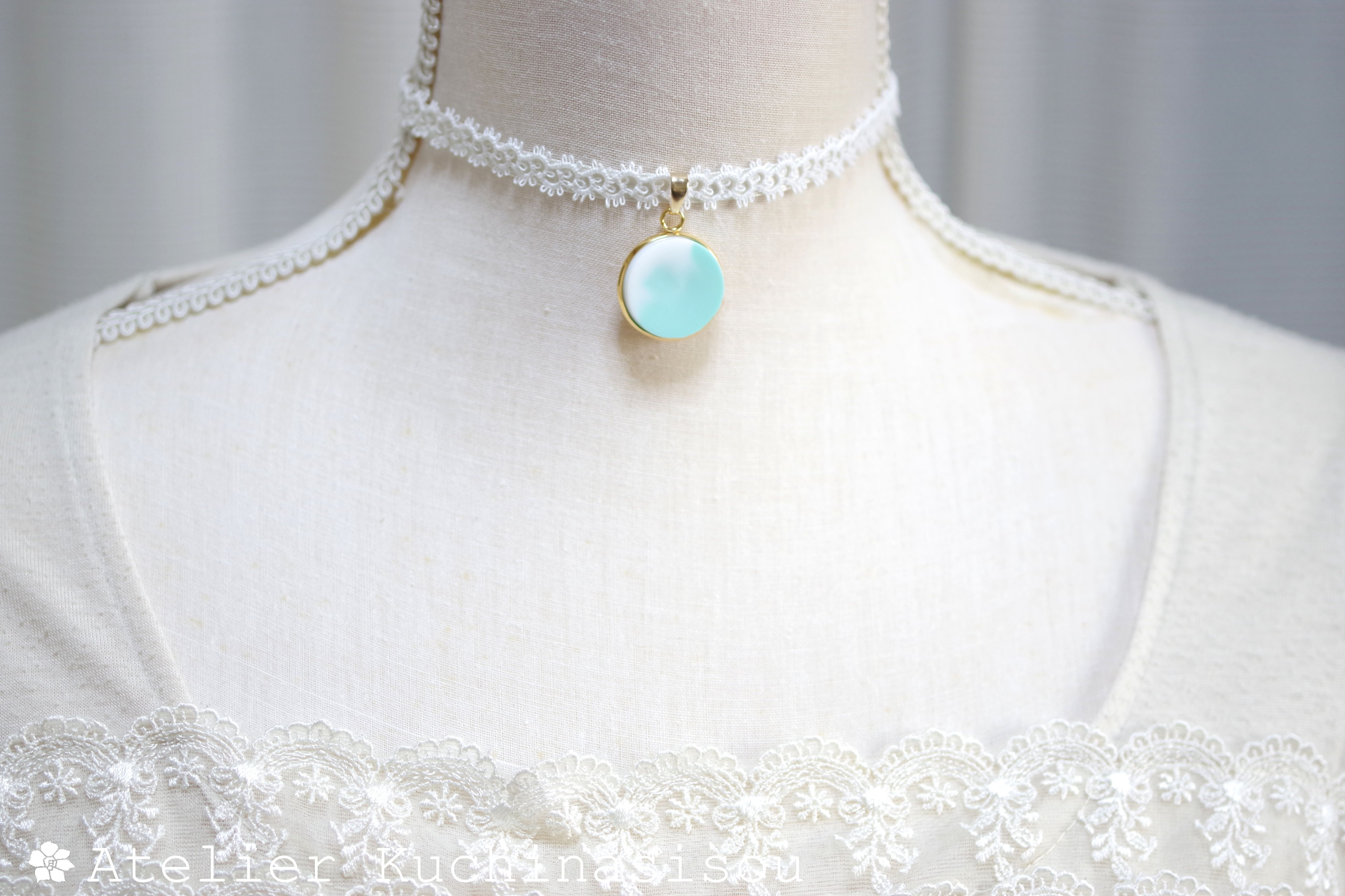 【受注製作】レジンアート ラウンドモチーフとタティングレースとサテンリボンのチョーカー〈初夏の旋律〉