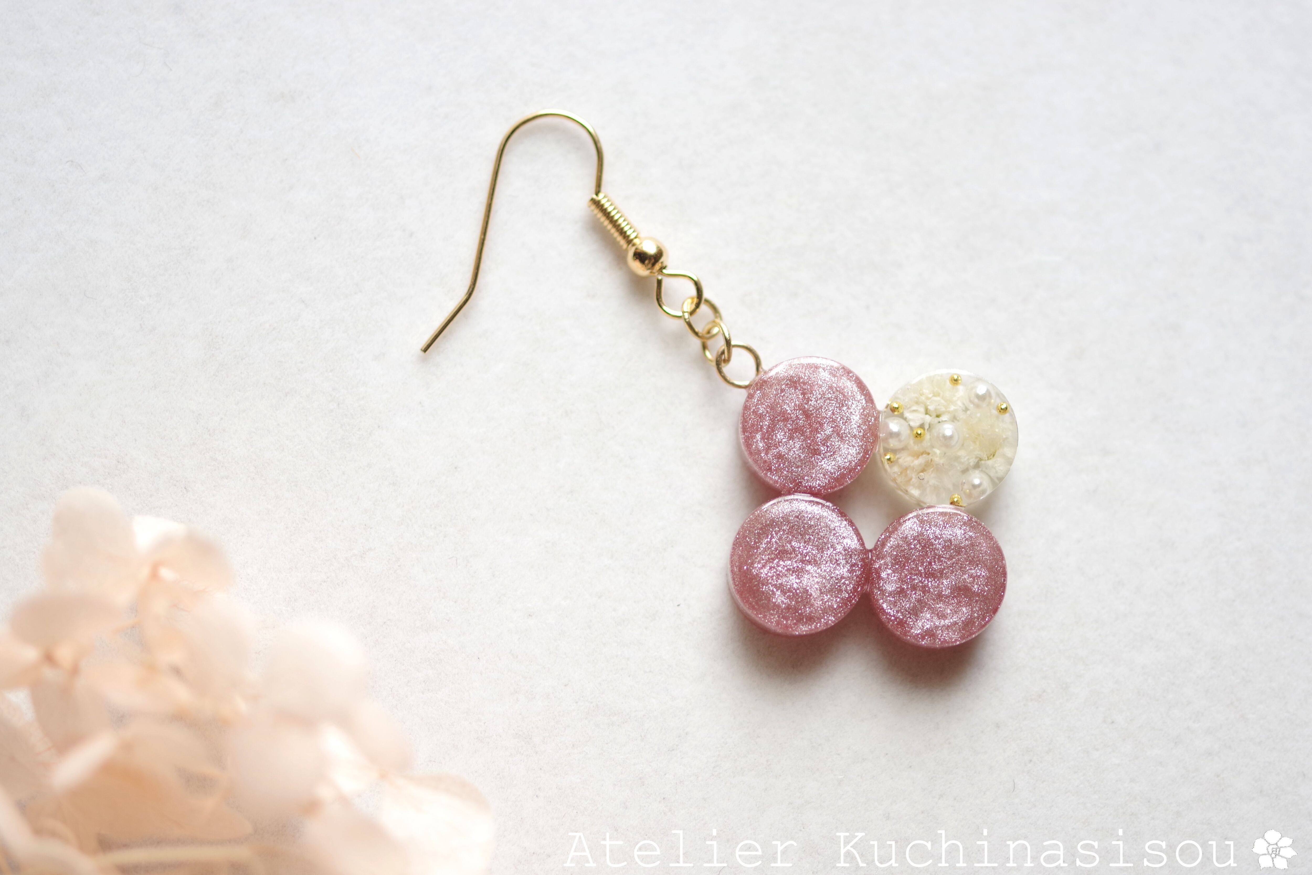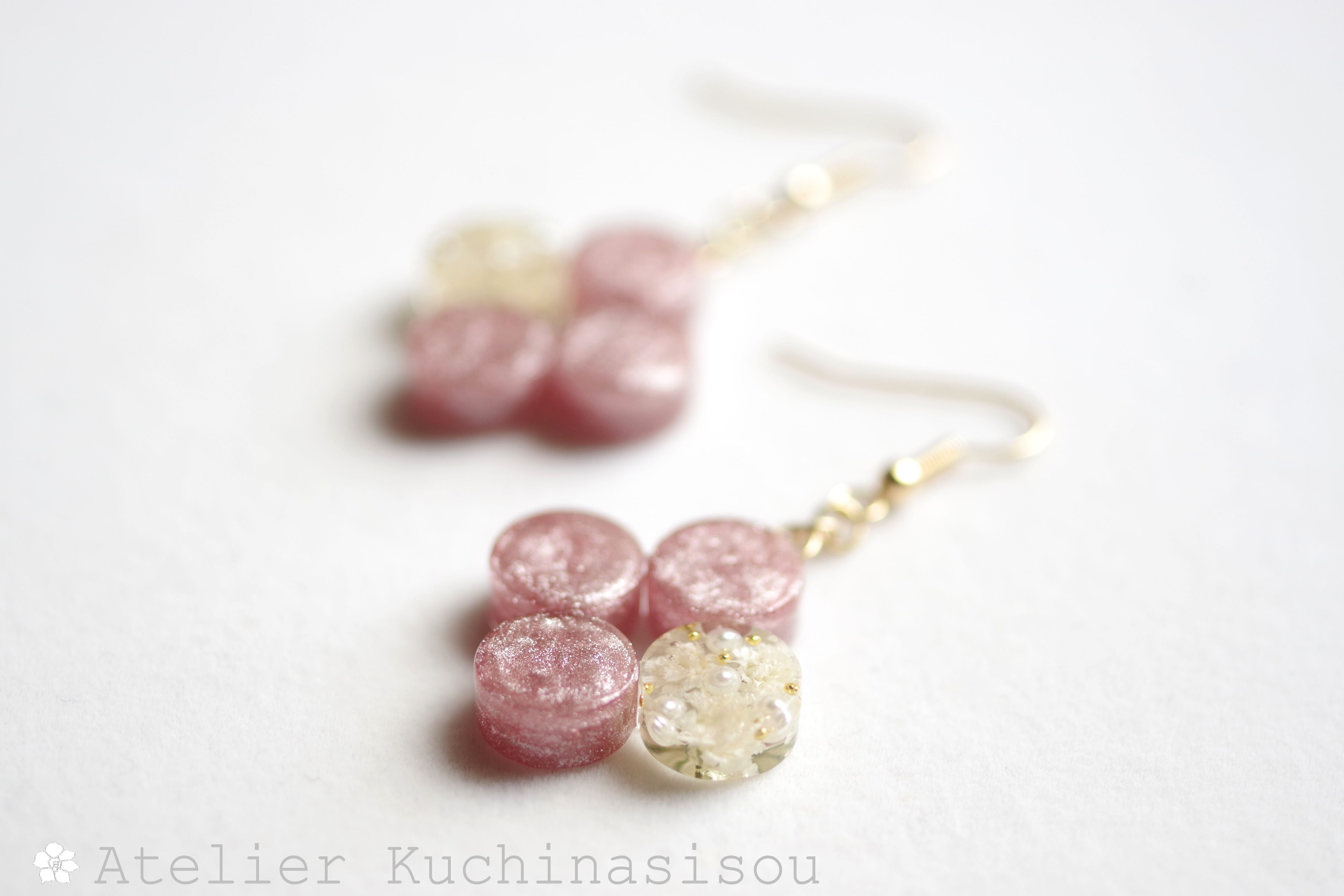 レジンアート 丸を連ねてピアス〈花に埋もれて〉