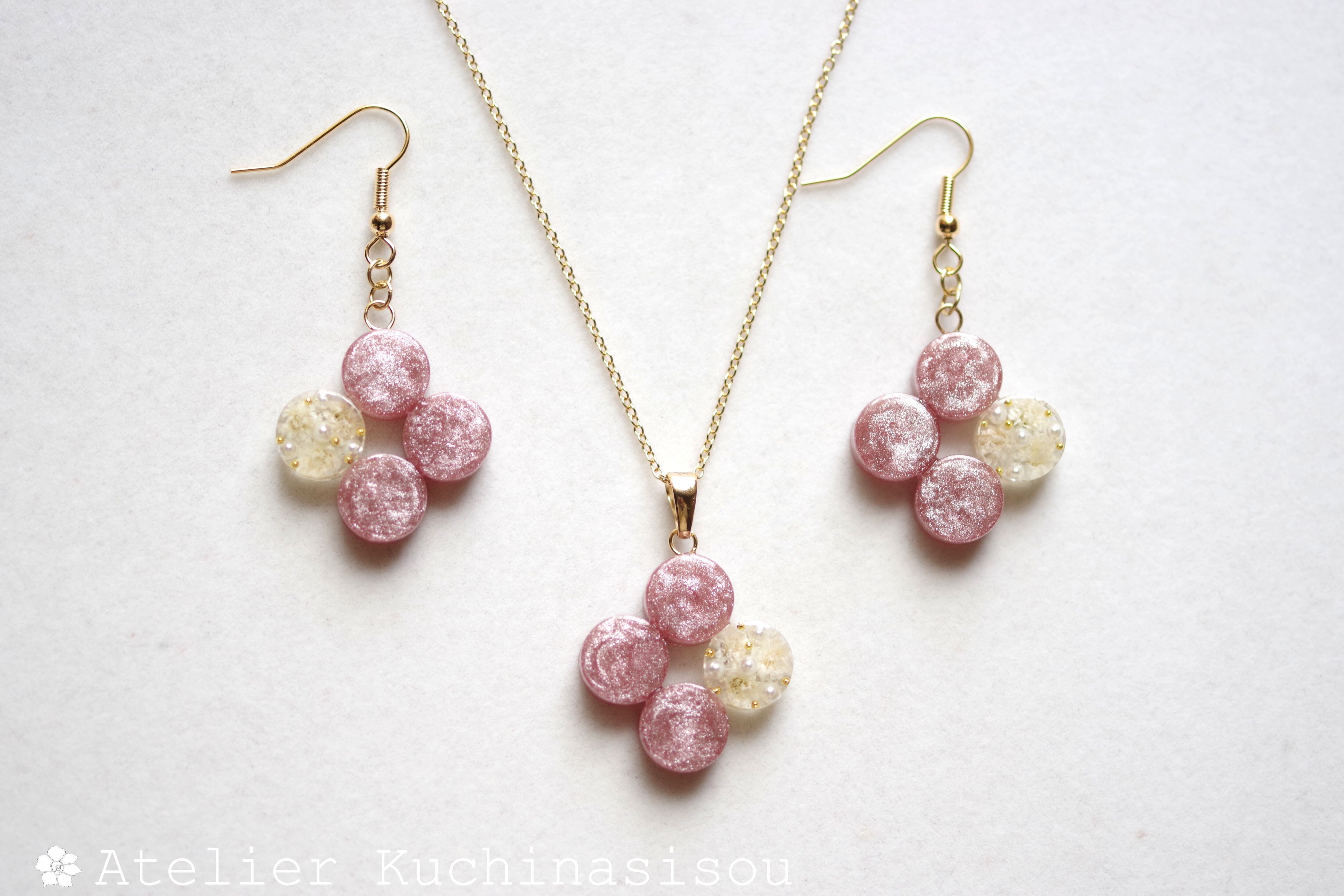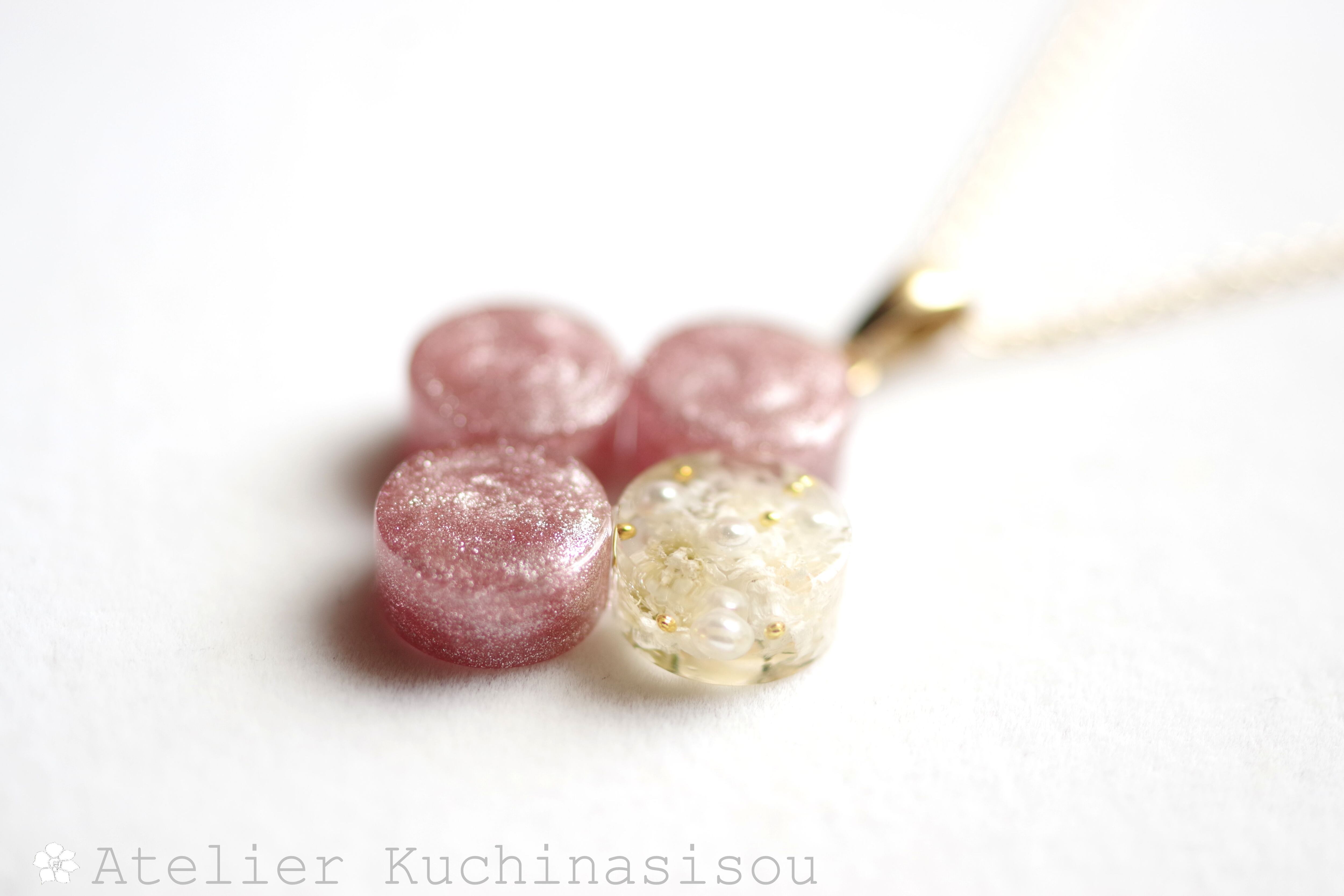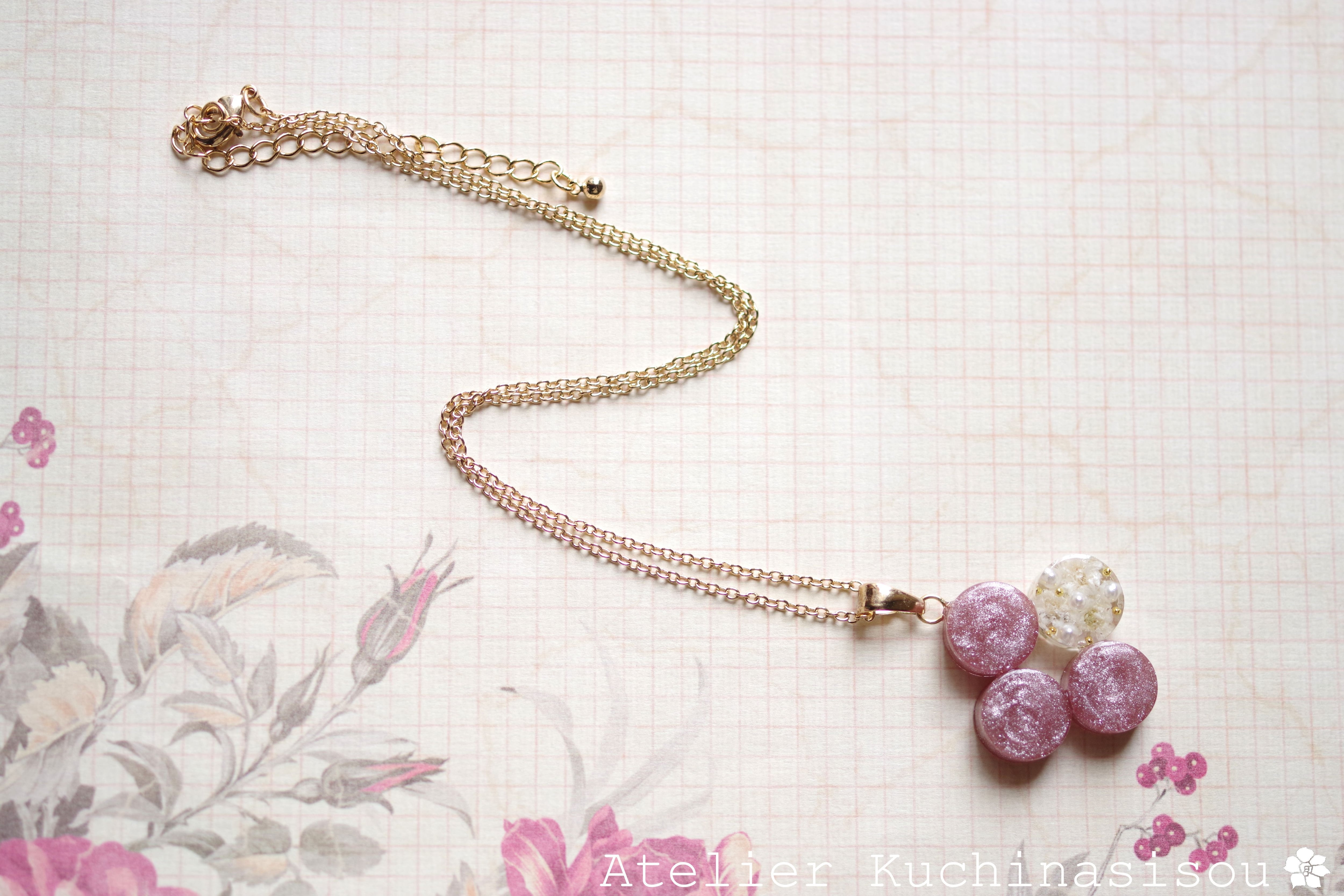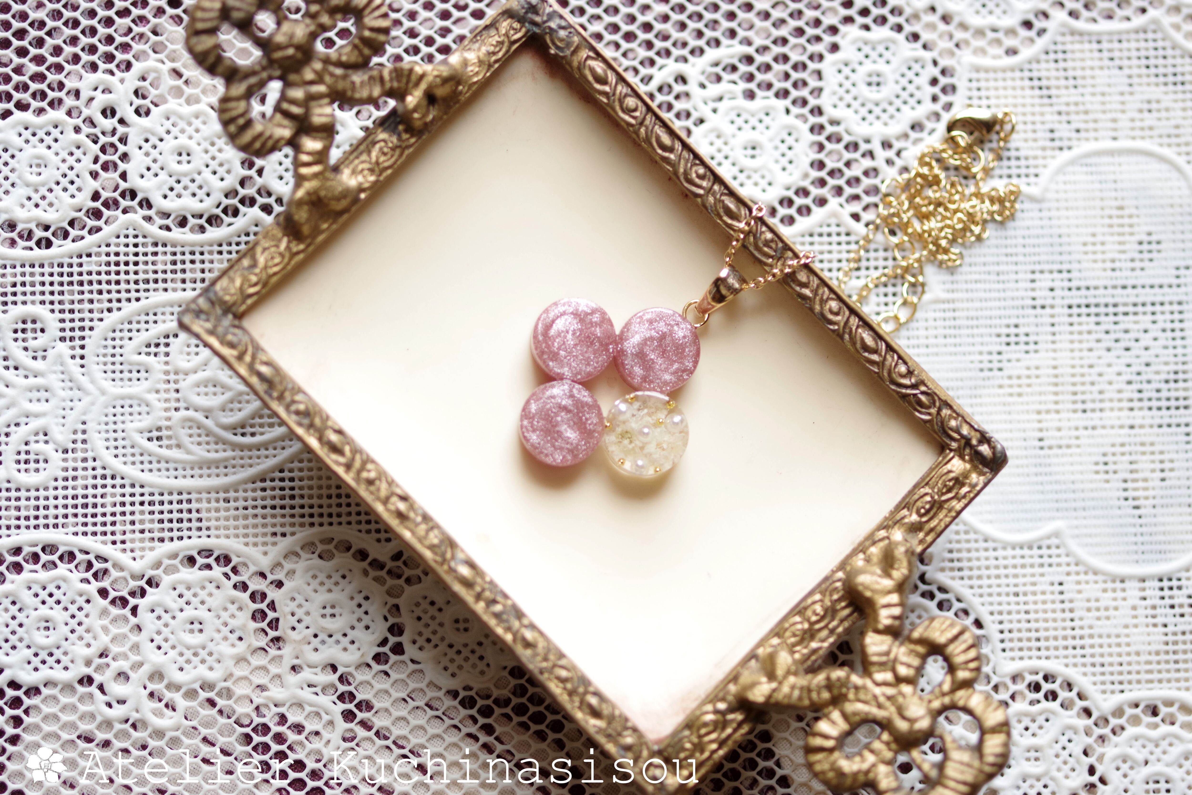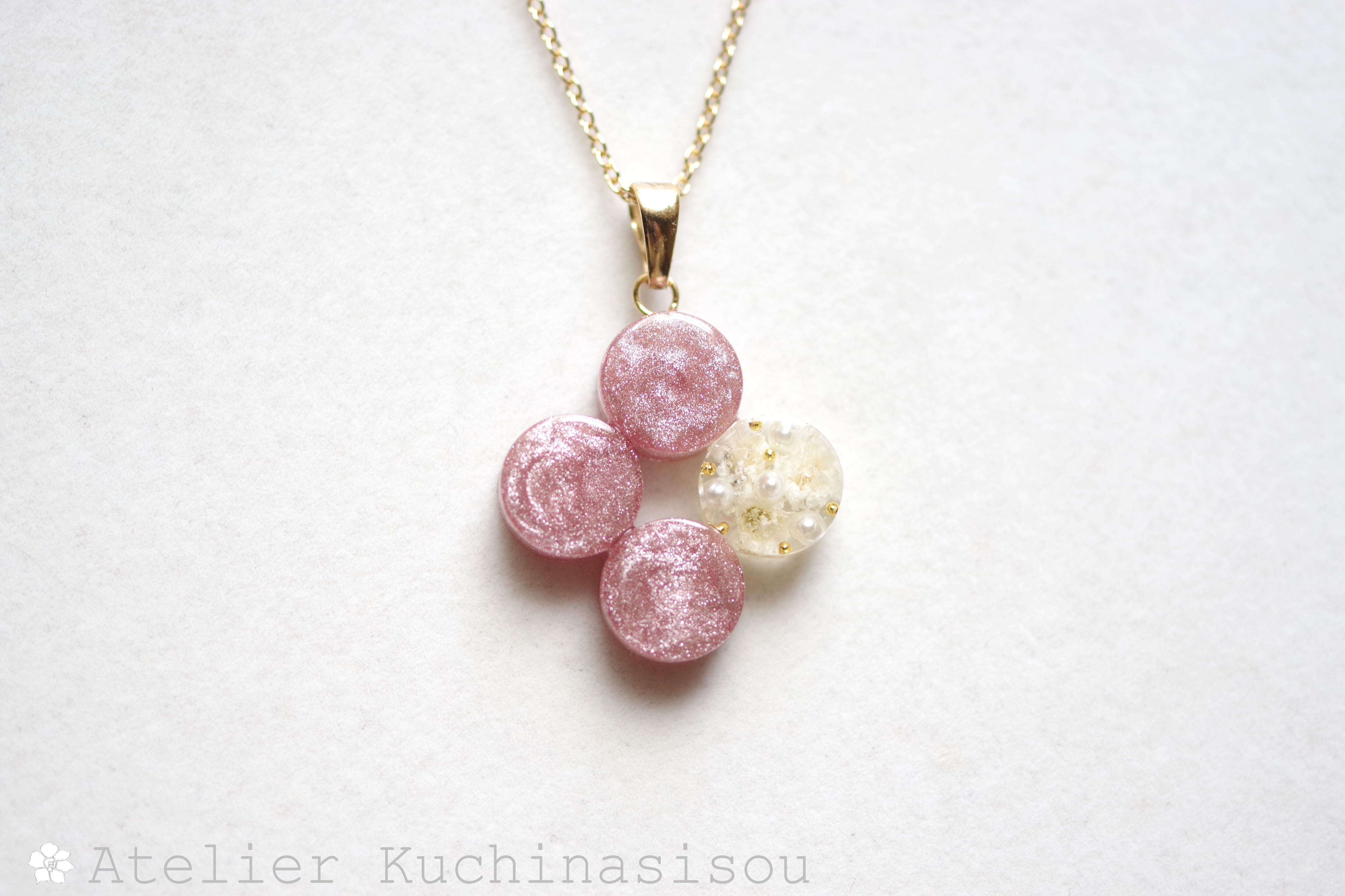 レジンアート 丸を連ねてペンダント〈花に埋もれて〉