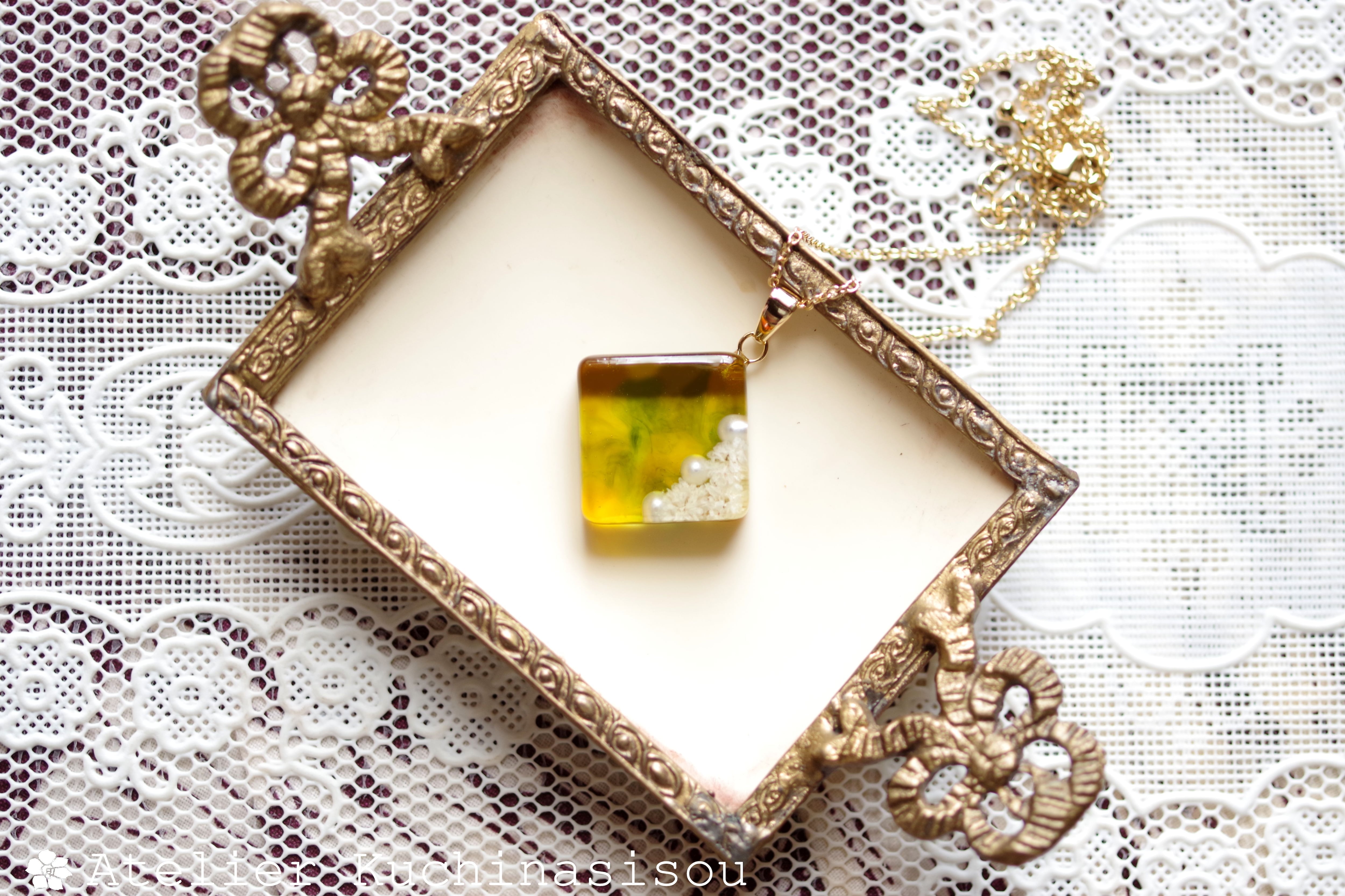 レジンでスクエアペンダントを作りました♪