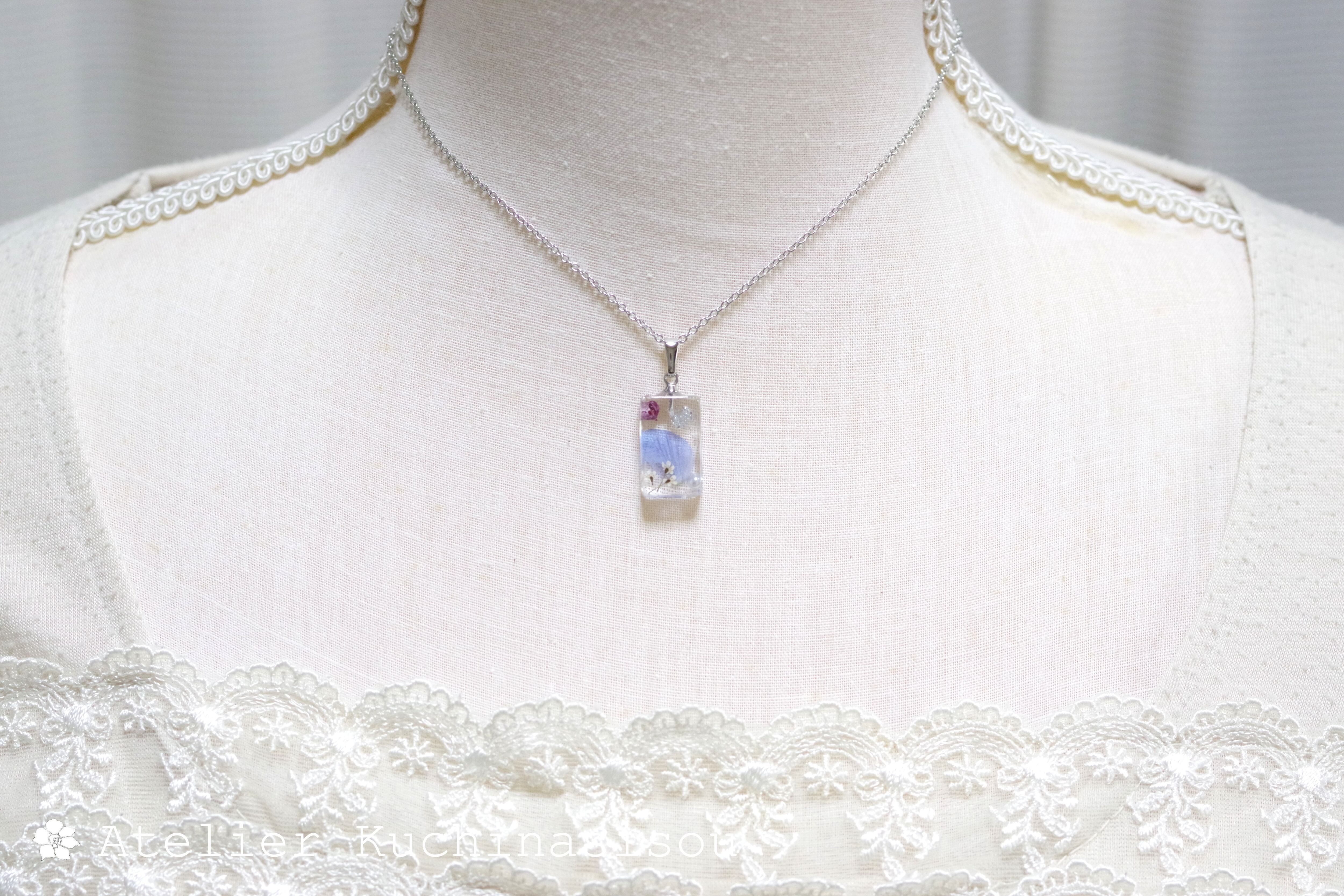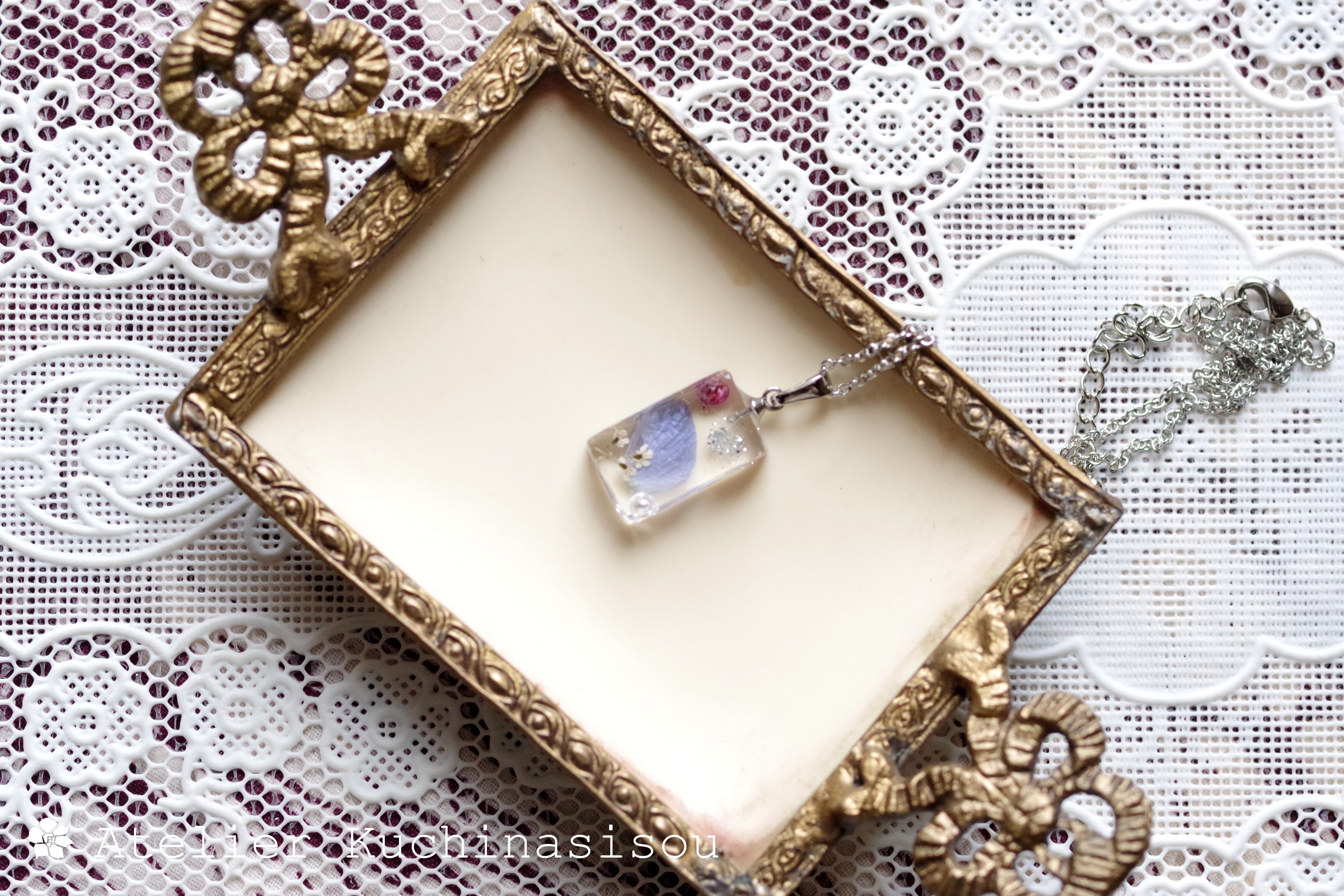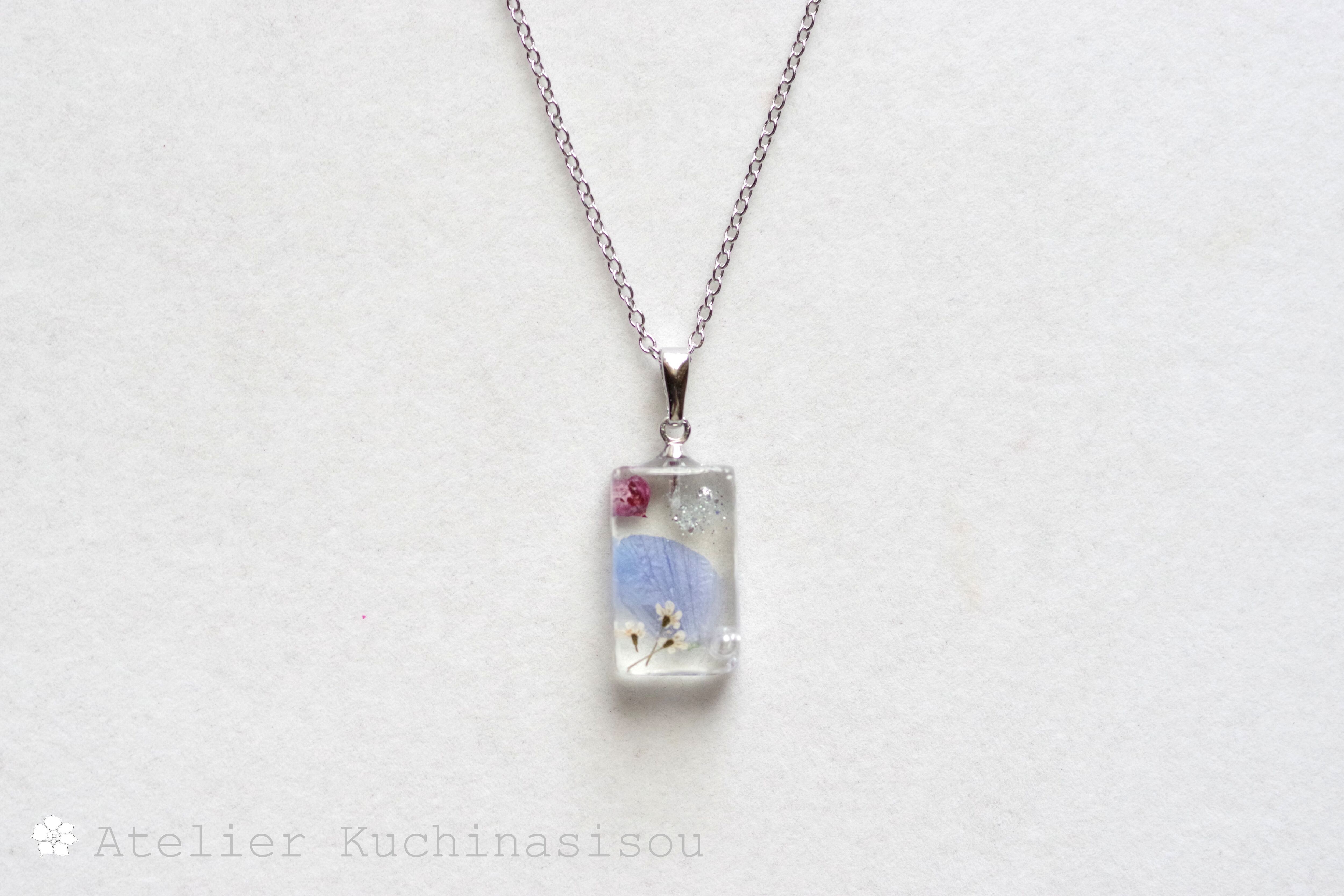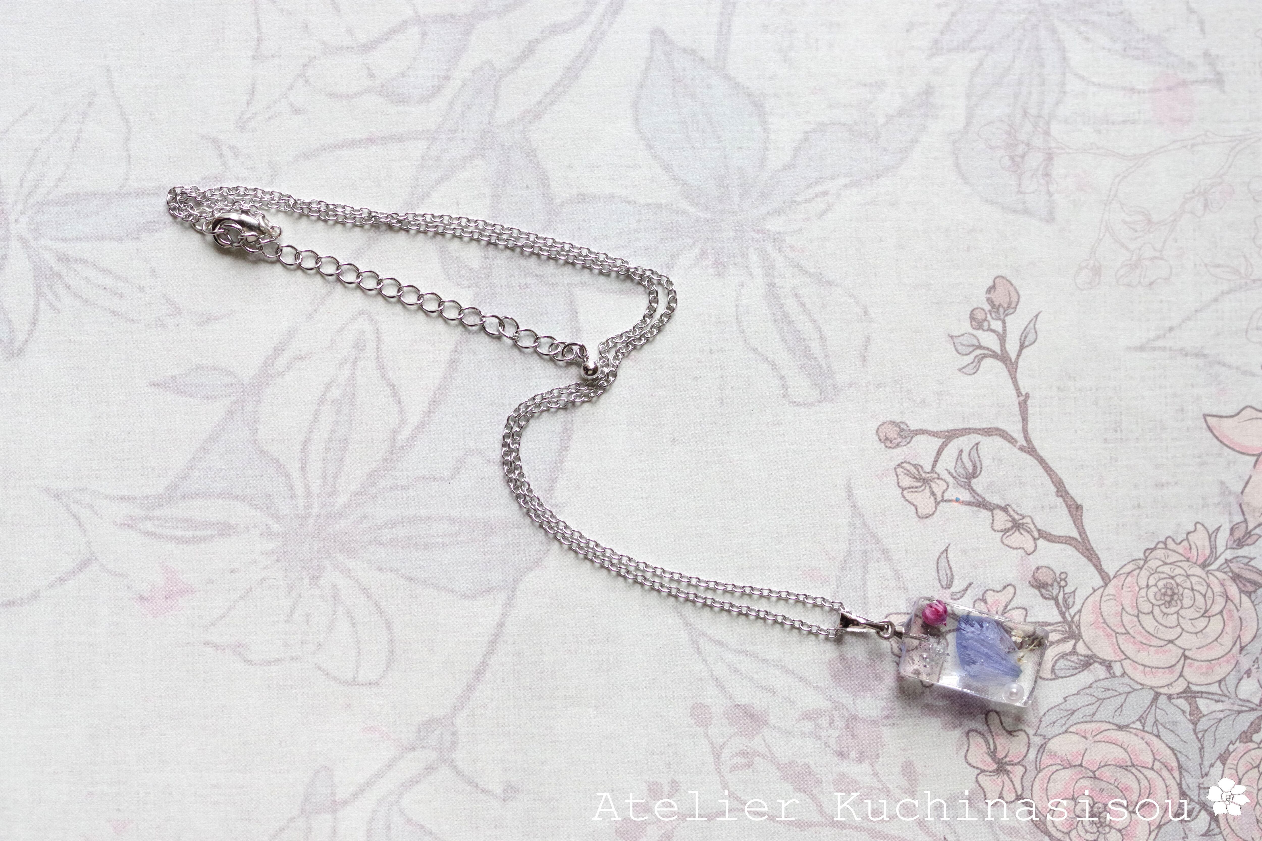 レジンアート 長方形のペンダント〈日蔭の花〉