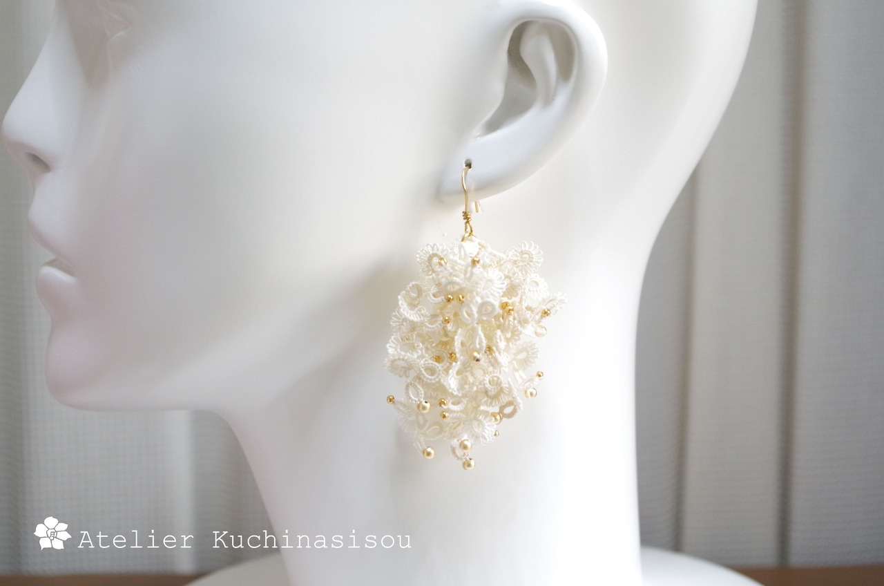 軽やかで可憐な耳元を演出するタティングレースのピアス、これからの季節のお出かけにいかがでしょう?