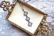 二種類のグレーで編んだタティングレースの小花が連なる可憐なペンダントです♪