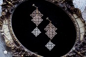 大中小、三つのサイズの異なるタティングレースのスクエアモチーフを組み合わせたシンプルなピアスです♪