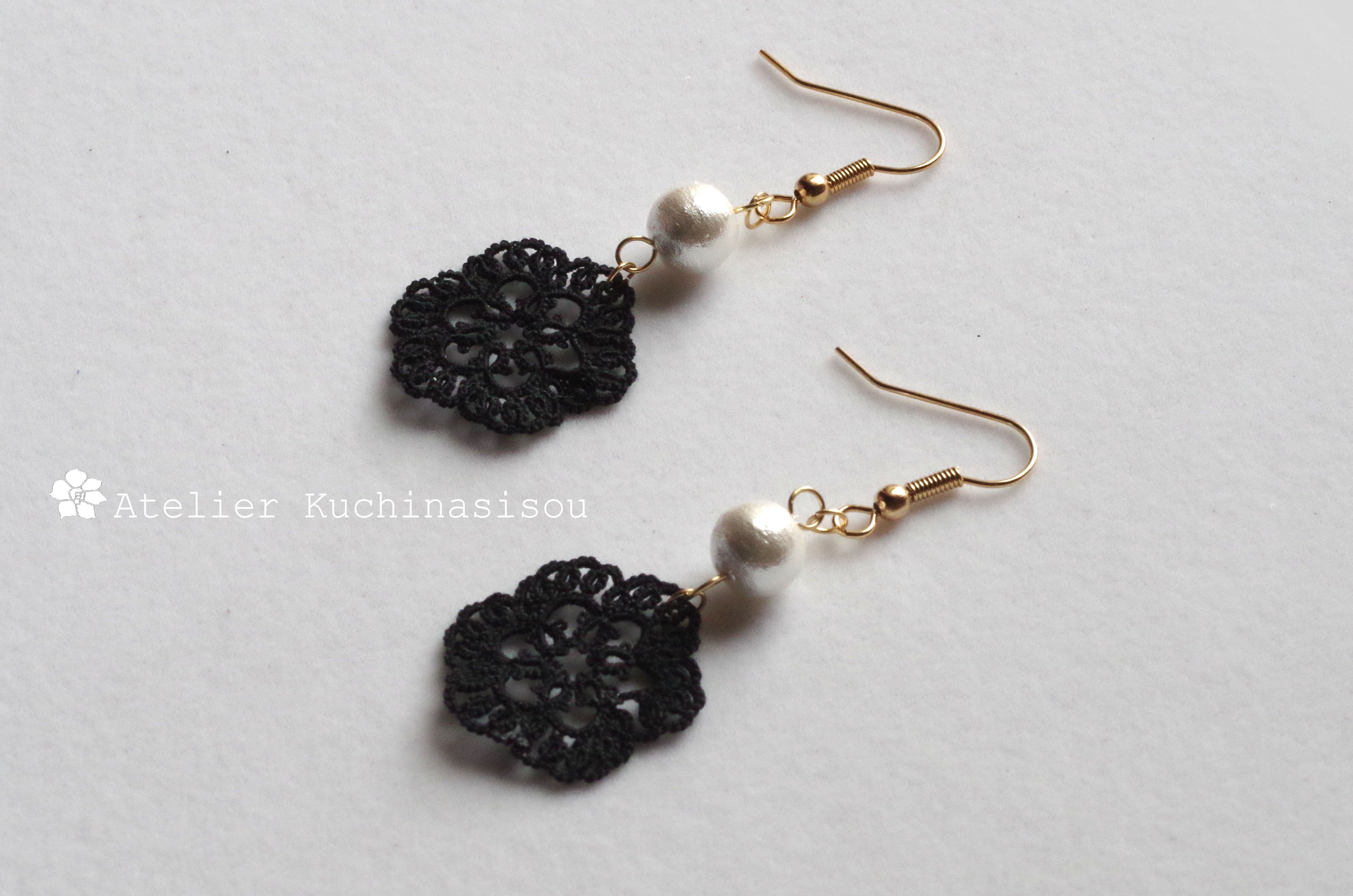 タティングレースとコットンパールのシンプルなピアスです♪