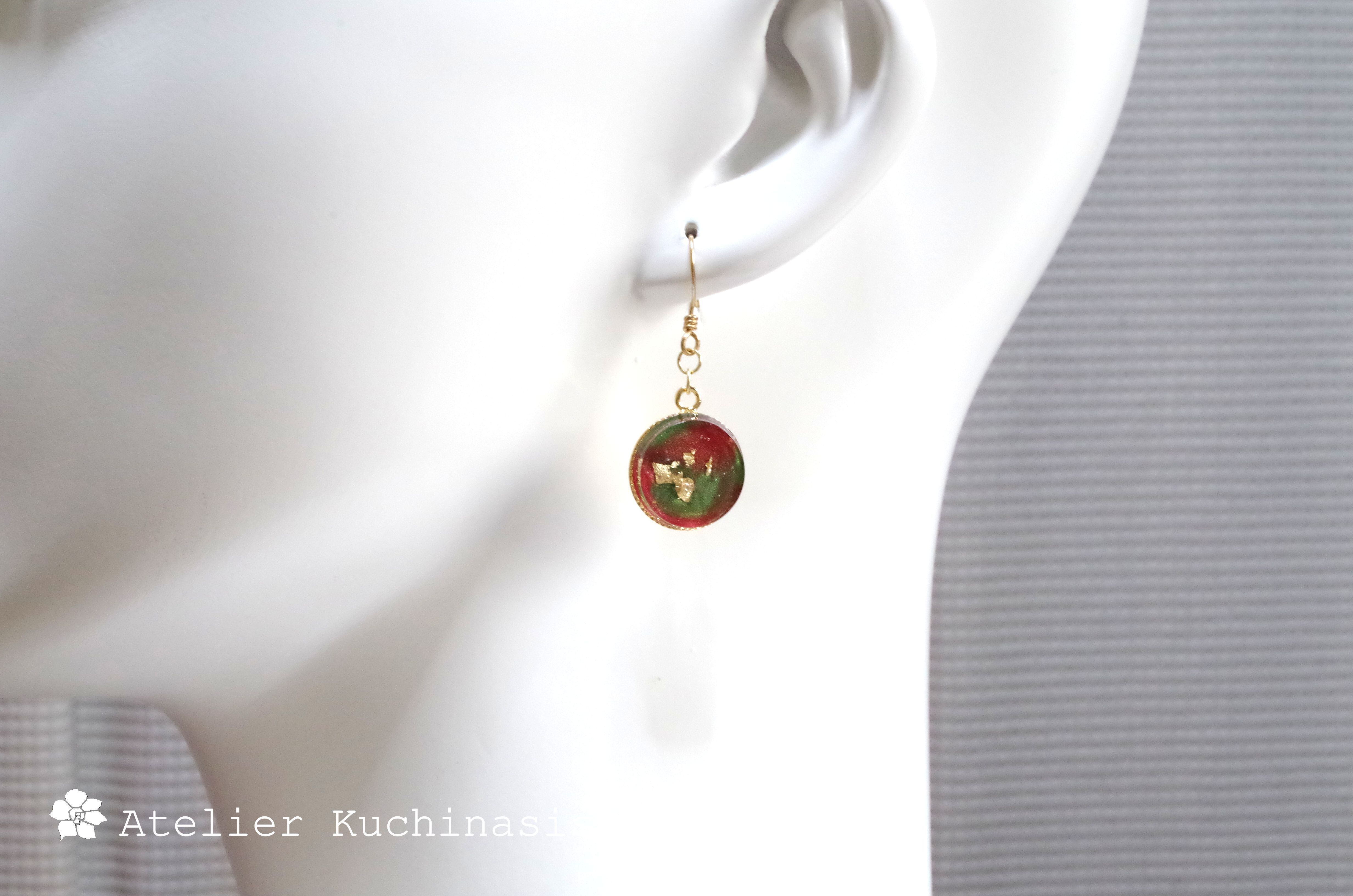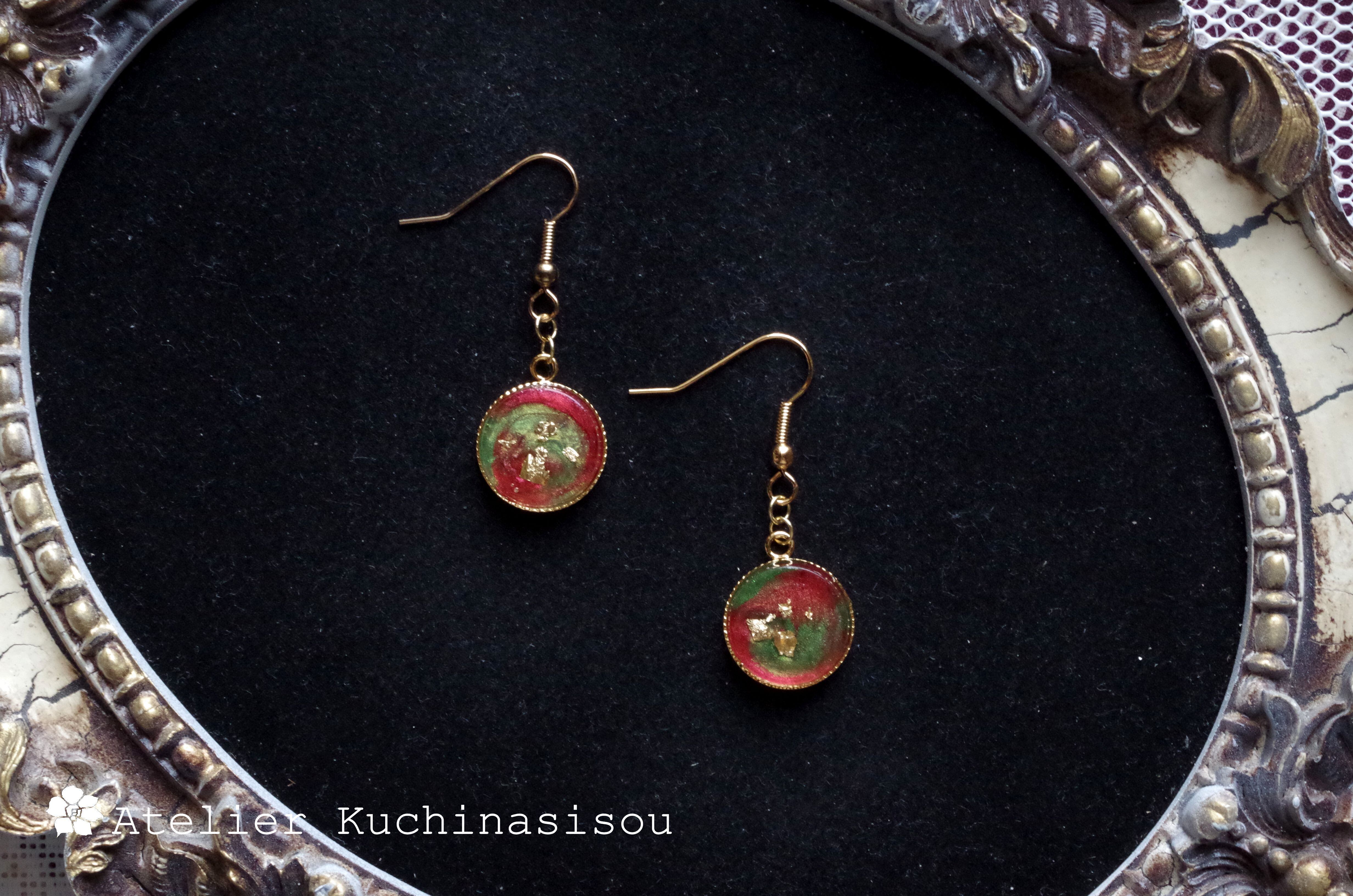 レジンでクリスマスをイメージしたラウンドピアスを作りました♪