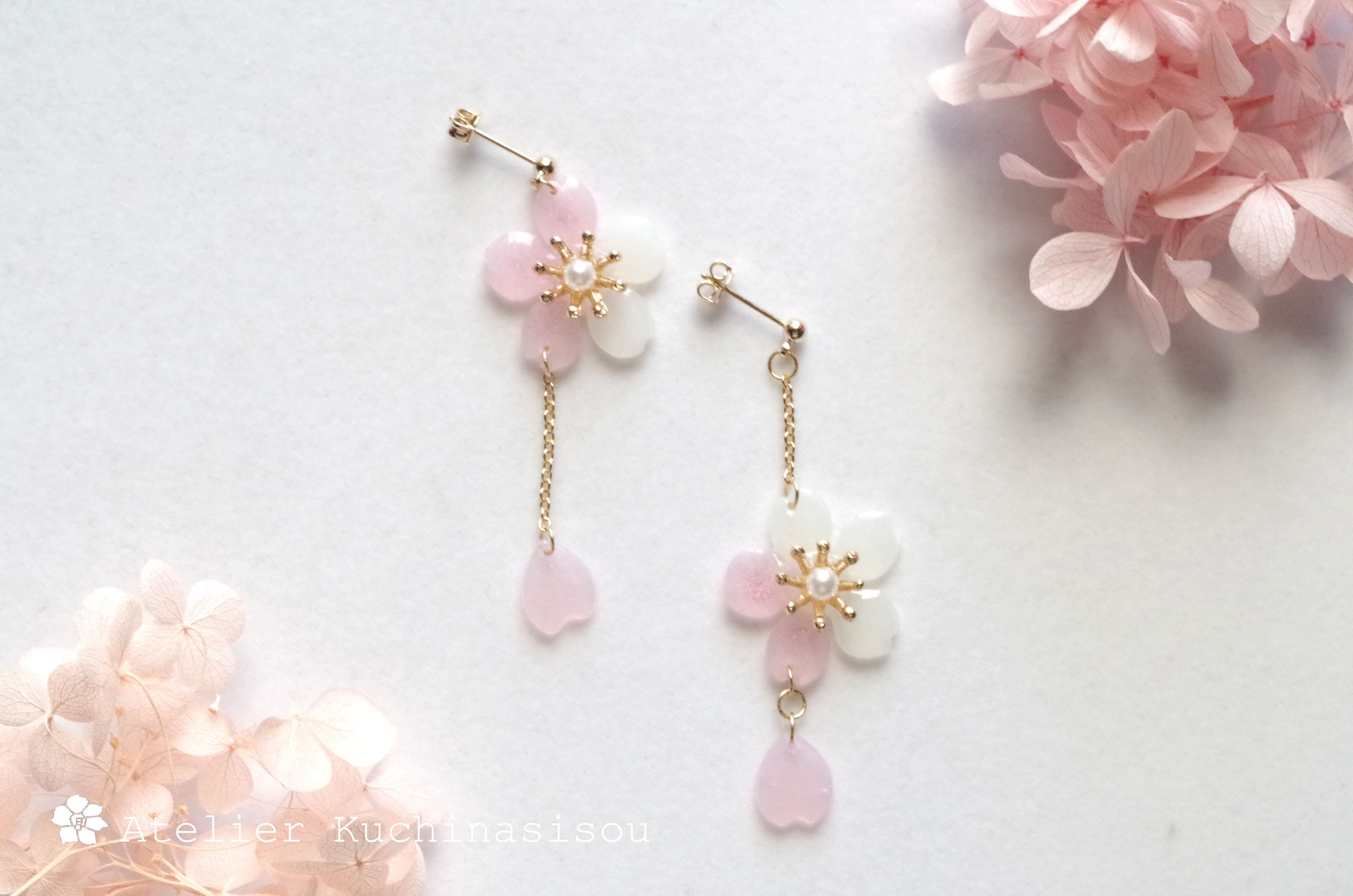 耳元を優しく彩る春を迎える時期にぴったりの桜のピアス、お出かけのお供にぜひお選びください(*´∀`*)