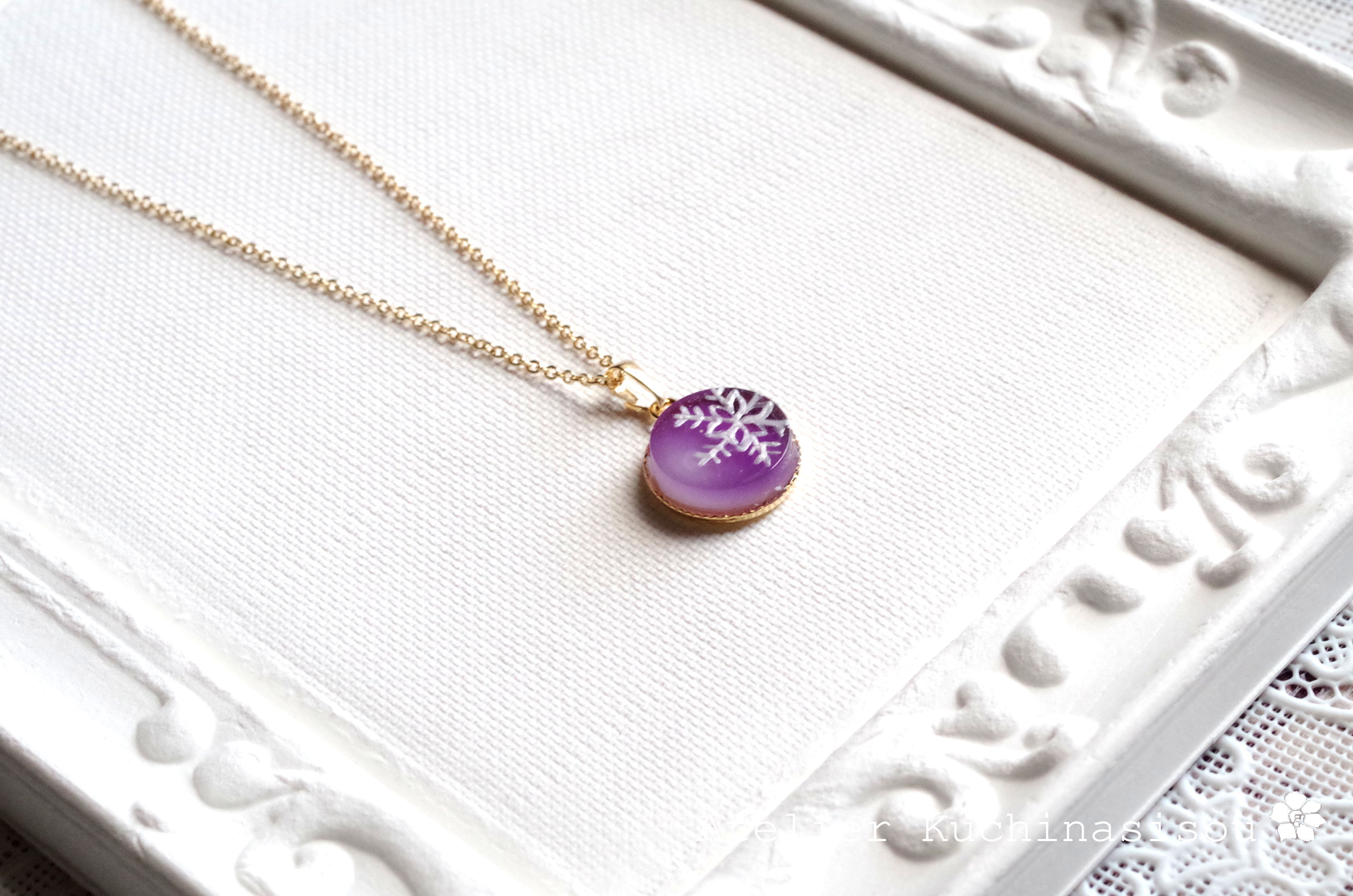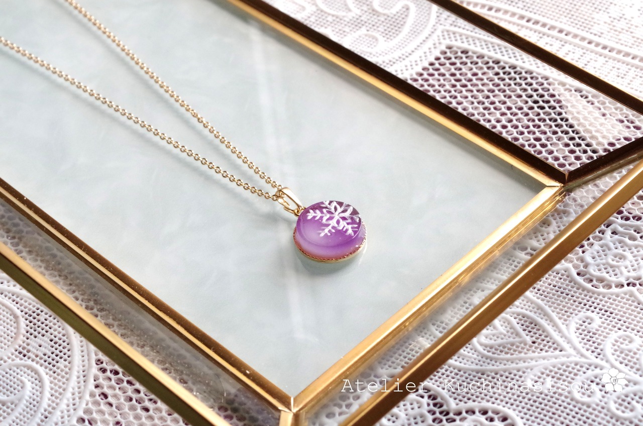 深い紫色にパールホワイトの雪の結晶が映えます。
