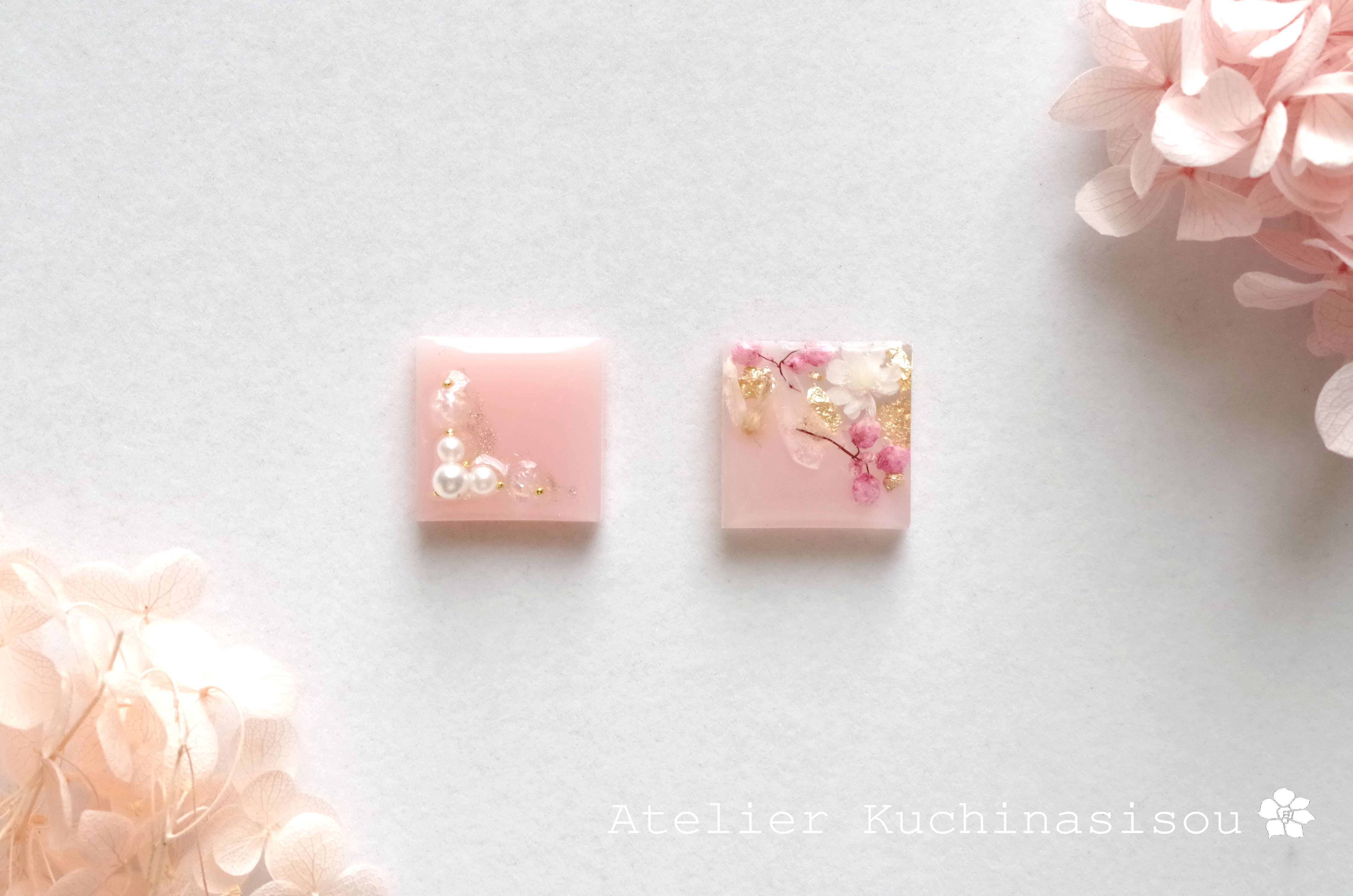 レジンでアシンメトリーのスクエアピアスを作りました♪