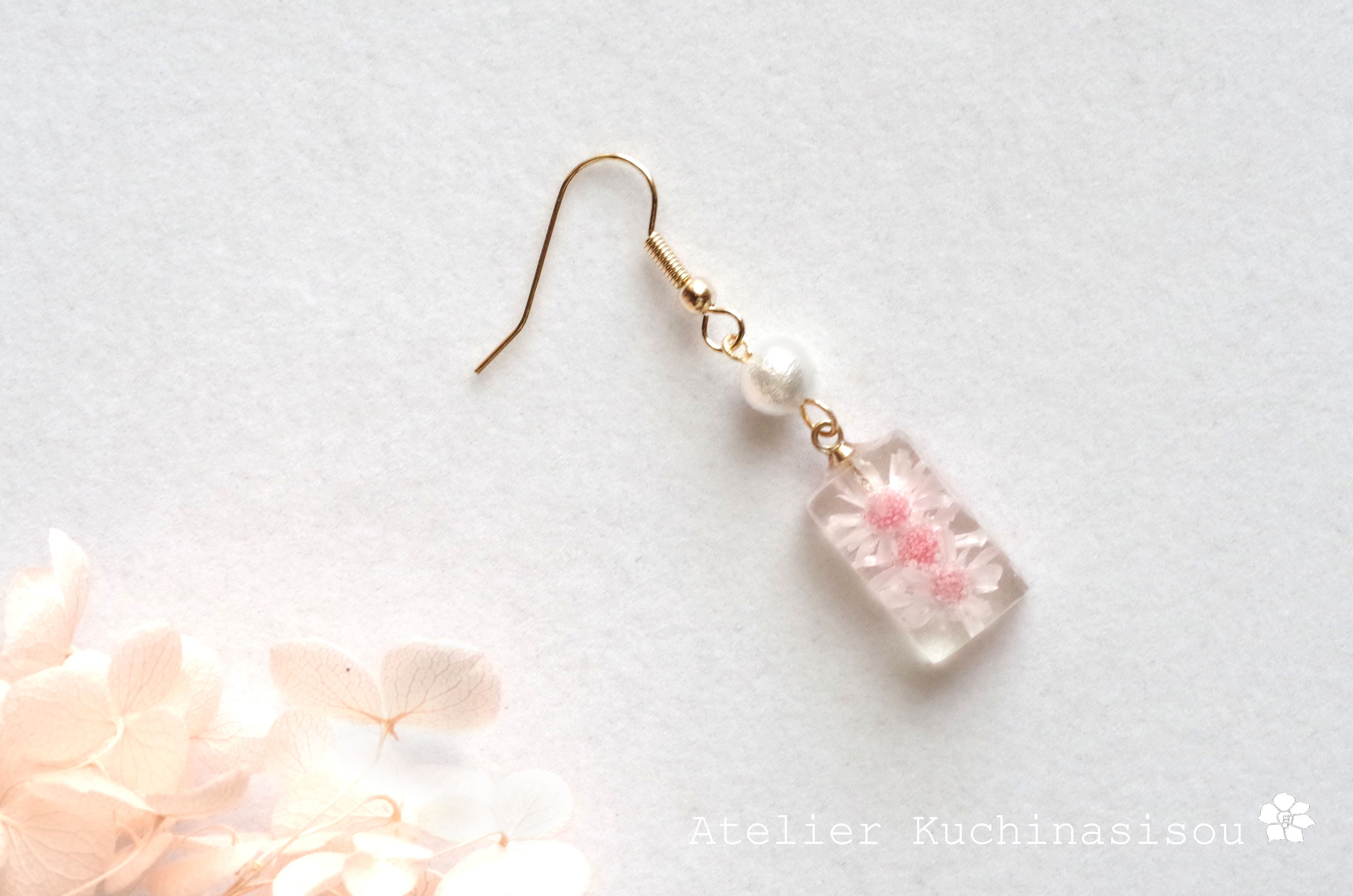 レジンでお花を封じ込めたシンプルなピアスを作りました♪