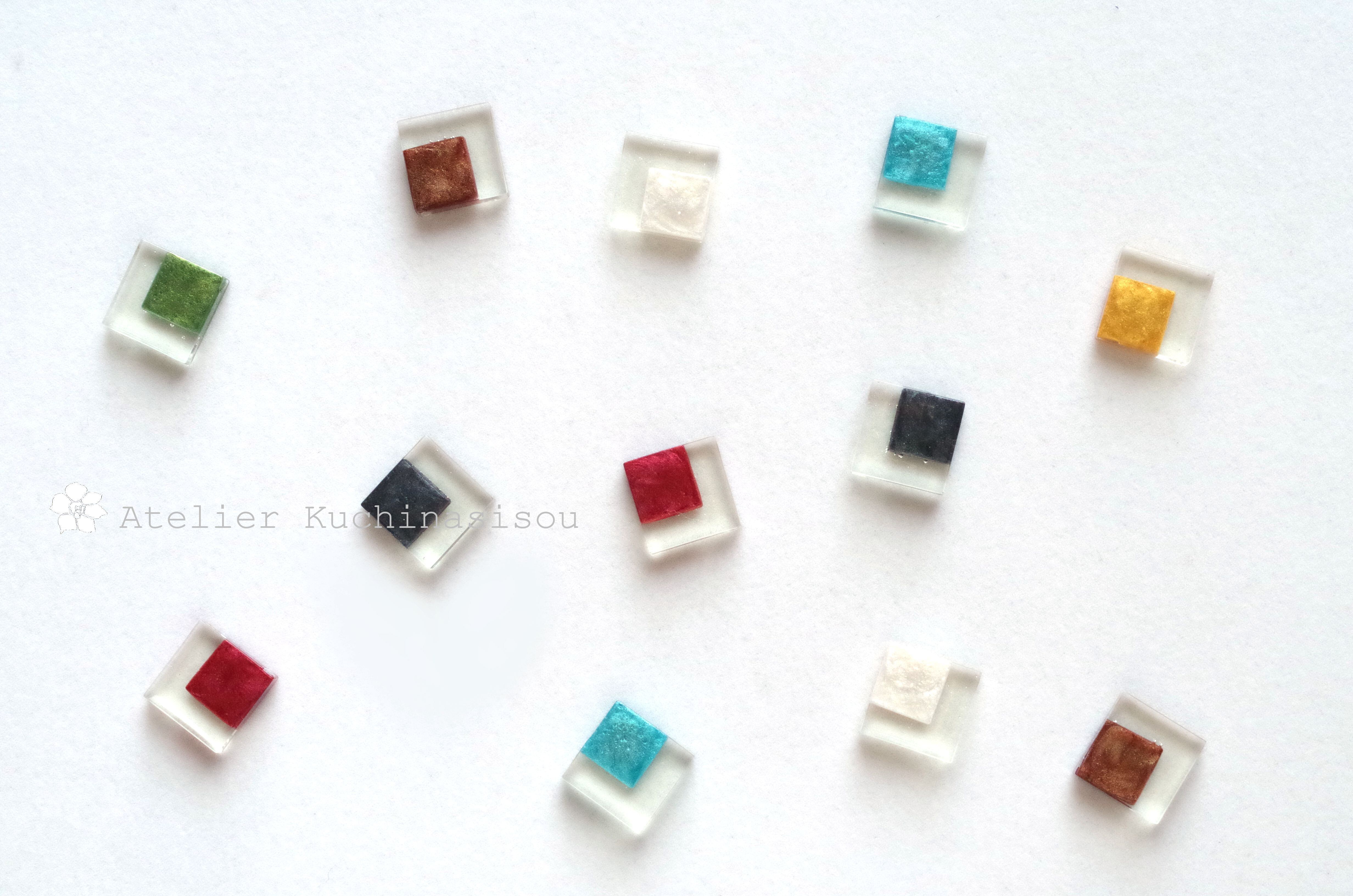 レジンでスクエアモチーフが二つ重なったシンプルなピアスを作りました♪