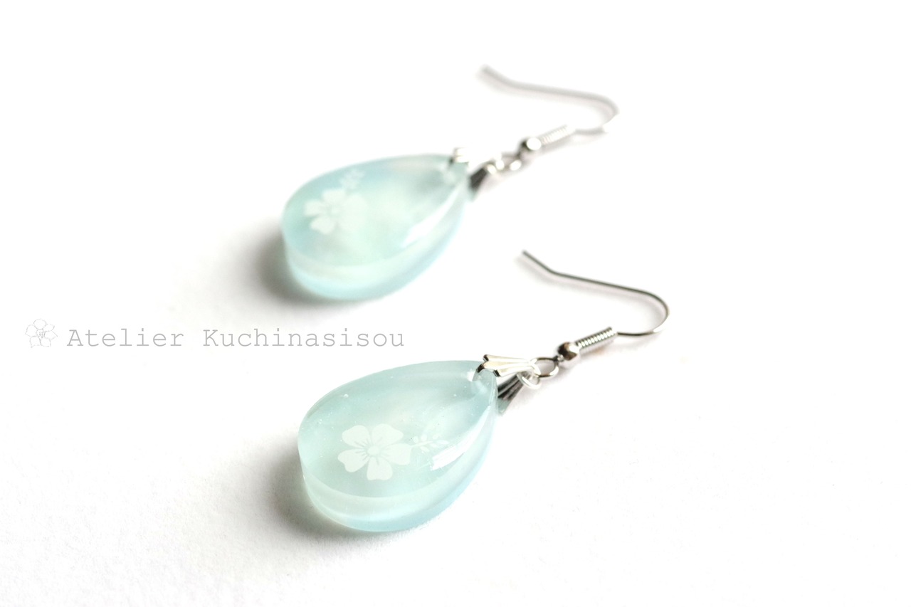 優しく爽やかなブルーのマーブル模様にうっとり魅入ってしまうピアス。