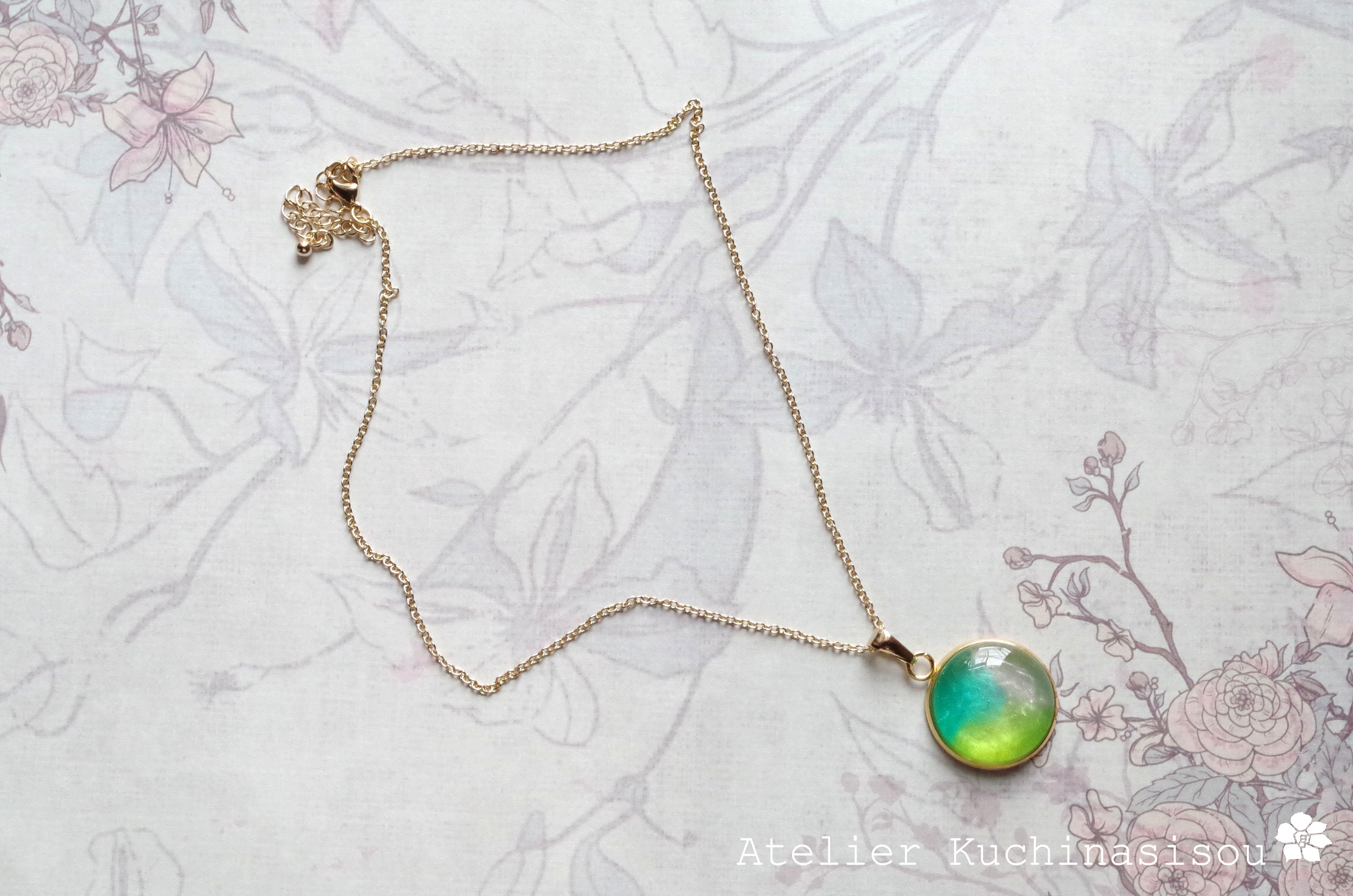 木々のささやきが聞こえてきそうな鮮やかな緑色が初夏、夏にぴったりのペンダント。