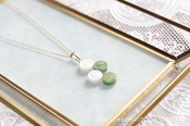 光沢のある真珠色が胸元を明るく照らすペンダントです。