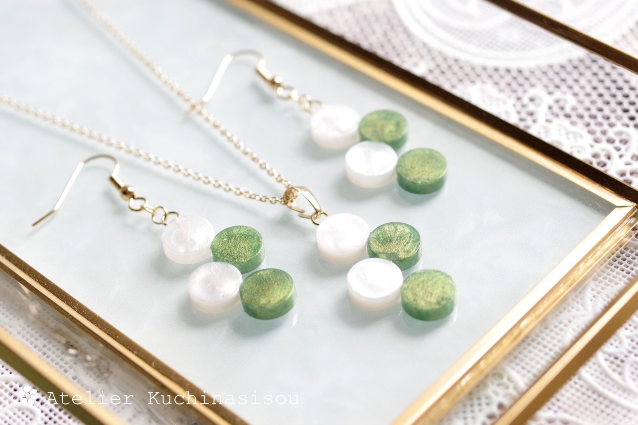 レジンで丸いモチーフを連ねたシンプルなペンダントを作りました♪