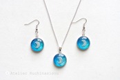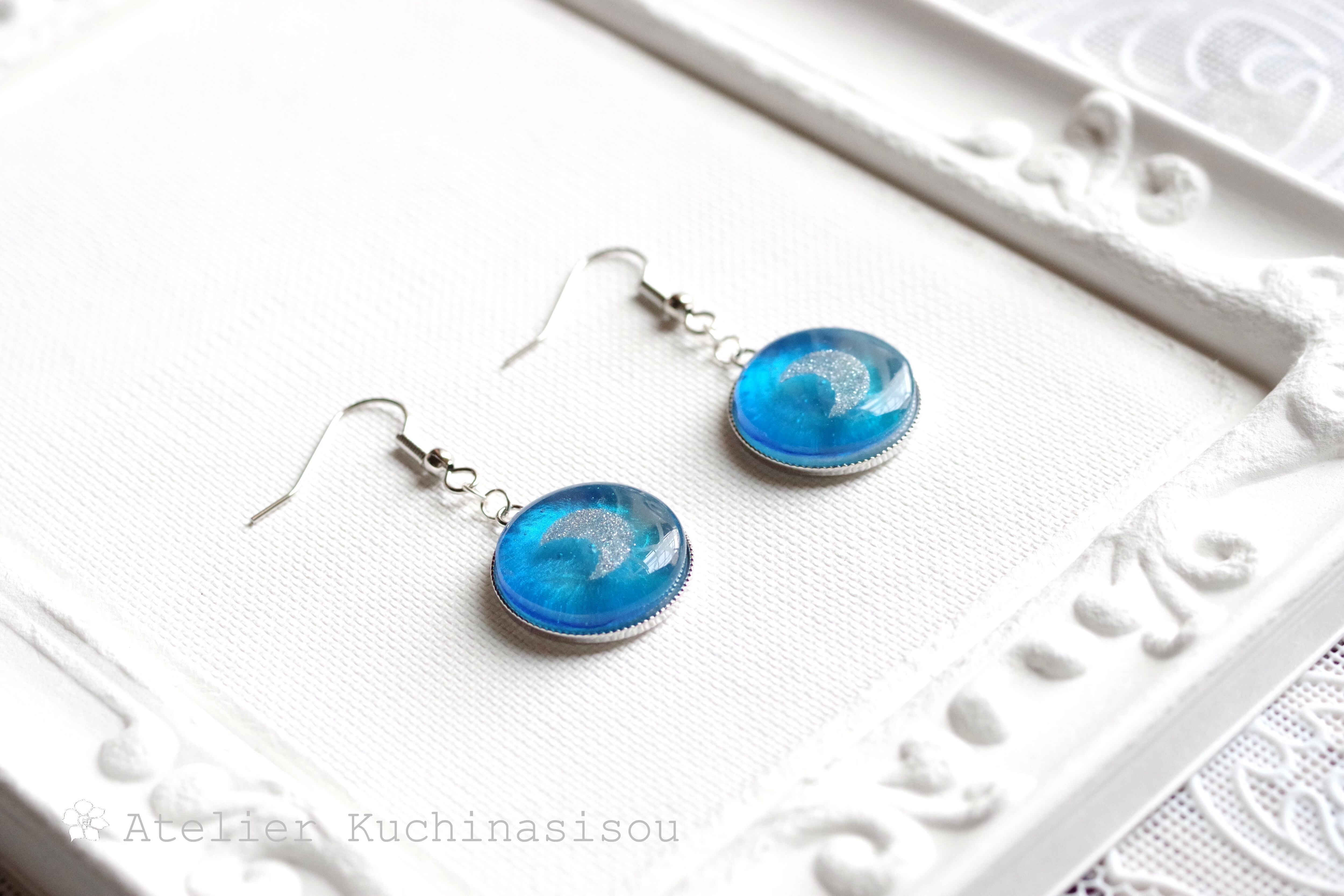 さわやかで明るいブルーと銀色の三日月に魅入ってしまうピアスです。