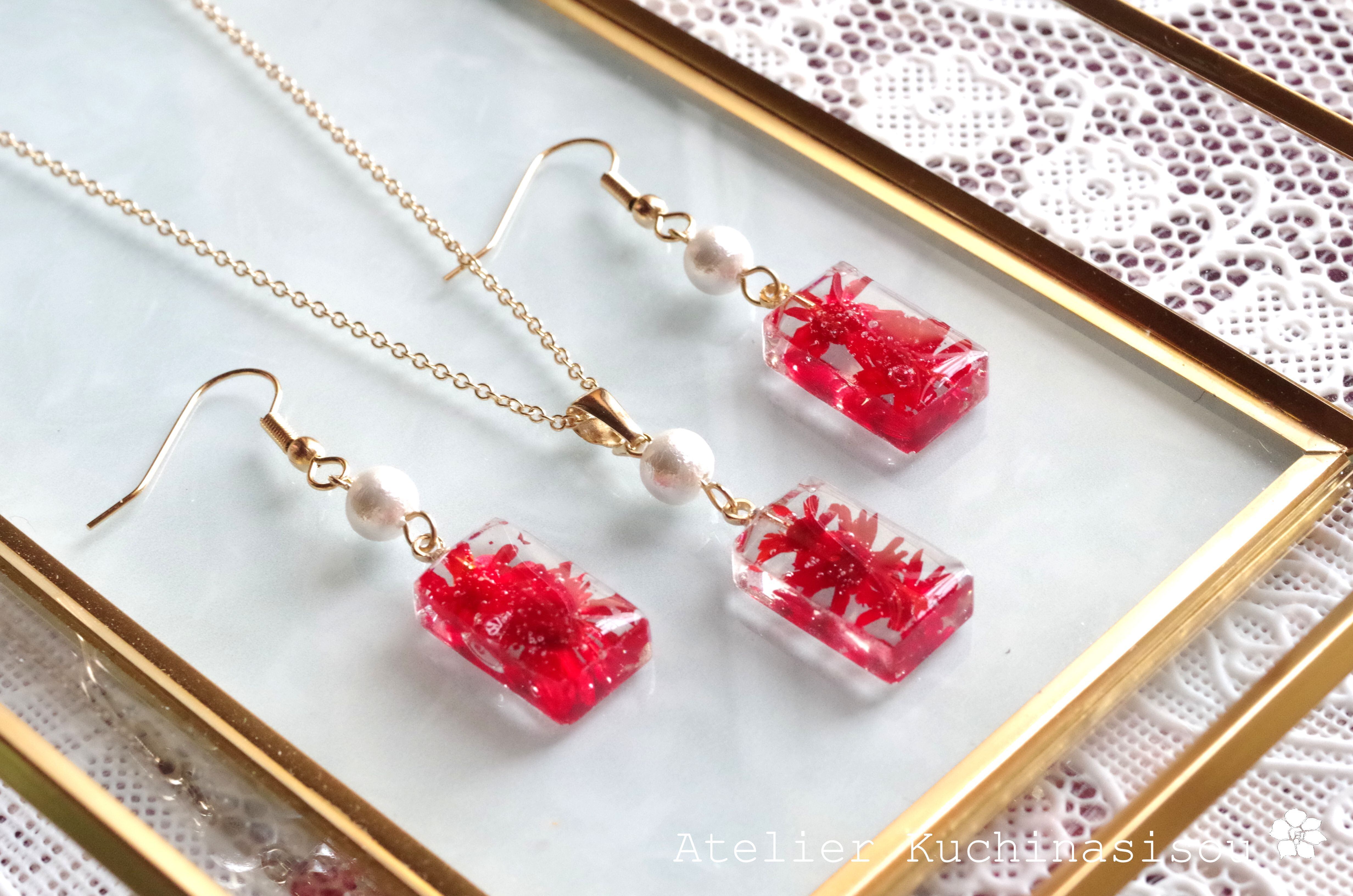 レジンでお花を封じ込めたシンプルなピアスを作りました♪