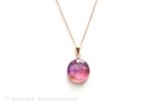 赤味を帯びたピンクと紫の組み合わせがシックで大人っぽいペンダント。