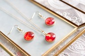 燃え上がるような赤とオレンジの滲みがうねる火炎を思わせるピアス。