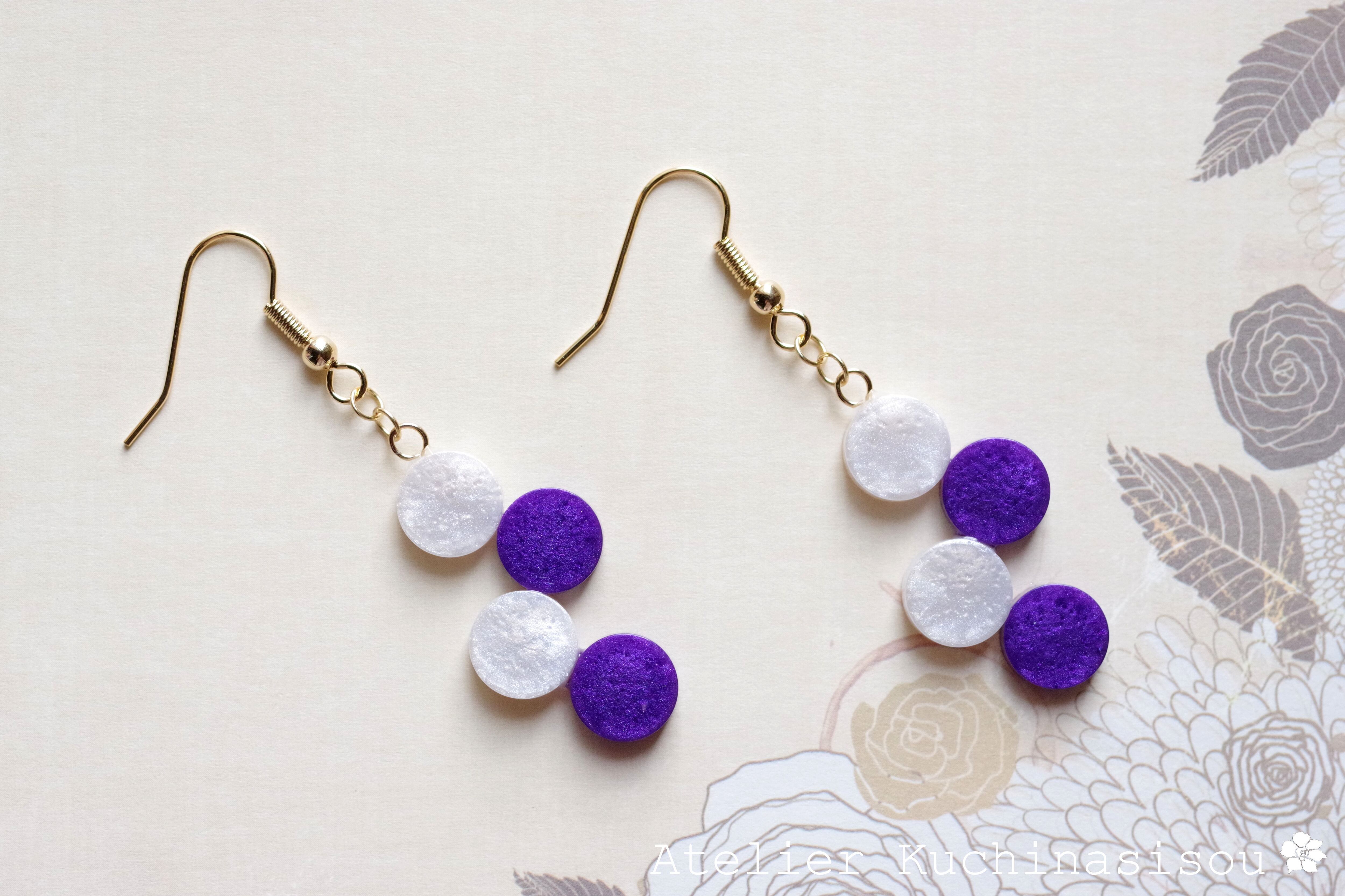 レジンで丸いモチーフを連ねたシンプルなピアスを作りました♪