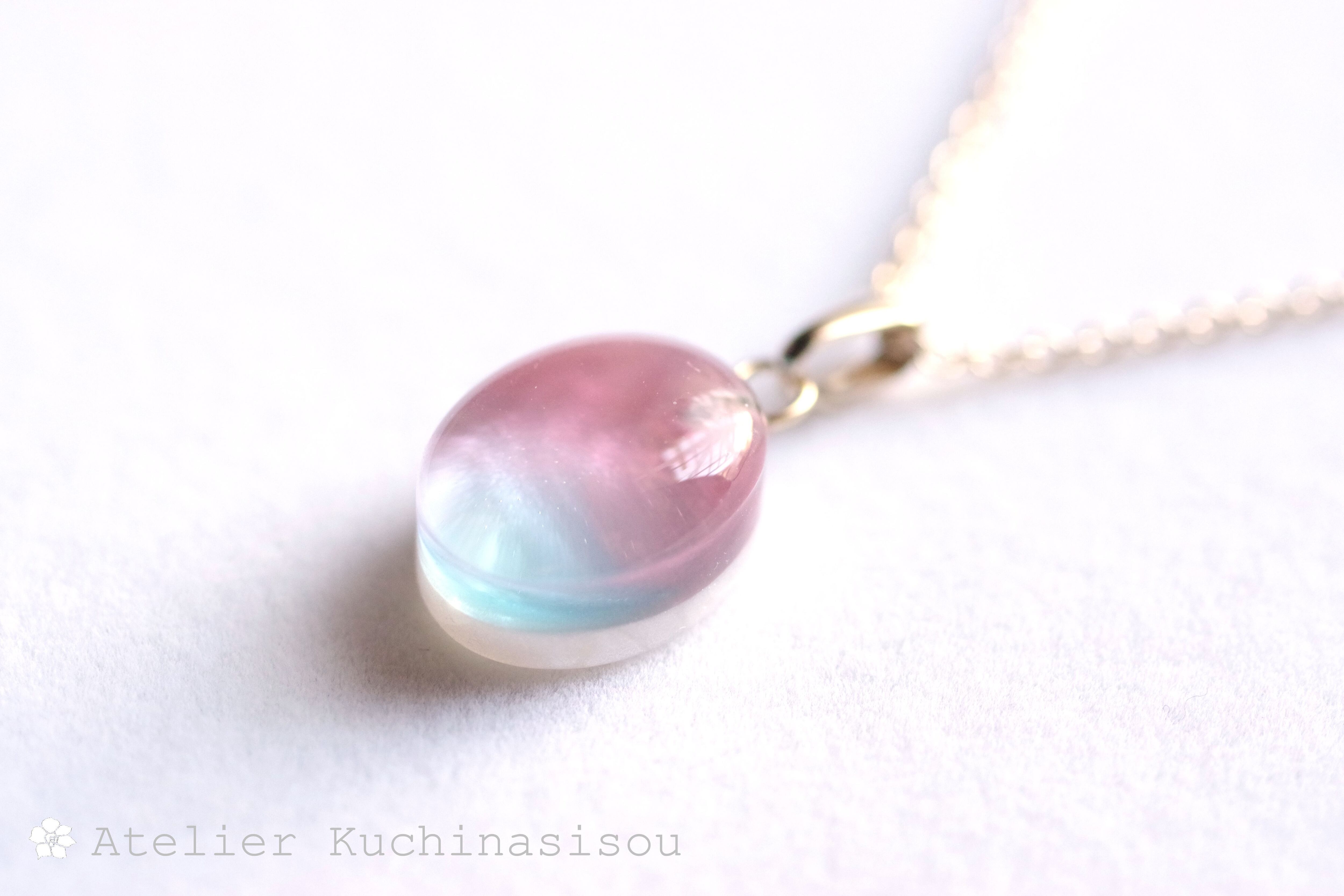 ふっと消えてしまいそうなかすかな色の揺らぎを感じてもらいたいペンダントです。