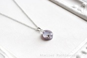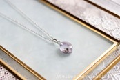 淑やかなモーブグレーのマーキス型のレジンにスワロフスキーを一粒とパール、ブリオンをあしらい、愛らしくも上品なペンダントに仕上げました。