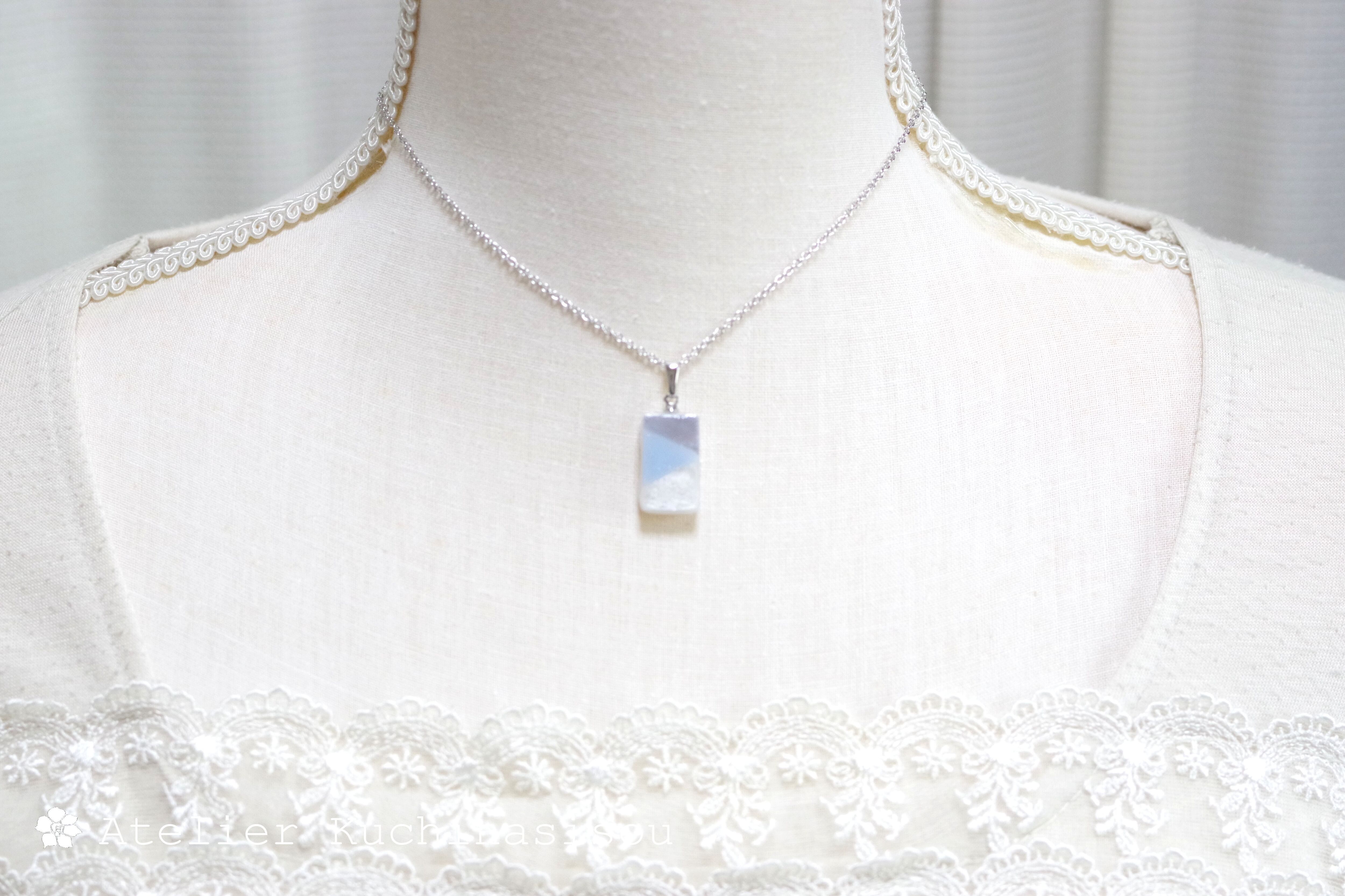紫と青、ホワイトの組み合わせがなんとも爽やかでフェミニンなペンダント。
