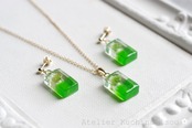 緑色の海から緑色の花が咲いているような、シンプルながらも可憐さのあるペンダント。